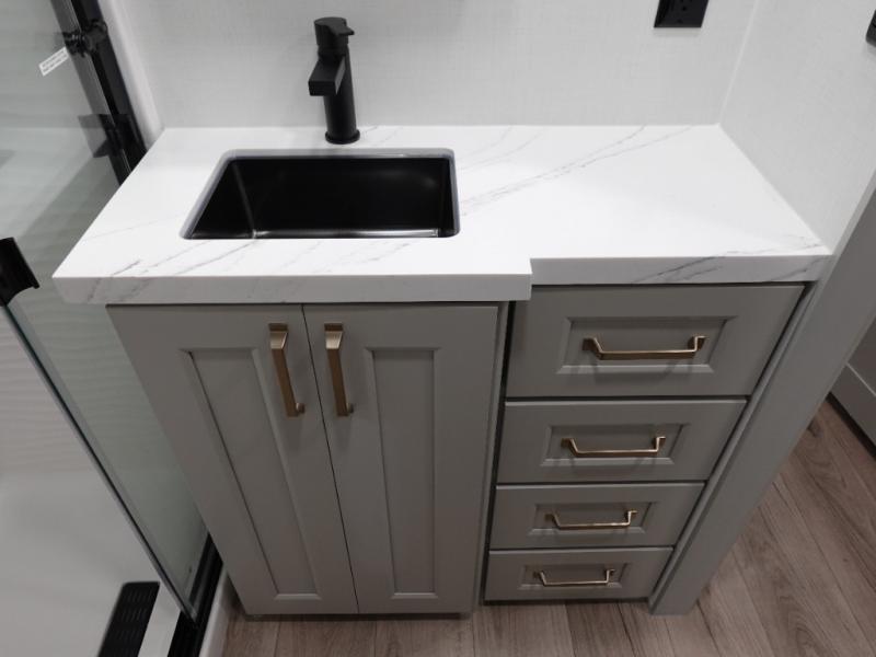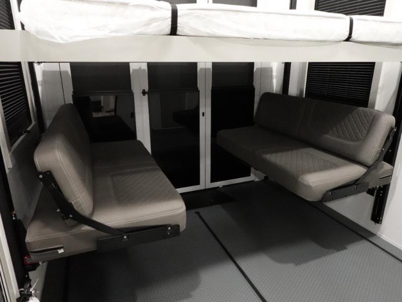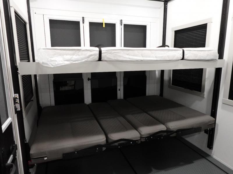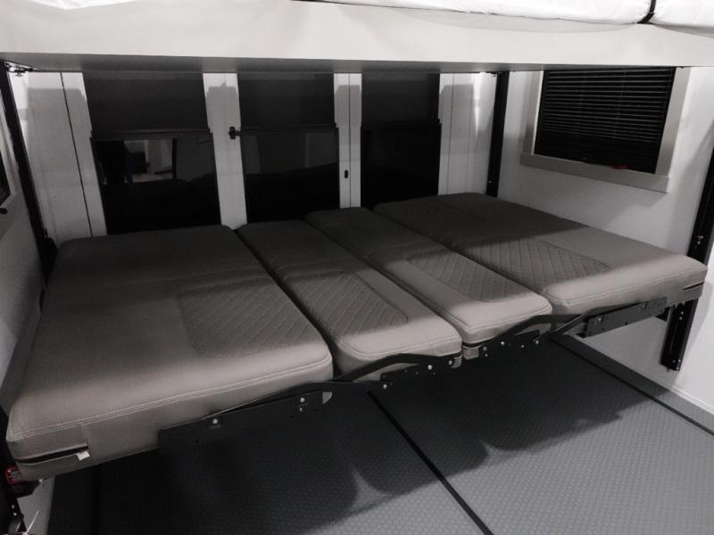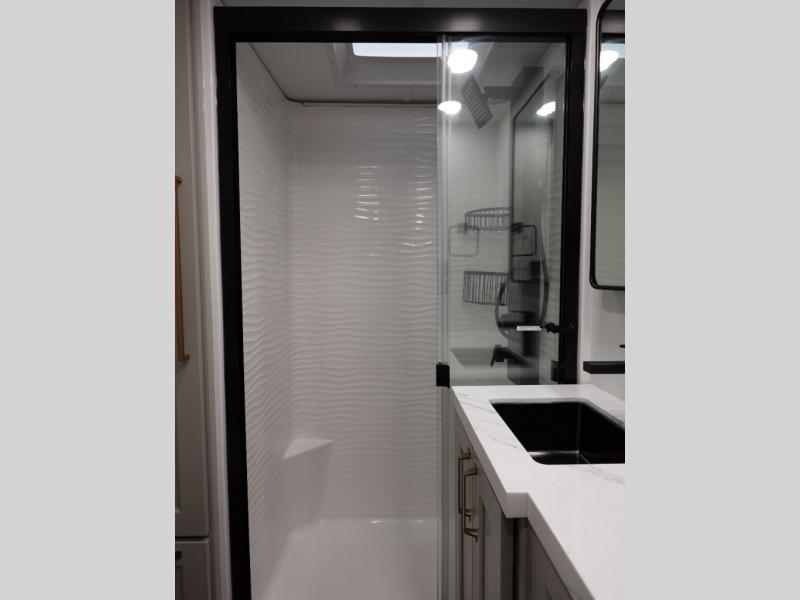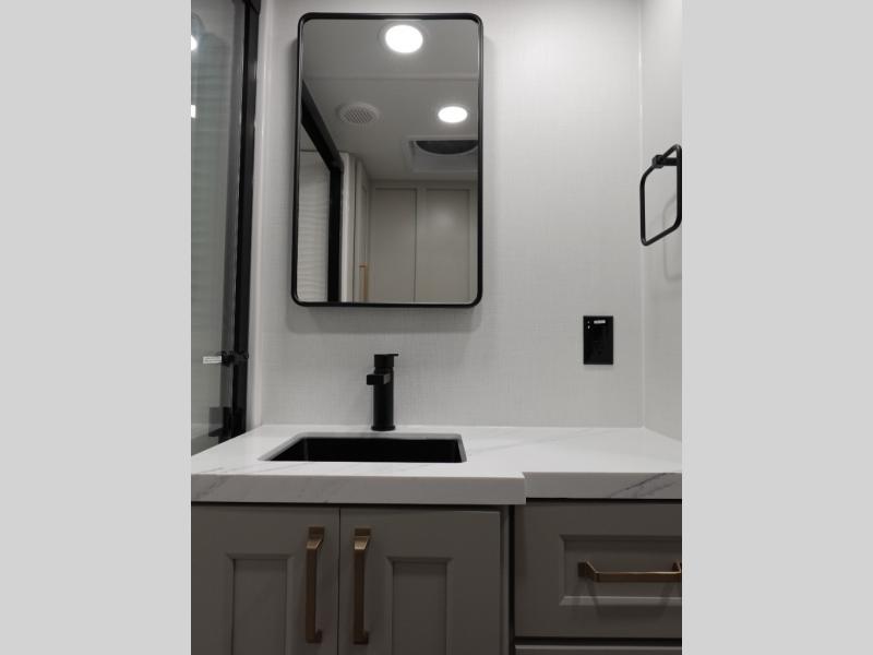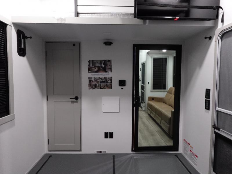 With any Model G toy hauler fifth wheel by Brinkley you will enjoy luxurious amenities, tons of storage space, and innovative features that have been developed and tested in the real world. Durable construction includes an industry leading PDI process, an industry best insulation package, and reinforced and walkable slide roofs. Some of the exterior features you'll find are a 3-way pass-through with a multi-functional flip-up bulkhead wall, under I-beam storage, a MAX-Vision reverse lighting system, and a low-maintenance roof to name a few. A Rockford Fosgate audio system comes standard, along with a OneControl app system that lets you control your fifth wheel's functions right from your mobile device. You will find the solar system with a designated storage area to be ultra convenient, plus there is a FlexPower 5500 with a dual fuel inverter generator for all your power needs. Head inside to find a residential interior with Brinkley's CraftSense wood trim construction, floating entrance steps, integrated window screens and insulated blackout blinds, and residential solid surface countertops plus backsplash. You will also enjoy the neon shower lighting and recessed medicine cabinets in the bath, plus motion activated LED bed lights and dual bedside outlets in the bedroom. Choose a Model G toy hauler fifth wheel to experience all the luxury it has to offer!