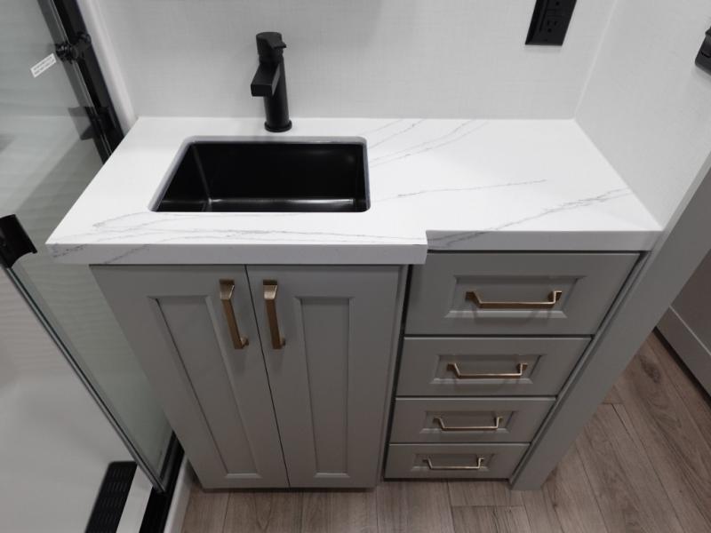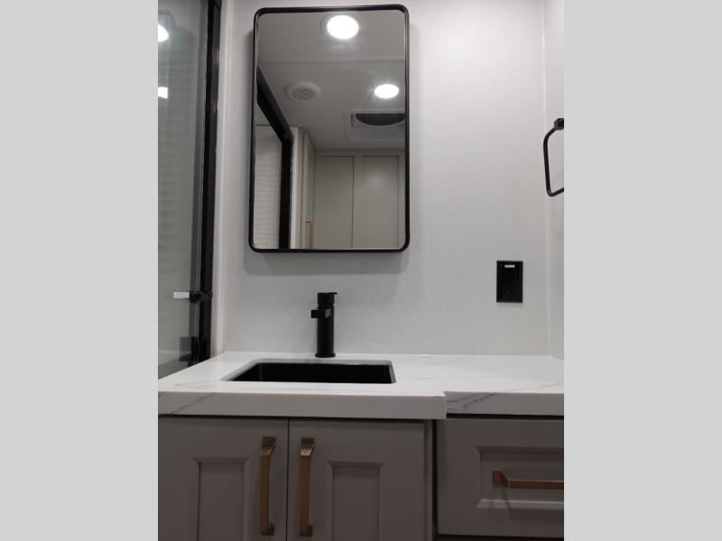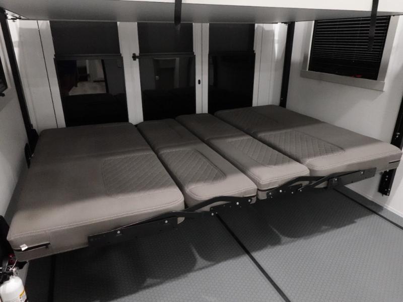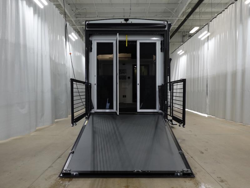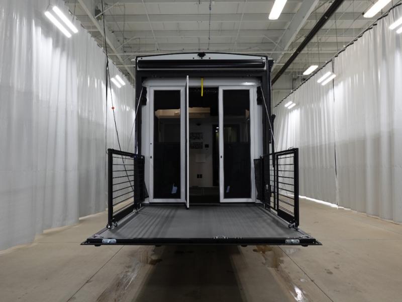 With any Model G toy hauler fifth wheel by Brinkley you will enjoy luxurious amenities, tons of storage space, and innovative features that have been developed and tested in the real world. Durable construction includes an industry leading PDI process, an industry best insulation package, and reinforced and walkable slide roofs. Some of the exterior features you'll find are a 3-way pass-through with a multi-functional flip-up bulkhead wall, under I-beam storage, a MAX-Vision reverse lighting system, and a low-maintenance roof to name a few. A Rockford Fosgate audio system comes standard, along with a OneControl app system that lets you control your fifth wheel's functions right from your mobile device. You will find the solar system with a designated storage area to be ultra convenient, plus there is a FlexPower 5500 with a dual fuel inverter generator for all your power needs. Head inside to find a residential interior with Brinkley's CraftSense wood trim construction, floating entrance steps, integrated window screens and insulated blackout blinds, and residential solid surface countertops plus backsplash. You will also enjoy the neon shower lighting and recessed medicine cabinets in the bath, plus motion activated LED bed lights and dual bedside outlets in the bedroom. Choose a Model G toy hauler fifth wheel to experience all the luxury it has to offer!