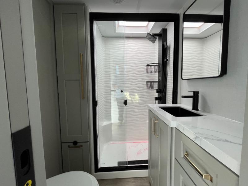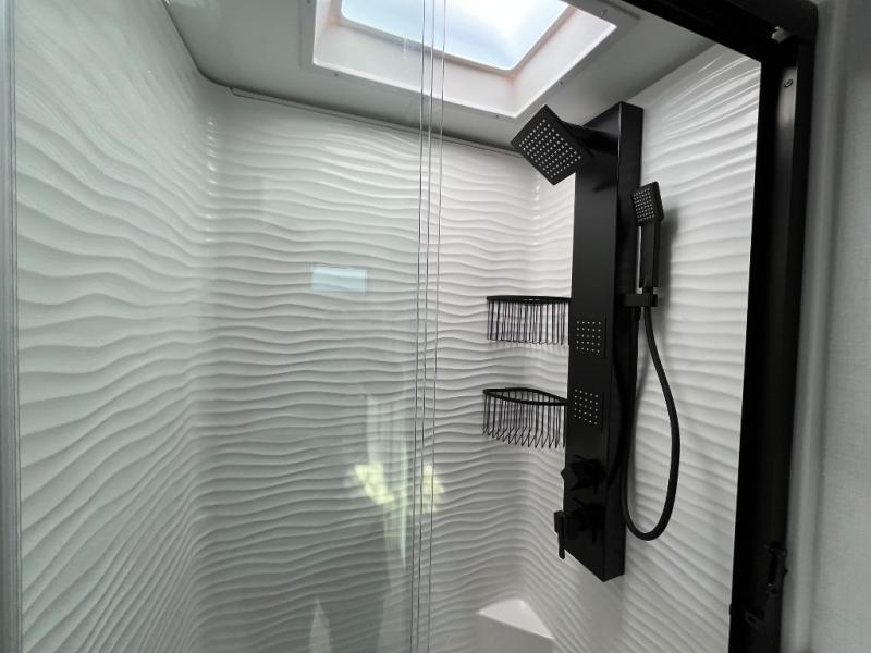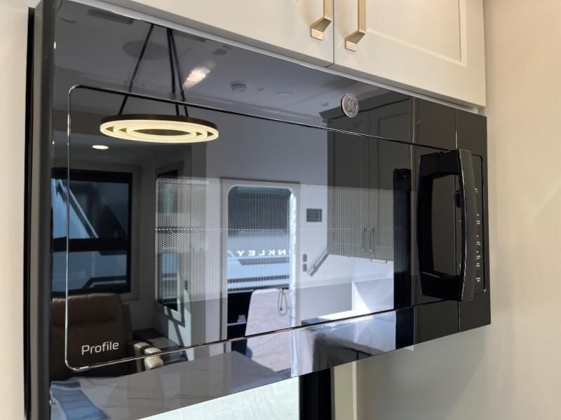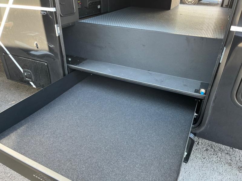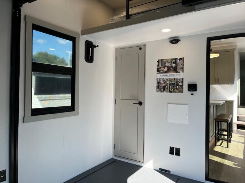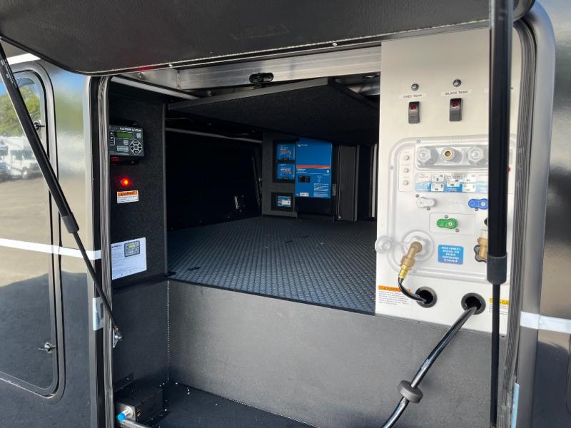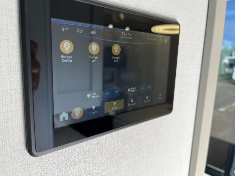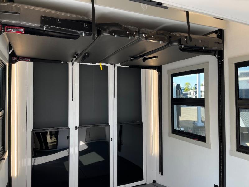 With any Model G toy hauler fifth wheel by Brinkley you will enjoy luxurious amenities, tons of storage space, and innovative features that have been developed and tested in the real world. Durable construction includes an industry leading PDI process, an industry best insulation package, and reinforced and walkable slide roofs. Some of the exterior features you'll find are a 3-way pass-through with a multi-functional flip-up bulkhead wall, under I-beam storage, a MAX-Vision reverse lighting system, and a low-maintenance roof to name a few. A Rockford Fosgate audio system comes standard, along with a OneControl app system that lets you control your fifth wheel's functions right from your mobile device. You will find the solar system with a designated storage area to be ultra convenient, plus there is a FlexPower 5500 with a dual fuel inverter generator for all your power needs. Head inside to find a residential interior with Brinkley's CraftSense wood trim construction, floating entrance steps, integrated window screens and insulated blackout blinds, and residential solid surface countertops plus backsplash. You will also enjoy the neon shower lighting and recessed medicine cabinets in the bath, plus motion activated LED bed lights and dual bedside outlets in the bedroom. Choose a Model G toy hauler fifth wheel to experience all the luxury it has to offer!