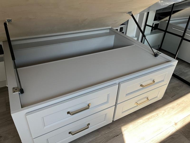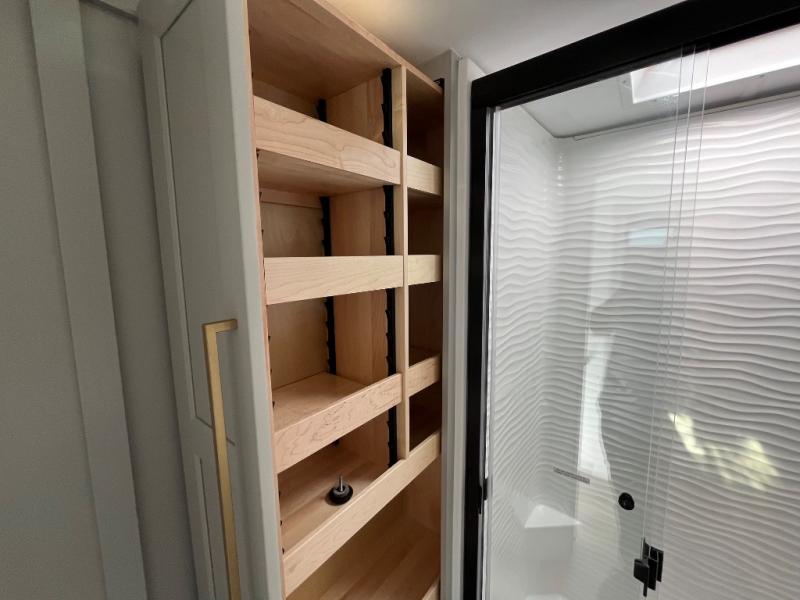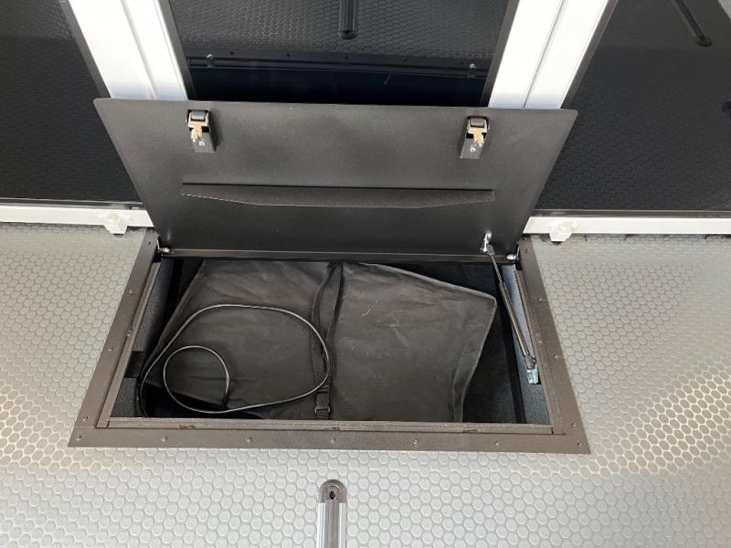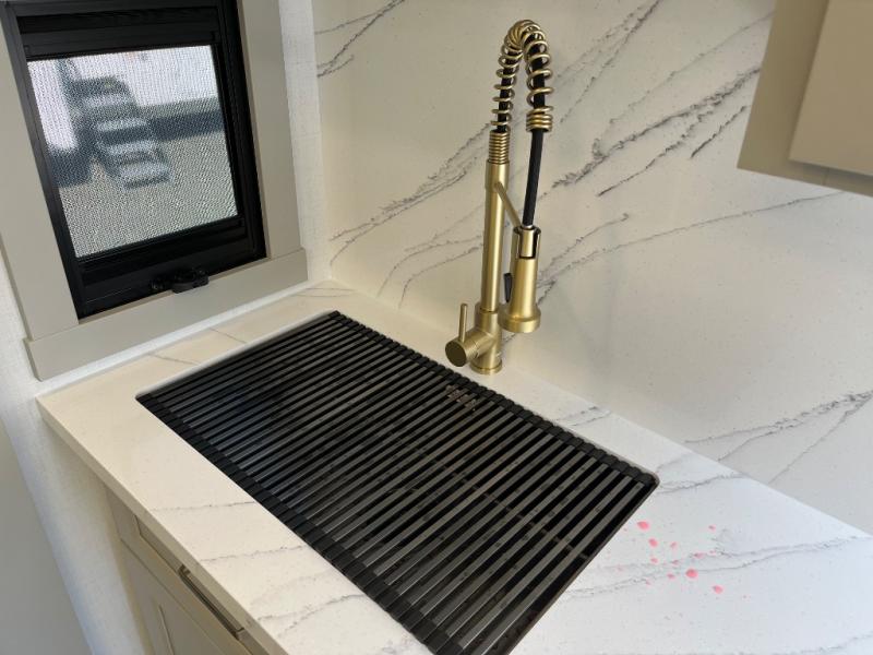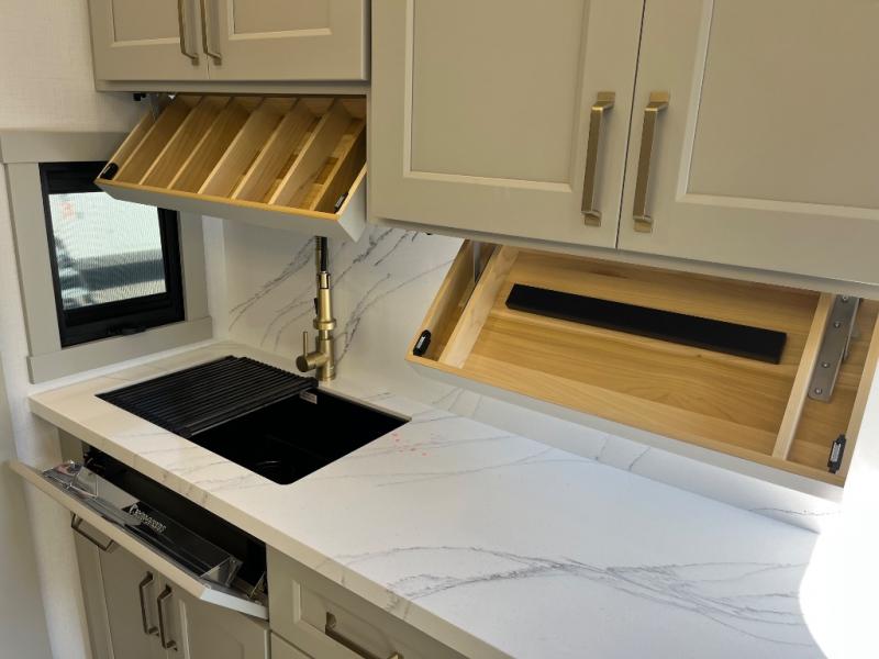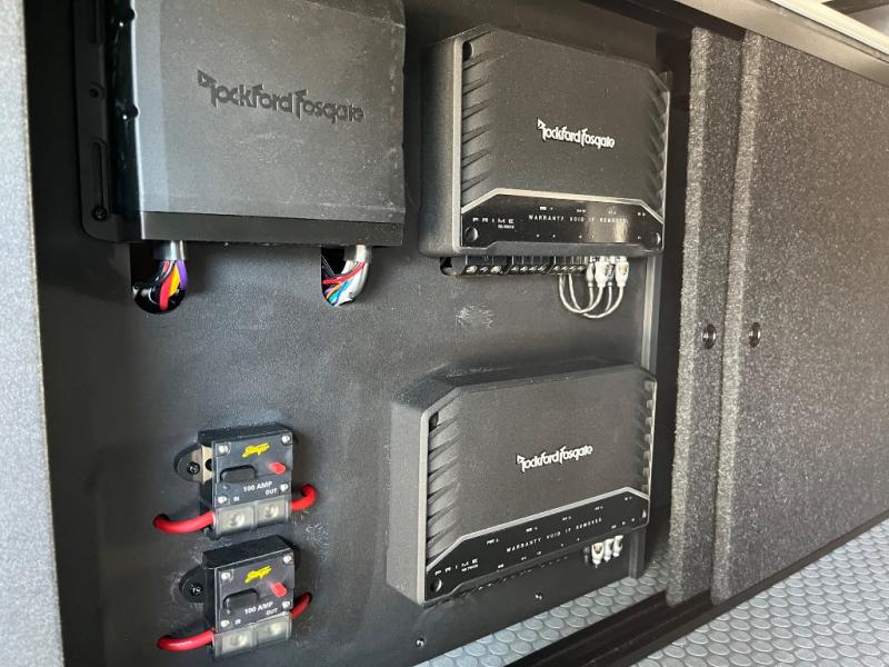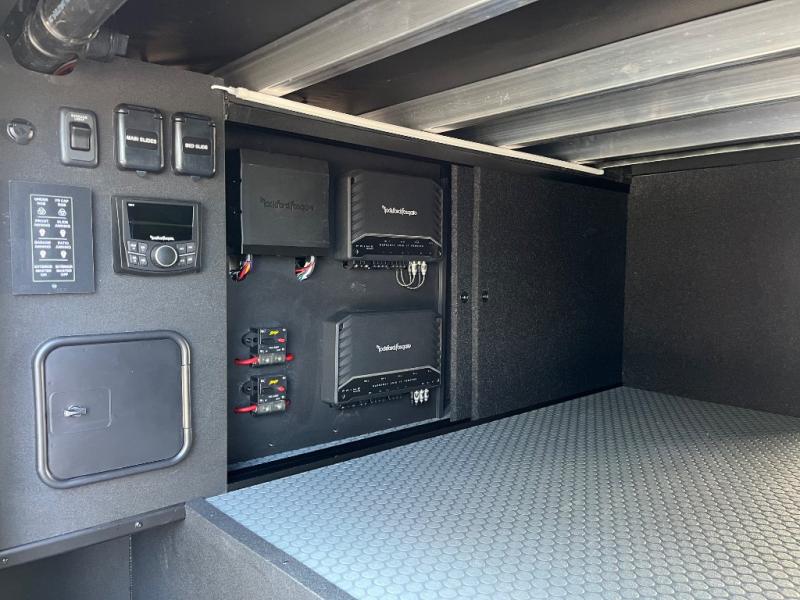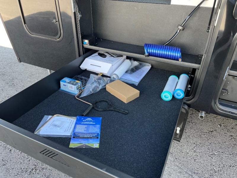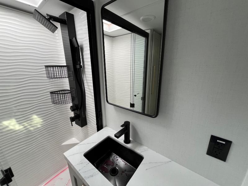 With any Model G toy hauler fifth wheel by Brinkley you will enjoy luxurious amenities, tons of storage space, and innovative features that have been developed and tested in the real world. Durable construction includes an industry leading PDI process, an industry best insulation package, and reinforced and walkable slide roofs. Some of the exterior features you'll find are a 3-way pass-through with a multi-functional flip-up bulkhead wall, under I-beam storage, a MAX-Vision reverse lighting system, and a low-maintenance roof to name a few. A Rockford Fosgate audio system comes standard, along with a OneControl app system that lets you control your fifth wheel's functions right from your mobile device. You will find the solar system with a designated storage area to be ultra convenient, plus there is a FlexPower 5500 with a dual fuel inverter generator for all your power needs. Head inside to find a residential interior with Brinkley's CraftSense wood trim construction, floating entrance steps, integrated window screens and insulated blackout blinds, and residential solid surface countertops plus backsplash. You will also enjoy the neon shower lighting and recessed medicine cabinets in the bath, plus motion activated LED bed lights and dual bedside outlets in the bedroom. Choose a Model G toy hauler fifth wheel to experience all the luxury it has to offer!