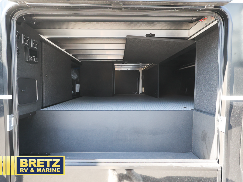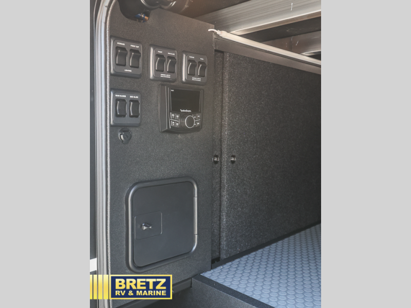 With any Model G toy hauler fifth wheel by Brinkley you will enjoy luxurious amenities, tons of storage space, and innovative features that have been developed and tested in the real world. Durable construction includes an industry leading PDI process, an industry best insulation package, and reinforced and walkable slide roofs. Some of the exterior features you'll find are a 3-way pass-through with a multi-functional flip-up bulkhead wall, under I-beam storage, a MAX-Vision reverse lighting system, and a low-maintenance roof to name a few. A Rockford Fosgate audio system comes standard, along with a OneControl app system that lets you control your fifth wheel's functions right from your mobile device. You will find the solar system with a designated storage area to be ultra convenient, plus there is a FlexPower 5500 with a dual fuel inverter generator for all your power needs. Head inside to find a residential interior with Brinkley's CraftSense wood trim construction, floating entrance steps, integrated window screens and insulated blackout blinds, and residential solid surface countertops plus backsplash. You will also enjoy the neon shower lighting and recessed medicine cabinets in the bath, plus motion activated LED bed lights and dual bedside outlets in the bedroom. Choose a Model G toy hauler fifth wheel to experience all the luxury it has to offer!