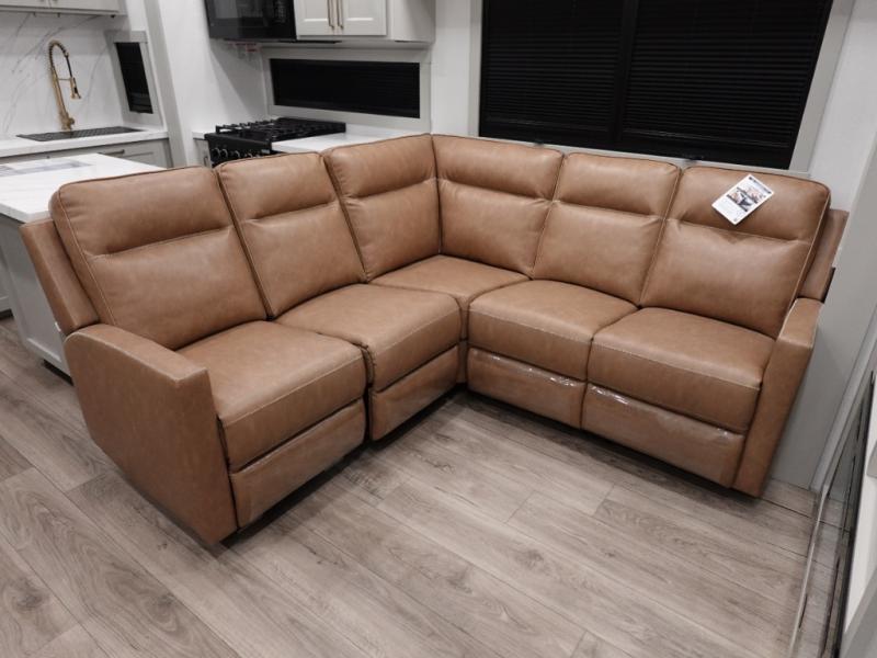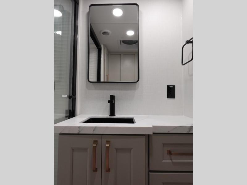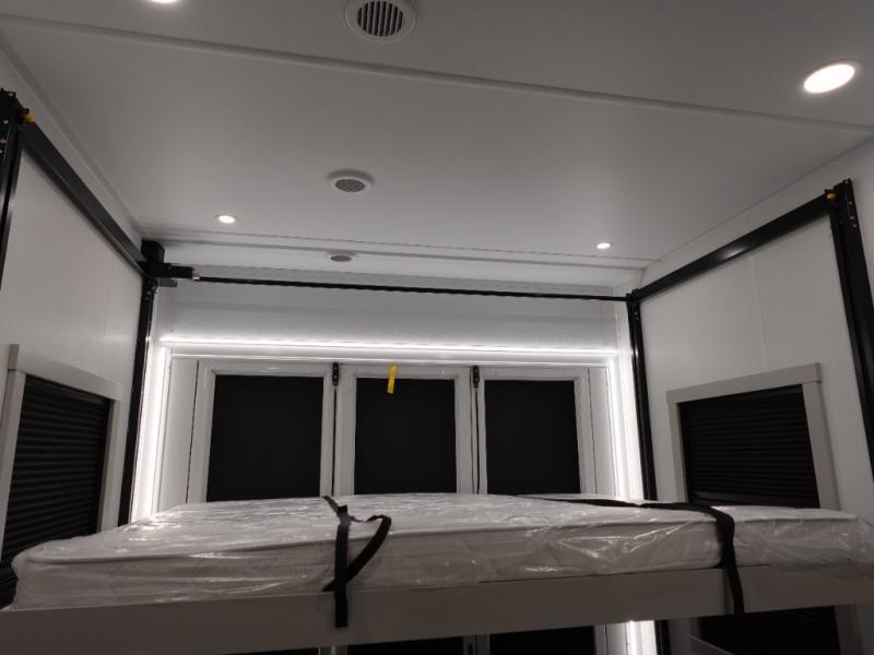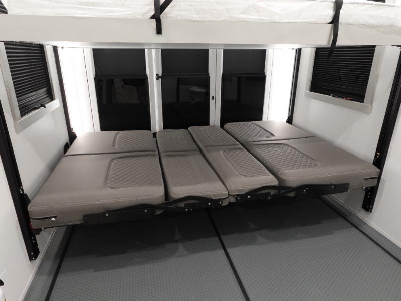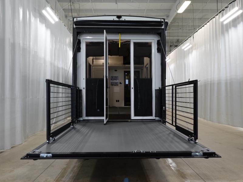 With any Model G toy hauler fifth wheel by Brinkley you will enjoy luxurious amenities, tons of storage space, and innovative features that have been developed and tested in the real world. Durable construction includes an industry leading PDI process, an industry best insulation package, and reinforced and walkable slide roofs. Some of the exterior features you'll find are a 3-way pass-through with a multi-functional flip-up bulkhead wall, under I-beam storage, a MAX-Vision reverse lighting system, and a low-maintenance roof to name a few. A Rockford Fosgate audio system comes standard, along with a OneControl app system that lets you control your fifth wheel's functions right from your mobile device. You will find the solar system with a designated storage area to be ultra convenient, plus there is a FlexPower 5500 with a dual fuel inverter generator for all your power needs. Head inside to find a residential interior with Brinkley's CraftSense wood trim construction, floating entrance steps, integrated window screens and insulated blackout blinds, and residential solid surface countertops plus backsplash. You will also enjoy the neon shower lighting and recessed medicine cabinets in the bath, plus motion activated LED bed lights and dual bedside outlets in the bedroom. Choose a Model G toy hauler fifth wheel to experience all the luxury it has to offer!