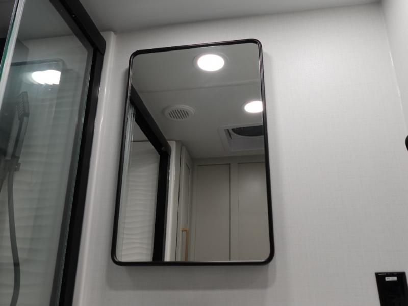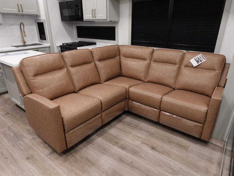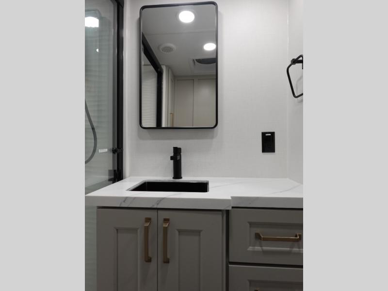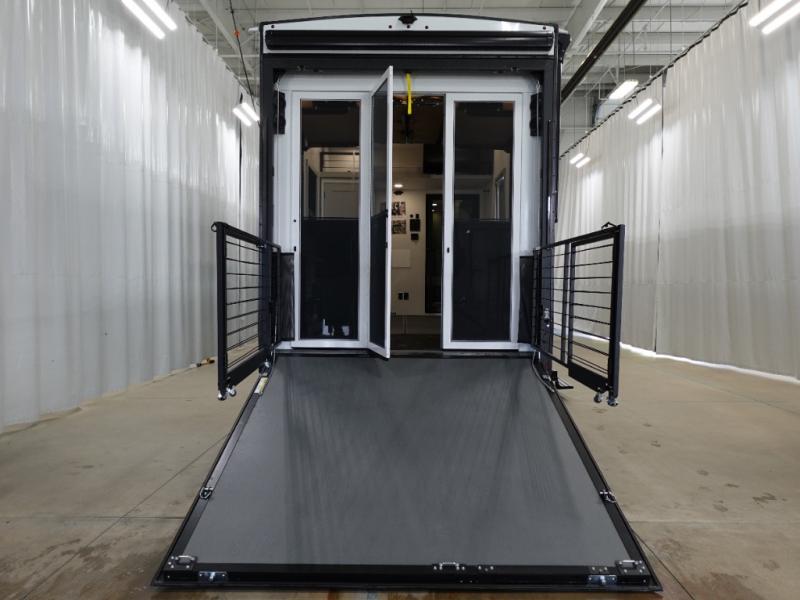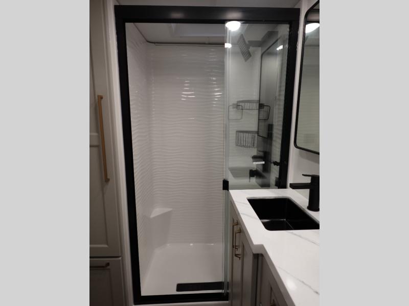 With any Model G toy hauler fifth wheel by Brinkley you will enjoy luxurious amenities, tons of storage space, and innovative features that have been developed and tested in the real world. Durable construction includes an industry leading PDI process, an industry best insulation package, and reinforced and walkable slide roofs. Some of the exterior features you'll find are a 3-way pass-through with a multi-functional flip-up bulkhead wall, under I-beam storage, a MAX-Vision reverse lighting system, and a low-maintenance roof to name a few. A Rockford Fosgate audio system comes standard, along with a OneControl app system that lets you control your fifth wheel's functions right from your mobile device. You will find the solar system with a designated storage area to be ultra convenient, plus there is a FlexPower 5500 with a dual fuel inverter generator for all your power needs. Head inside to find a residential interior with Brinkley's CraftSense wood trim construction, floating entrance steps, integrated window screens and insulated blackout blinds, and residential solid surface countertops plus backsplash. You will also enjoy the neon shower lighting and recessed medicine cabinets in the bath, plus motion activated LED bed lights and dual bedside outlets in the bedroom. Choose a Model G toy hauler fifth wheel to experience all the luxury it has to offer!