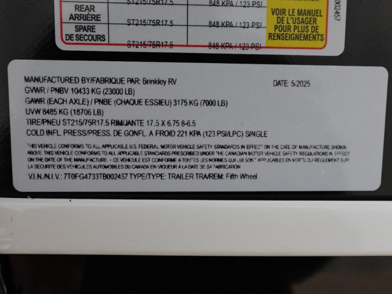 New 2026 Brinkley Model G 3950 Toy Hauler Fifth Wheel