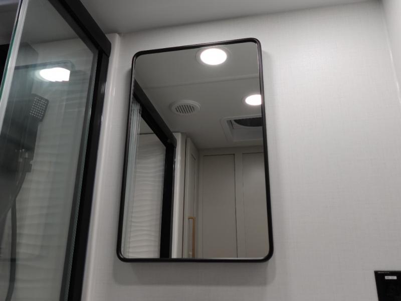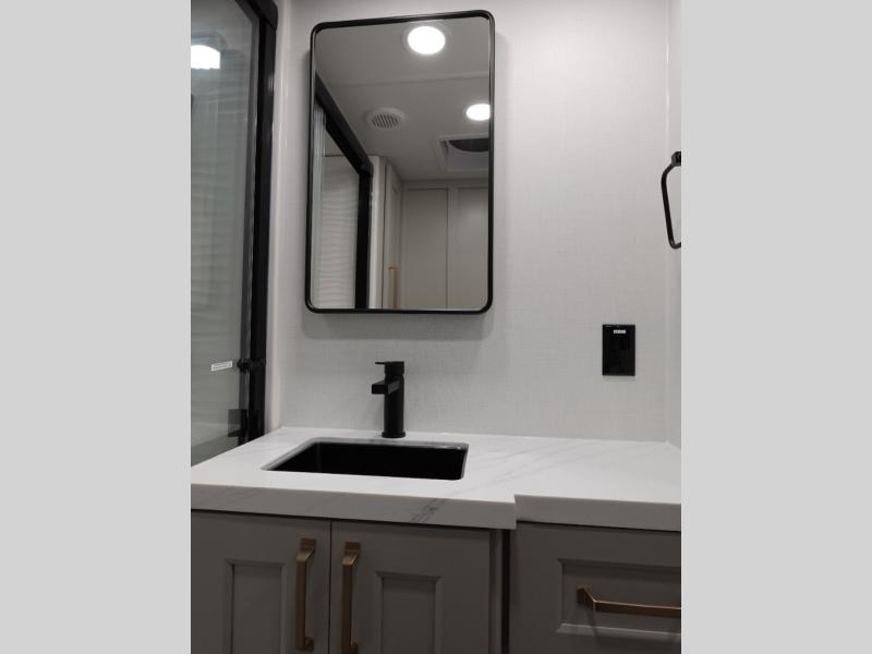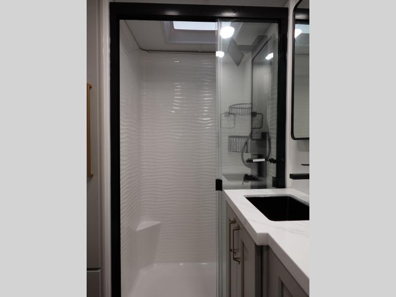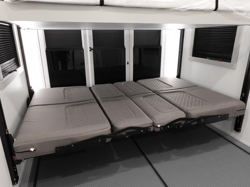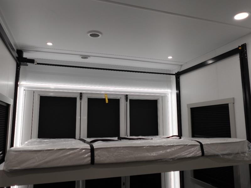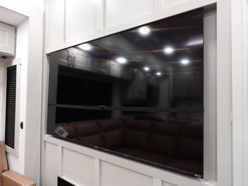 With any Model G toy hauler fifth wheel by Brinkley you will enjoy luxurious amenities, tons of storage space, and innovative features that have been developed and tested in the real world. Durable construction includes an industry leading PDI process, an industry best insulation package, and reinforced and walkable slide roofs. Some of the exterior features you'll find are a 3-way pass-through with a multi-functional flip-up bulkhead wall, under I-beam storage, a MAX-Vision reverse lighting system, and a low-maintenance roof to name a few. A Rockford Fosgate audio system comes standard, along with a OneControl app system that lets you control your fifth wheel's functions right from your mobile device. You will find the solar system with a designated storage area to be ultra convenient, plus there is a FlexPower 5500 with a dual fuel inverter generator for all your power needs. Head inside to find a residential interior with Brinkley's CraftSense wood trim construction, floating entrance steps, integrated window screens and insulated blackout blinds, and residential solid surface countertops plus backsplash. You will also enjoy the neon shower lighting and recessed medicine cabinets in the bath, plus motion activated LED bed lights and dual bedside outlets in the bedroom. Choose a Model G toy hauler fifth wheel to experience all the luxury it has to offer!