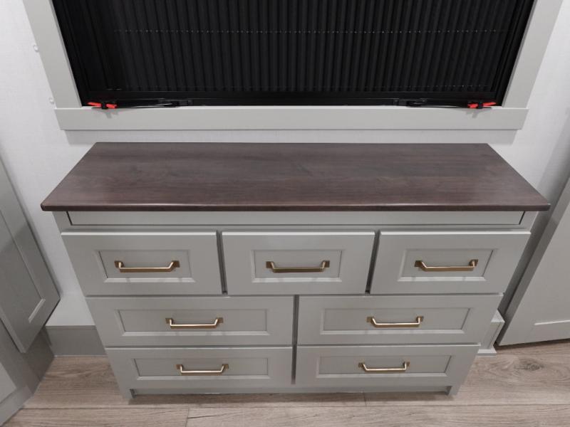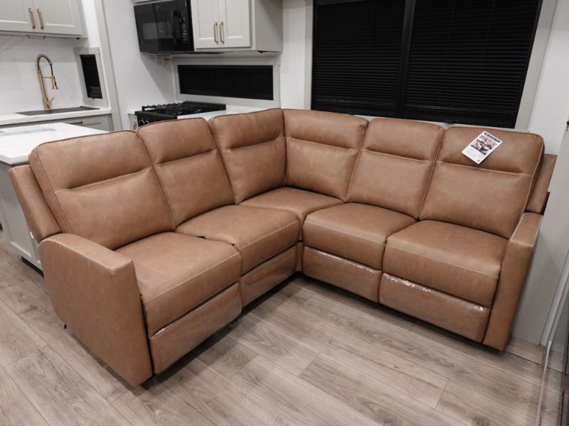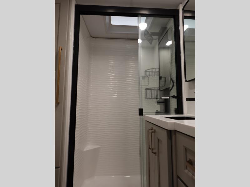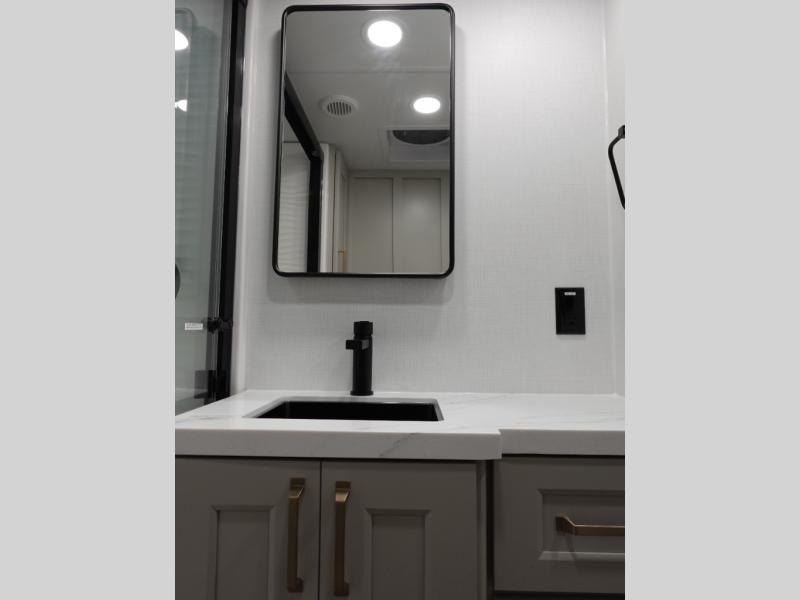 With any Model G toy hauler fifth wheel by Brinkley you will enjoy luxurious amenities, tons of storage space, and innovative features that have been developed and tested in the real world. Durable construction includes an industry leading PDI process, an industry best insulation package, and reinforced and walkable slide roofs. Some of the exterior features you'll find are a 3-way pass-through with a multi-functional flip-up bulkhead wall, under I-beam storage, a MAX-Vision reverse lighting system, and a low-maintenance roof to name a few. A Rockford Fosgate audio system comes standard, along with a OneControl app system that lets you control your fifth wheel's functions right from your mobile device. You will find the solar system with a designated storage area to be ultra convenient, plus there is a FlexPower 5500 with a dual fuel inverter generator for all your power needs. Head inside to find a residential interior with Brinkley's CraftSense wood trim construction, floating entrance steps, integrated window screens and insulated blackout blinds, and residential solid surface countertops plus backsplash. You will also enjoy the neon shower lighting and recessed medicine cabinets in the bath, plus motion activated LED bed lights and dual bedside outlets in the bedroom. Choose a Model G toy hauler fifth wheel to experience all the luxury it has to offer!