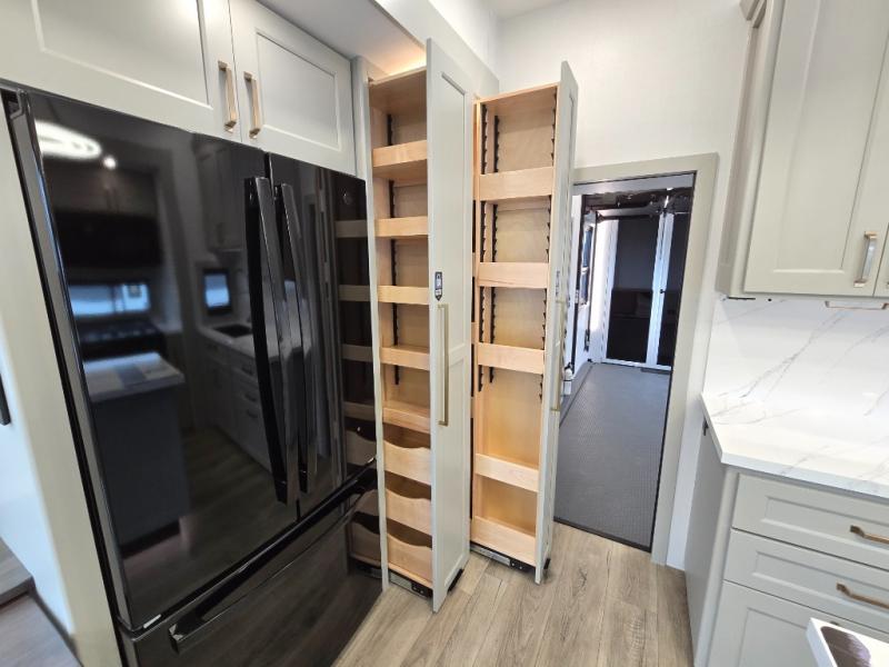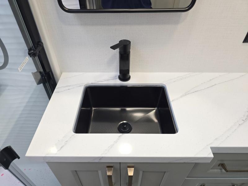 With any Model G toy hauler fifth wheel by Brinkley you will enjoy luxurious amenities, tons of storage space, and innovative features that have been developed and tested in the real world. Durable construction includes an industry leading PDI process, an industry best insulation package, and reinforced and walkable slide roofs. Some of the exterior features you'll find are a 3-way pass-through with a multi-functional flip-up bulkhead wall, under I-beam storage, a MAX-Vision reverse lighting system, and a low-maintenance roof to name a few. A Rockford Fosgate audio system comes standard, along with a OneControl app system that lets you control your fifth wheel's functions right from your mobile device. You will find the solar system with a designated storage area to be ultra convenient, plus there is a FlexPower 5500 with a dual fuel inverter generator for all your power needs. Head inside to find a residential interior with Brinkley's CraftSense wood trim construction, floating entrance steps, integrated window screens and insulated blackout blinds, and residential solid surface countertops plus backsplash. You will also enjoy the neon shower lighting and recessed medicine cabinets in the bath, plus motion activated LED bed lights and dual bedside outlets in the bedroom. Choose a Model G toy hauler fifth wheel to experience all the luxury it has to offer!