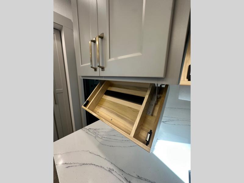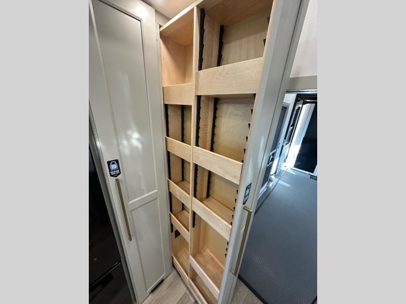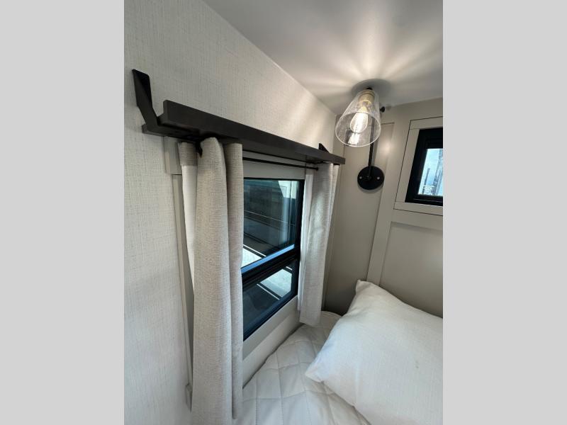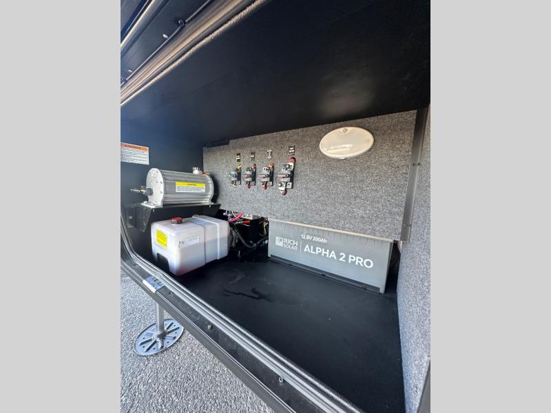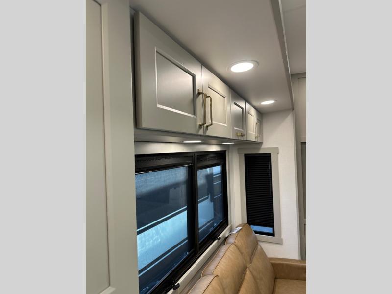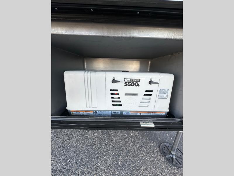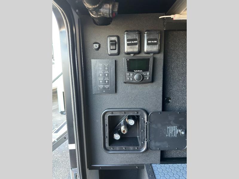 With any Model G toy hauler fifth wheel by Brinkley you will enjoy luxurious amenities, tons of storage space, and innovative features that have been developed and tested in the real world. Durable construction includes an industry leading PDI process, an industry best insulation package, and reinforced and walkable slide roofs. Some of the exterior features you'll find are a 3-way pass-through with a multi-functional flip-up bulkhead wall, under I-beam storage, a MAX-Vision reverse lighting system, and a low-maintenance roof to name a few. A Rockford Fosgate audio system comes standard, along with a OneControl app system that lets you control your fifth wheel's functions right from your mobile device. You will find the solar system with a designated storage area to be ultra convenient, plus there is a FlexPower 5500 with a dual fuel inverter generator for all your power needs. Head inside to find a residential interior with Brinkley's CraftSense wood trim construction, floating entrance steps, integrated window screens and insulated blackout blinds, and residential solid surface countertops plus backsplash. You will also enjoy the neon shower lighting and recessed medicine cabinets in the bath, plus motion activated LED bed lights and dual bedside outlets in the bedroom. Choose a Model G toy hauler fifth wheel to experience all the luxury it has to offer!