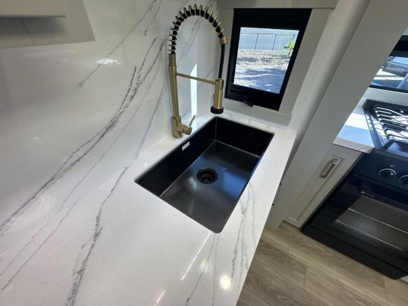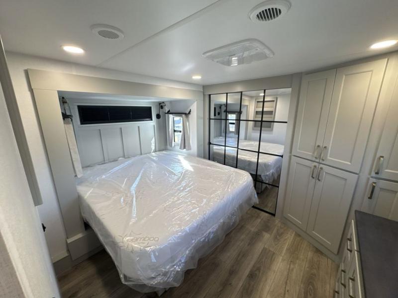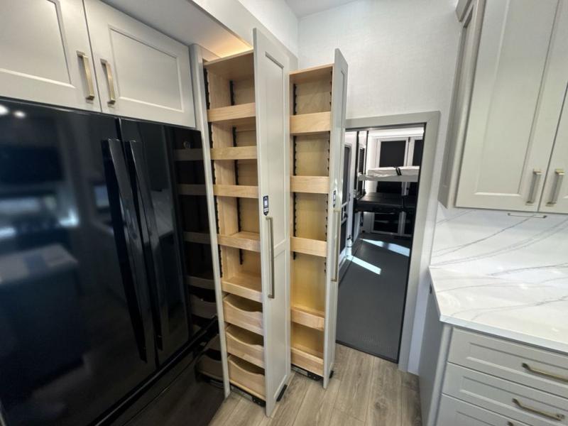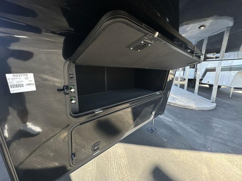 With any Model G toy hauler fifth wheel by Brinkley you will enjoy luxurious amenities, tons of storage space, and innovative features that have been developed and tested in the real world. Durable construction includes an industry leading PDI process, an industry best insulation package, and reinforced and walkable slide roofs. Some of the exterior features you'll find are a 3-way pass-through with a multi-functional flip-up bulkhead wall, under I-beam storage, a MAX-Vision reverse lighting system, and a low-maintenance roof to name a few. A Rockford Fosgate audio system comes standard, along with a OneControl app system that lets you control your fifth wheel's functions right from your mobile device. You will find the solar system with a designated storage area to be ultra convenient, plus there is a FlexPower 5500 with a dual fuel inverter generator for all your power needs. Head inside to find a residential interior with Brinkley's CraftSense wood trim construction, floating entrance steps, integrated window screens and insulated blackout blinds, and residential solid surface countertops plus backsplash. You will also enjoy the neon shower lighting and recessed medicine cabinets in the bath, plus motion activated LED bed lights and dual bedside outlets in the bedroom. Choose a Model G toy hauler fifth wheel to experience all the luxury it has to offer!