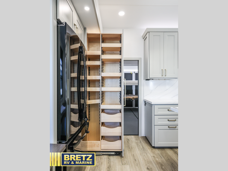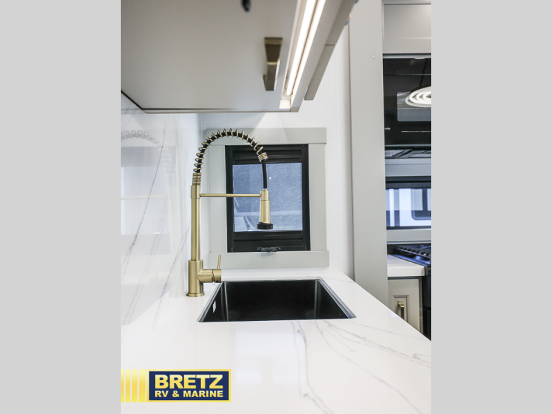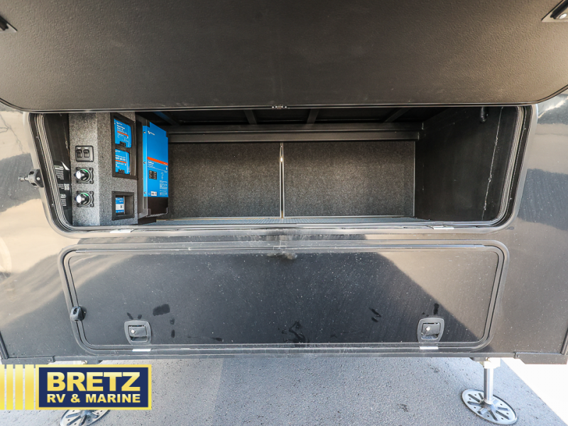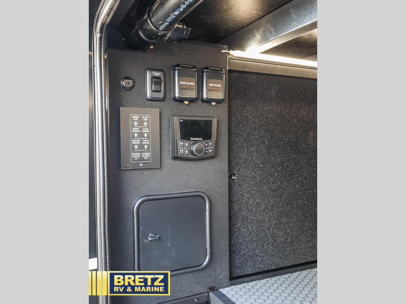 With any Model G toy hauler fifth wheel by Brinkley you will enjoy luxurious amenities, tons of storage space, and innovative features that have been developed and tested in the real world. Durable construction includes an industry leading PDI process, an industry best insulation package, and reinforced and walkable slide roofs. Some of the exterior features you'll find are a 3-way pass-through with a multi-functional flip-up bulkhead wall, under I-beam storage, a MAX-Vision reverse lighting system, and a low-maintenance roof to name a few. A Rockford Fosgate audio system comes standard, along with a OneControl app system that lets you control your fifth wheel's functions right from your mobile device. You will find the solar system with a designated storage area to be ultra convenient, plus there is a FlexPower 5500 with a dual fuel inverter generator for all your power needs. Head inside to find a residential interior with Brinkley's CraftSense wood trim construction, floating entrance steps, integrated window screens and insulated blackout blinds, and residential solid surface countertops plus backsplash. You will also enjoy the neon shower lighting and recessed medicine cabinets in the bath, plus motion activated LED bed lights and dual bedside outlets in the bedroom. Choose a Model G toy hauler fifth wheel to experience all the luxury it has to offer!