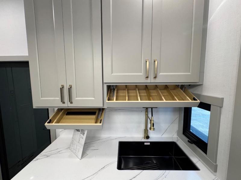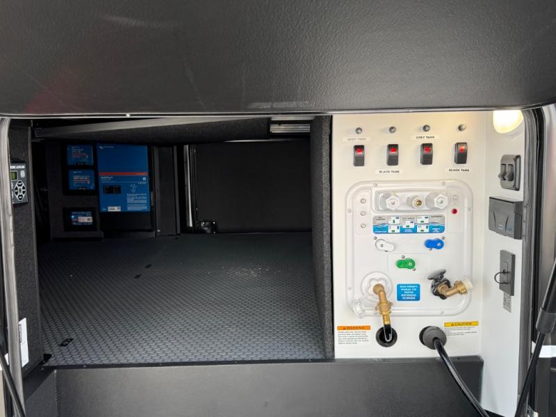 With any Model G toy hauler fifth wheel by Brinkley you will enjoy luxurious amenities, tons of storage space, and innovative features that have been developed and tested in the real world. Durable construction includes an industry leading PDI process, an industry best insulation package, and reinforced and walkable slide roofs. Some of the exterior features you'll find are a 3-way pass-through with a multi-functional flip-up bulkhead wall, under I-beam storage, a MAX-Vision reverse lighting system, and a low-maintenance roof to name a few. A Rockford Fosgate audio system comes standard, along with a OneControl app system that lets you control your fifth wheel's functions right from your mobile device. You will find the solar system with a designated storage area to be ultra convenient, plus there is a FlexPower 5500 with a dual fuel inverter generator for all your power needs. Head inside to find a residential interior with Brinkley's CraftSense wood trim construction, floating entrance steps, integrated window screens and insulated blackout blinds, and residential solid surface countertops plus backsplash. You will also enjoy the neon shower lighting and recessed medicine cabinets in the bath, plus motion activated LED bed lights and dual bedside outlets in the bedroom. Choose a Model G toy hauler fifth wheel to experience all the luxury it has to offer!