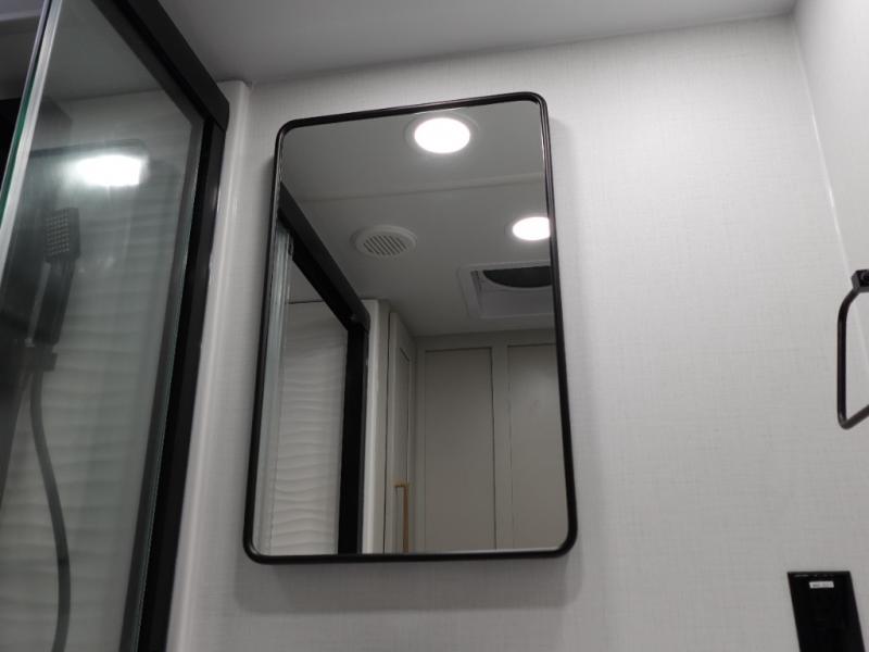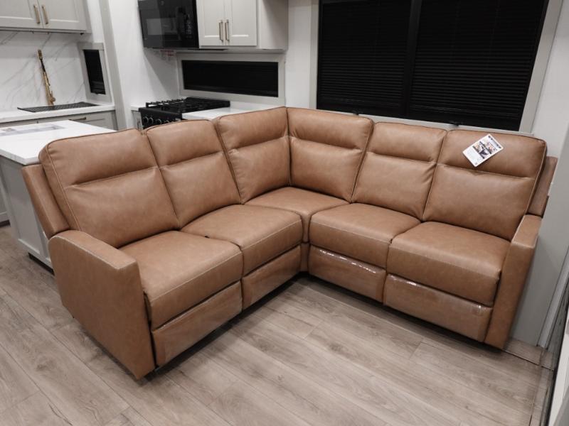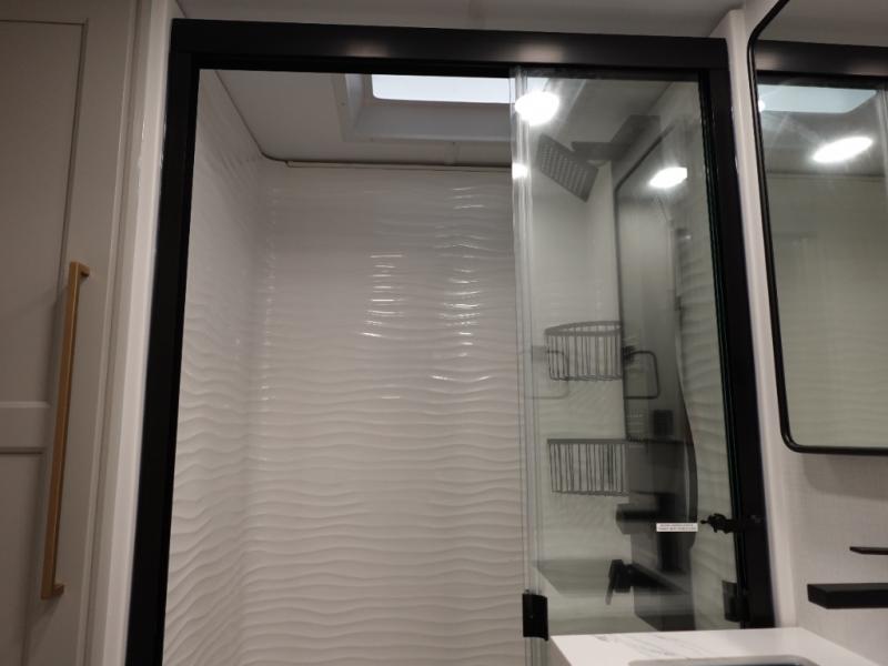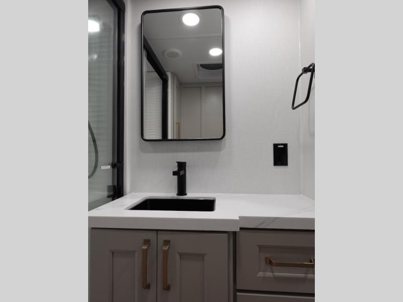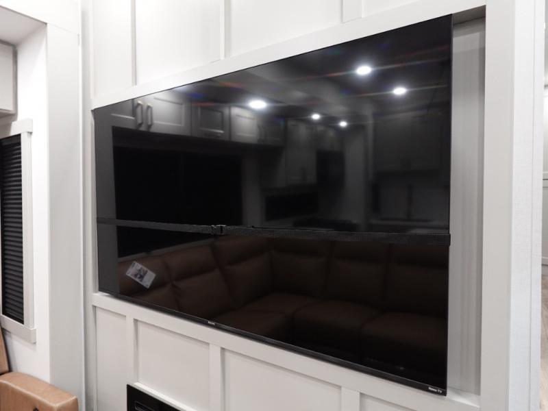 With any Model G toy hauler fifth wheel by Brinkley you will enjoy luxurious amenities, tons of storage space, and innovative features that have been developed and tested in the real world. Durable construction includes an industry leading PDI process, an industry best insulation package, and reinforced and walkable slide roofs. Some of the exterior features you'll find are a 3-way pass-through with a multi-functional flip-up bulkhead wall, under I-beam storage, a MAX-Vision reverse lighting system, and a low-maintenance roof to name a few. A Rockford Fosgate audio system comes standard, along with a OneControl app system that lets you control your fifth wheel's functions right from your mobile device. You will find the solar system with a designated storage area to be ultra convenient, plus there is a FlexPower 5500 with a dual fuel inverter generator for all your power needs. Head inside to find a residential interior with Brinkley's CraftSense wood trim construction, floating entrance steps, integrated window screens and insulated blackout blinds, and residential solid surface countertops plus backsplash. You will also enjoy the neon shower lighting and recessed medicine cabinets in the bath, plus motion activated LED bed lights and dual bedside outlets in the bedroom. Choose a Model G toy hauler fifth wheel to experience all the luxury it has to offer!