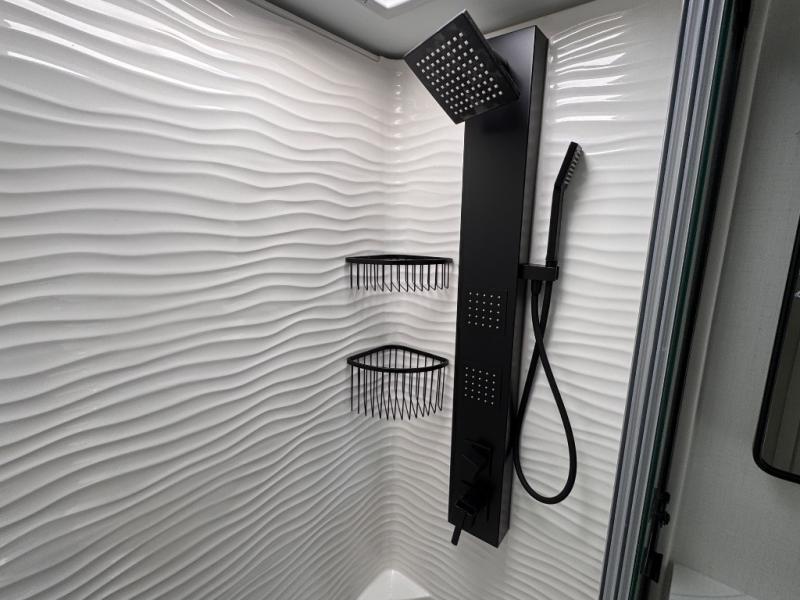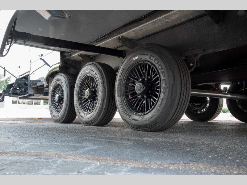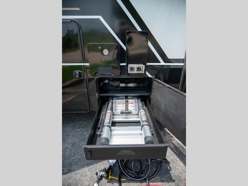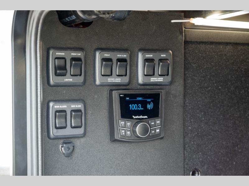 With any Model G toy hauler fifth wheel by Brinkley you will enjoy luxurious amenities, tons of storage space, and innovative features that have been developed and tested in the real world. Durable construction includes an industry leading PDI process, an industry best insulation package, and reinforced and walkable slide roofs. Some of the exterior features you'll find are a 3-way pass-through with a multi-functional flip-up bulkhead wall, under I-beam storage, a MAX-Vision reverse lighting system, and a low-maintenance roof to name a few. A Rockford Fosgate audio system comes standard, along with a OneControl app system that lets you control your fifth wheel's functions right from your mobile device. You will find the solar system with a designated storage area to be ultra convenient, plus there is a FlexPower 5500 with a dual fuel inverter generator for all your power needs. Head inside to find a residential interior with Brinkley's CraftSense wood trim construction, floating entrance steps, integrated window screens and insulated blackout blinds, and residential solid surface countertops plus backsplash. You will also enjoy the neon shower lighting and recessed medicine cabinets in the bath, plus motion activated LED bed lights and dual bedside outlets in the bedroom. Choose a Model G toy hauler fifth wheel to experience all the luxury it has to offer!