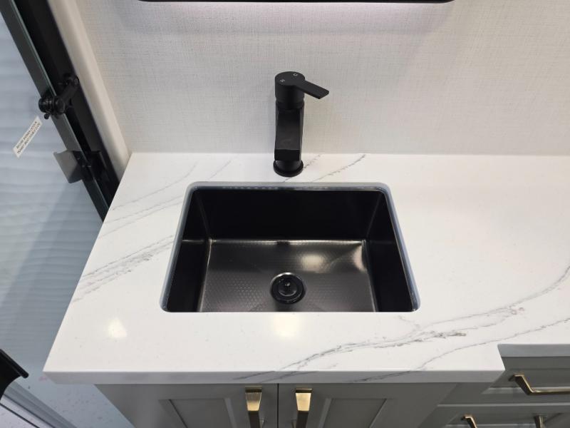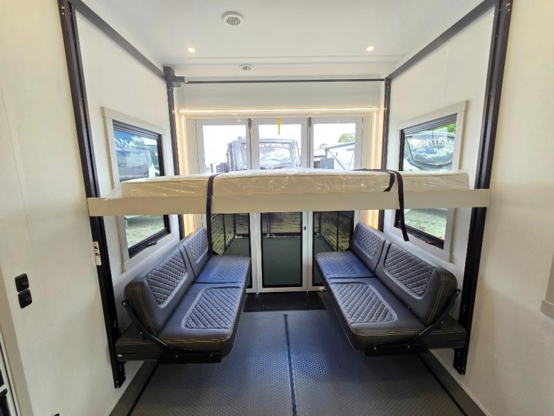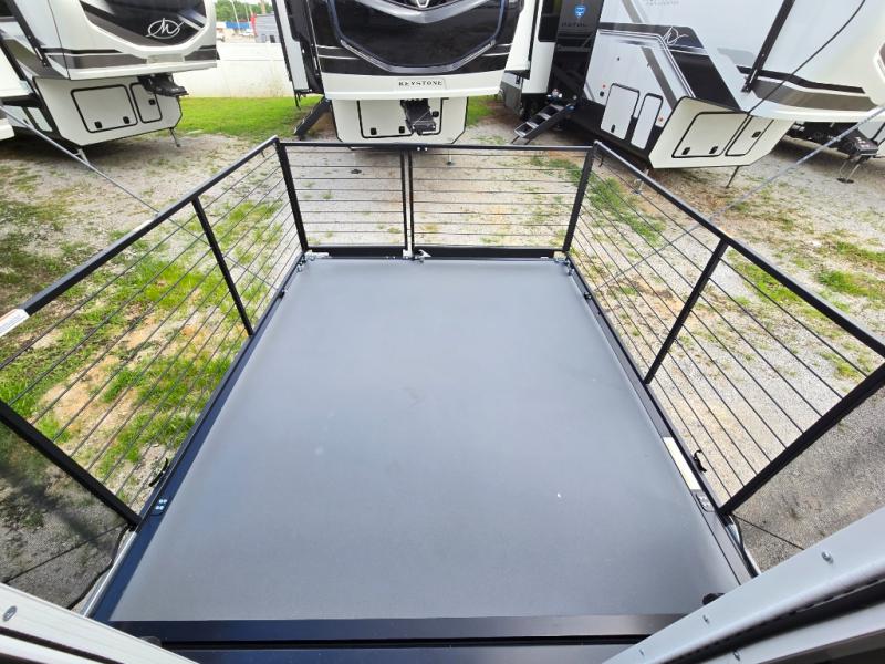 With any Model G toy hauler fifth wheel by Brinkley you will enjoy luxurious amenities, tons of storage space, and innovative features that have been developed and tested in the real world. Durable construction includes an industry leading PDI process, an industry best insulation package, and reinforced and walkable slide roofs. Some of the exterior features you'll find are a 3-way pass-through with a multi-functional flip-up bulkhead wall, under I-beam storage, a MAX-Vision reverse lighting system, and a low-maintenance roof to name a few. A Rockford Fosgate audio system comes standard, along with a OneControl app system that lets you control your fifth wheel's functions right from your mobile device. You will find the solar system with a designated storage area to be ultra convenient, plus there is a FlexPower 5500 with a dual fuel inverter generator for all your power needs. Head inside to find a residential interior with Brinkley's CraftSense wood trim construction, floating entrance steps, integrated window screens and insulated blackout blinds, and residential solid surface countertops plus backsplash. You will also enjoy the neon shower lighting and recessed medicine cabinets in the bath, plus motion activated LED bed lights and dual bedside outlets in the bedroom. Choose a Model G toy hauler fifth wheel to experience all the luxury it has to offer!