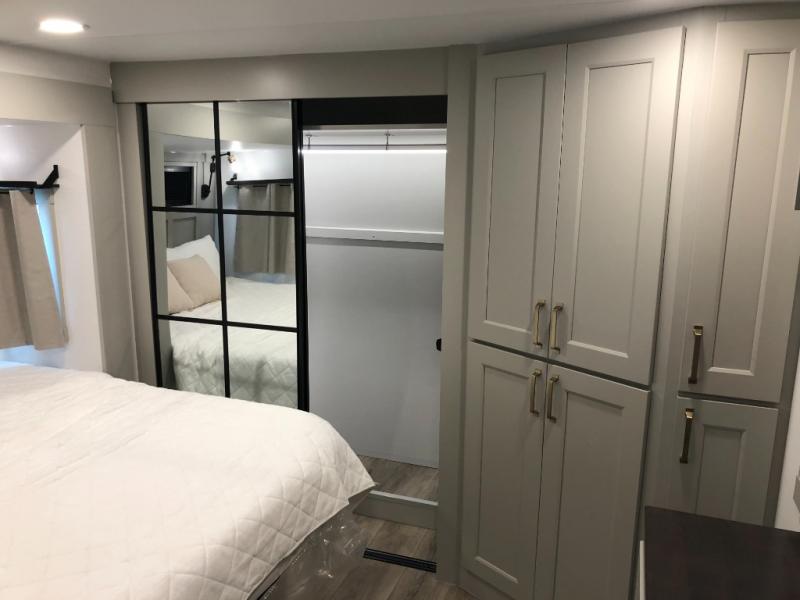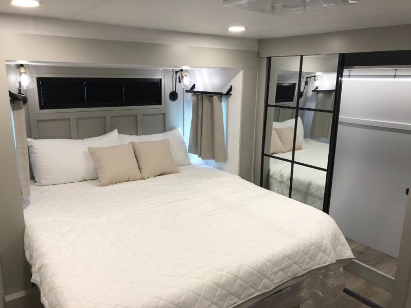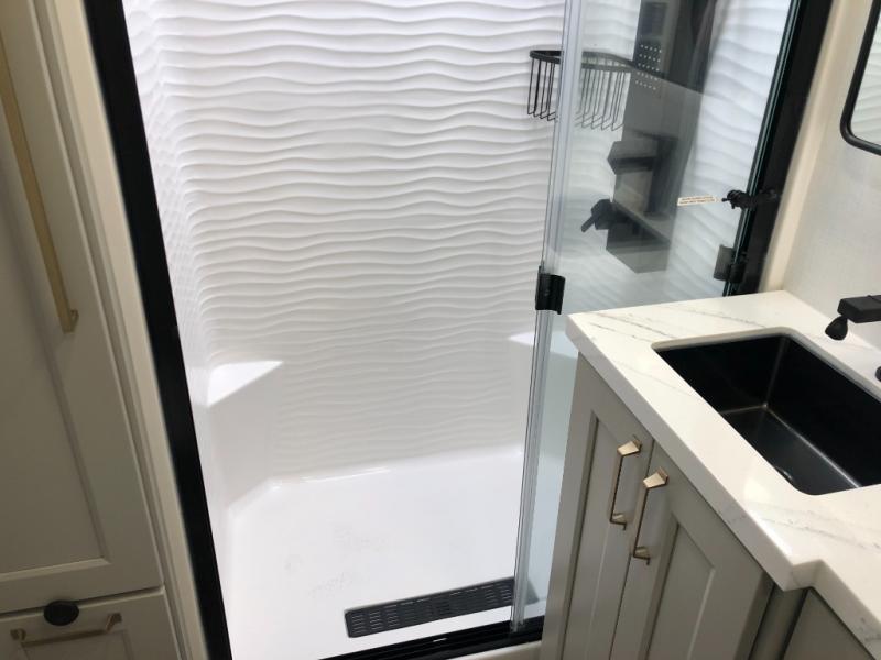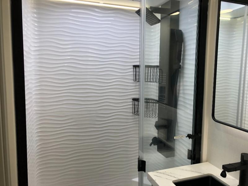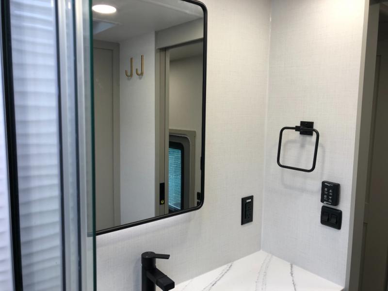 With any Model G toy hauler fifth wheel by Brinkley you will enjoy luxurious amenities, tons of storage space, and innovative features that have been developed and tested in the real world. Durable construction includes an industry leading PDI process, an industry best insulation package, and reinforced and walkable slide roofs. Some of the exterior features you'll find are a 3-way pass-through with a multi-functional flip-up bulkhead wall, under I-beam storage, a MAX-Vision reverse lighting system, and a low-maintenance roof to name a few. A Rockford Fosgate audio system comes standard, along with a OneControl app system that lets you control your fifth wheel's functions right from your mobile device. You will find the solar system with a designated storage area to be ultra convenient, plus there is a FlexPower 5500 with a dual fuel inverter generator for all your power needs. Head inside to find a residential interior with Brinkley's CraftSense wood trim construction, floating entrance steps, integrated window screens and insulated blackout blinds, and residential solid surface countertops plus backsplash. You will also enjoy the neon shower lighting and recessed medicine cabinets in the bath, plus motion activated LED bed lights and dual bedside outlets in the bedroom. Choose a Model G toy hauler fifth wheel to experience all the luxury it has to offer!
