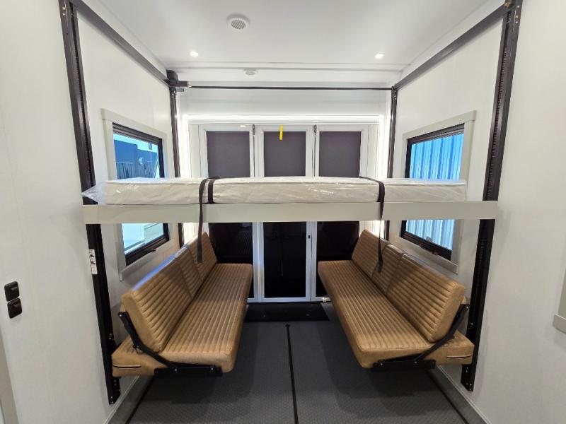 With any Model G toy hauler fifth wheel by Brinkley you will enjoy luxurious amenities, tons of storage space, and innovative features that have been developed and tested in the real world. Durable construction includes an industry leading PDI process, an industry best insulation package, and reinforced and walkable slide roofs. Some of the exterior features you'll find are a 3-way pass-through with a multi-functional flip-up bulkhead wall, under I-beam storage, a MAX-Vision reverse lighting system, and a low-maintenance roof to name a few. A Rockford Fosgate audio system comes standard, along with a OneControl app system that lets you control your fifth wheel's functions right from your mobile device. You will find the solar system with a designated storage area to be ultra convenient, plus there is a FlexPower 5500 with a dual fuel inverter generator for all your power needs. Head inside to find a residential interior with Brinkley's CraftSense wood trim construction, floating entrance steps, integrated window screens and insulated blackout blinds, and residential solid surface countertops plus backsplash. You will also enjoy the neon shower lighting and recessed medicine cabinets in the bath, plus motion activated LED bed lights and dual bedside outlets in the bedroom. Choose a Model G toy hauler fifth wheel to experience all the luxury it has to offer!