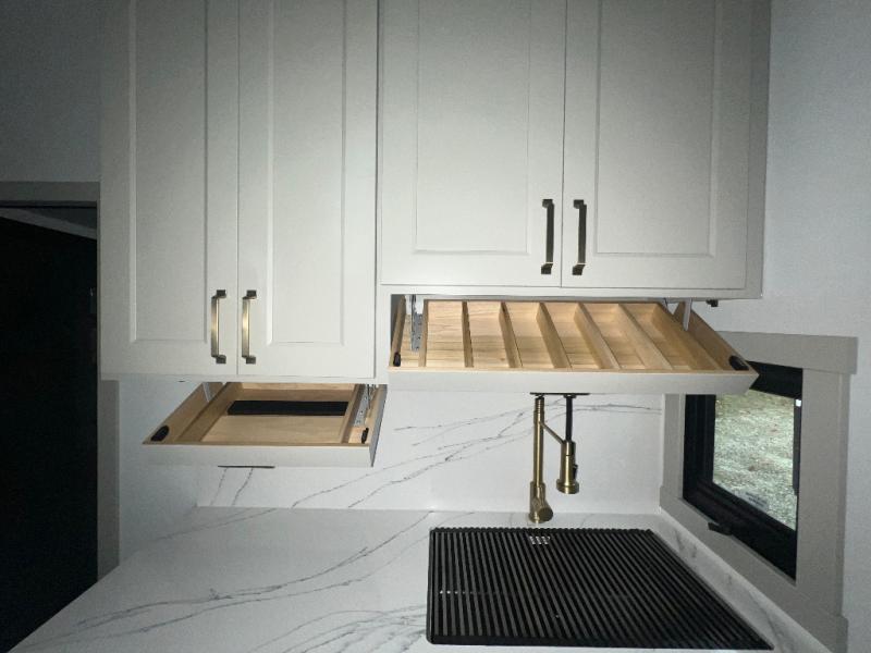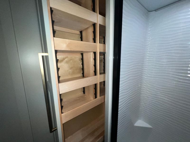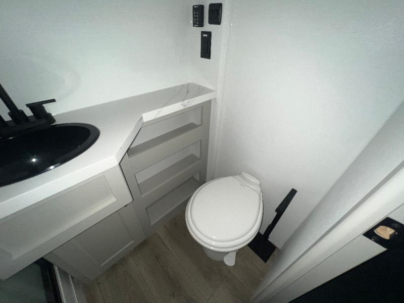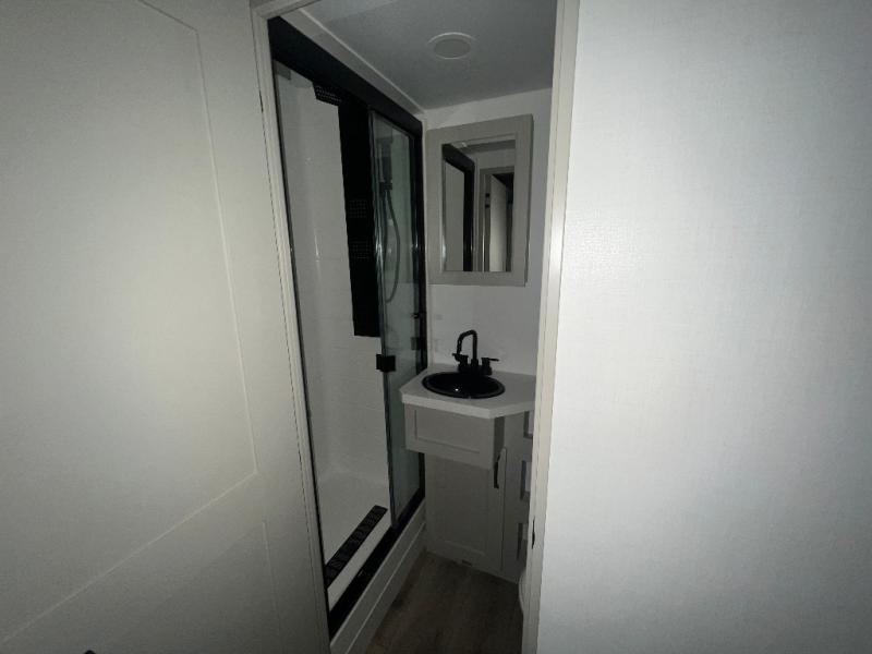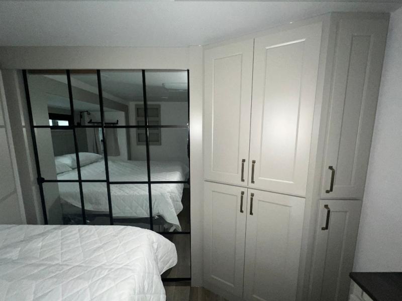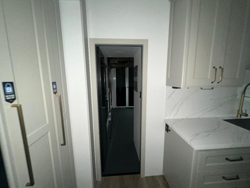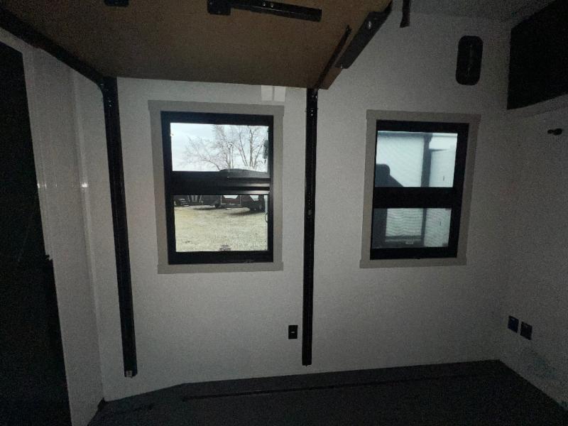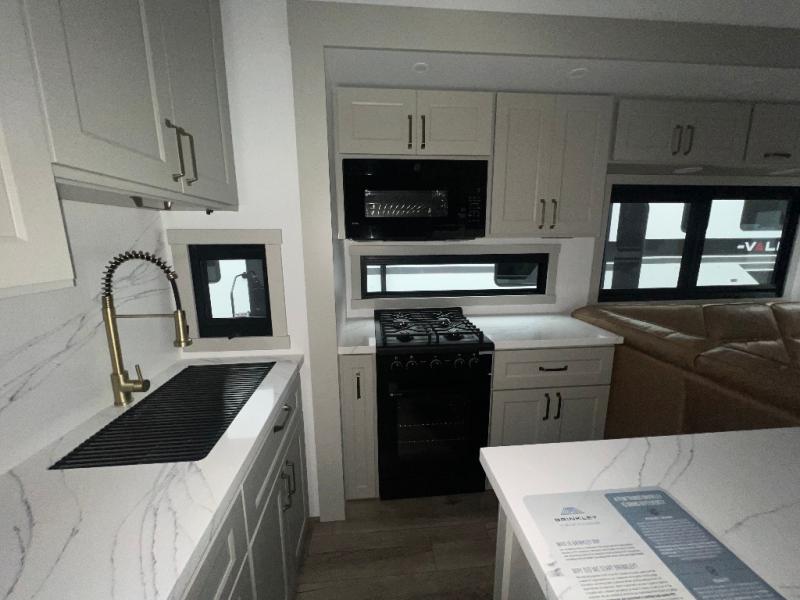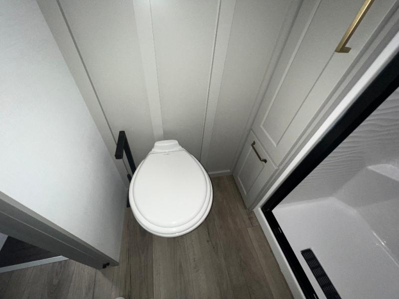 Whether you use this toy hauler to haul your favorite ride-on toys or as a mobile office, you're sure to love every inch of it! The 11' garage includes a Fold-N-Stow table and independent dual sofas, along with a full bath and a loft/storage with a twin bed for more sleeping space. The middle kitchen is every chef's dream with its GE appliances, kitchen island, and convenient features, such as pull-out trash bins and a cutting board, a pull-down knife rack and utensil tray, and a pull-out pantry/utility closet! Right next to the kitchen is the living room with a L-sofa, a 65" Phillips Smart TV and a fireplace, plus a convertible dining table/L-desk where you can dine or get some work done. You'll love the second full bath up front close to the private bedroom, and here, you'll find a king bed slide out, under-bed storage drawers and motion lights, a walk-in closet with cordless vacuum prep, and a sliding dresser top with hidden storage for valuables. There is also washer and dryer prep in the bedroom and garage, making this toy hauler full-time capable!