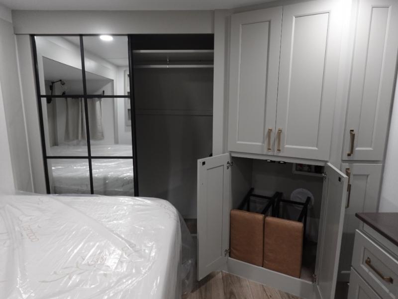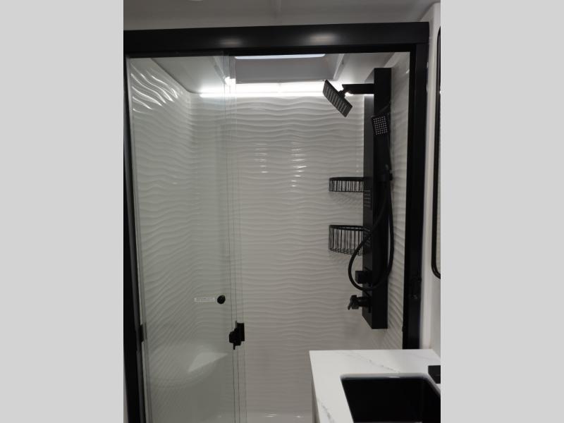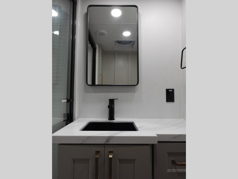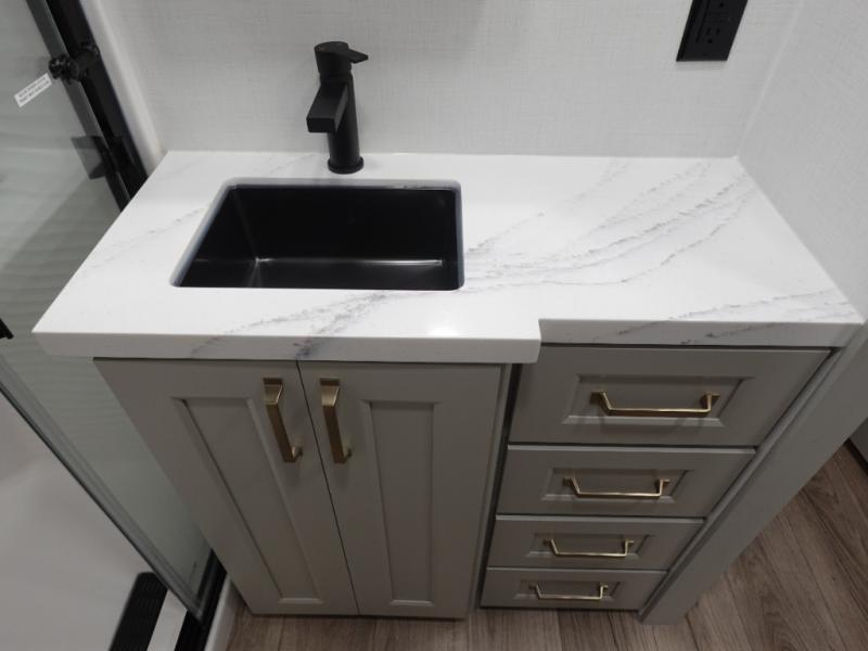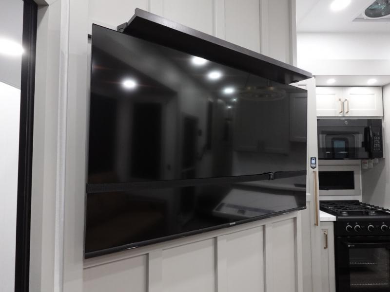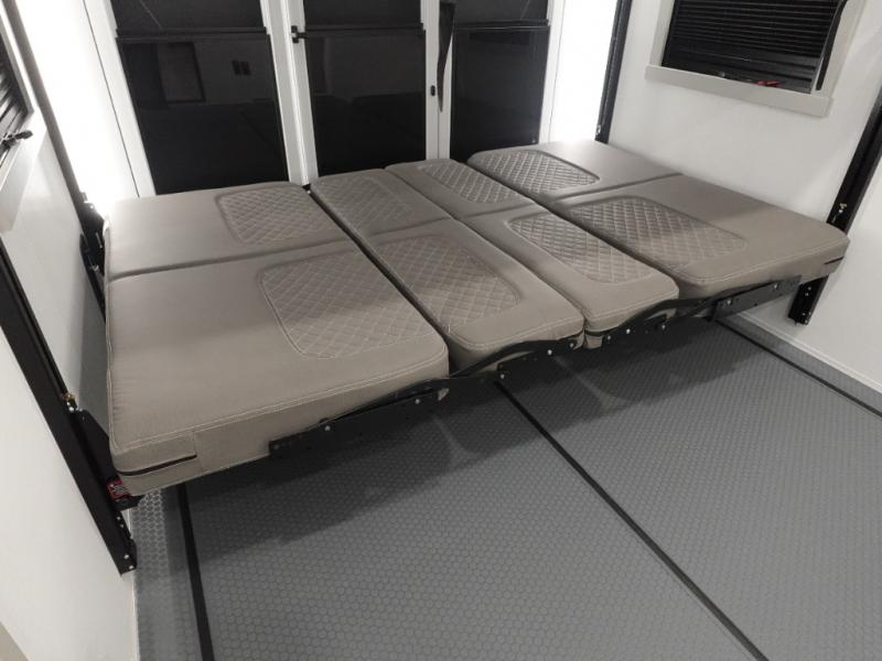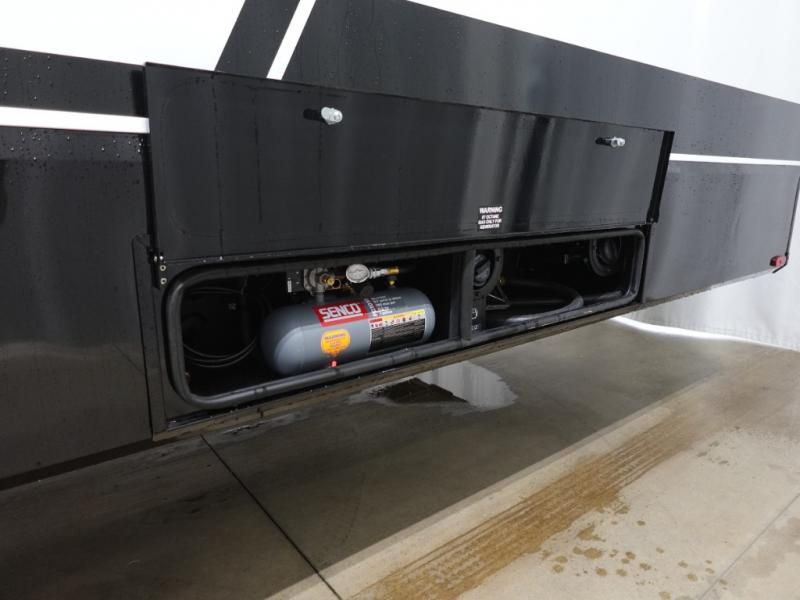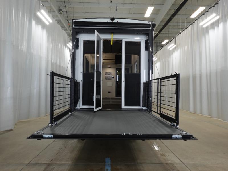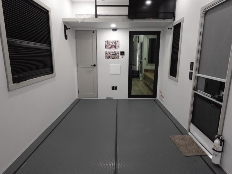 With any Model G toy hauler fifth wheel by Brinkley you will enjoy luxurious amenities, tons of storage space, and innovative features that have been developed and tested in the real world. Durable construction includes an industry leading PDI process, an industry best insulation package, and reinforced and walkable slide roofs. Some of the exterior features you'll find are a 3-way pass-through with a multi-functional flip-up bulkhead wall, under I-beam storage, a MAX-Vision reverse lighting system, and a low-maintenance roof to name a few. A Rockford Fosgate audio system comes standard, along with a OneControl app system that lets you control your fifth wheel's functions right from your mobile device. You will find the solar system with a designated storage area to be ultra convenient, plus there is a FlexPower 5500 with a dual fuel inverter generator for all your power needs. Head inside to find a residential interior with Brinkley's CraftSense wood trim construction, floating entrance steps, integrated window screens and insulated blackout blinds, and residential solid surface countertops plus backsplash. You will also enjoy the neon shower lighting and recessed medicine cabinets in the bath, plus motion activated LED bed lights and dual bedside outlets in the bedroom. Choose a Model G toy hauler fifth wheel to experience all the luxury it has to offer!