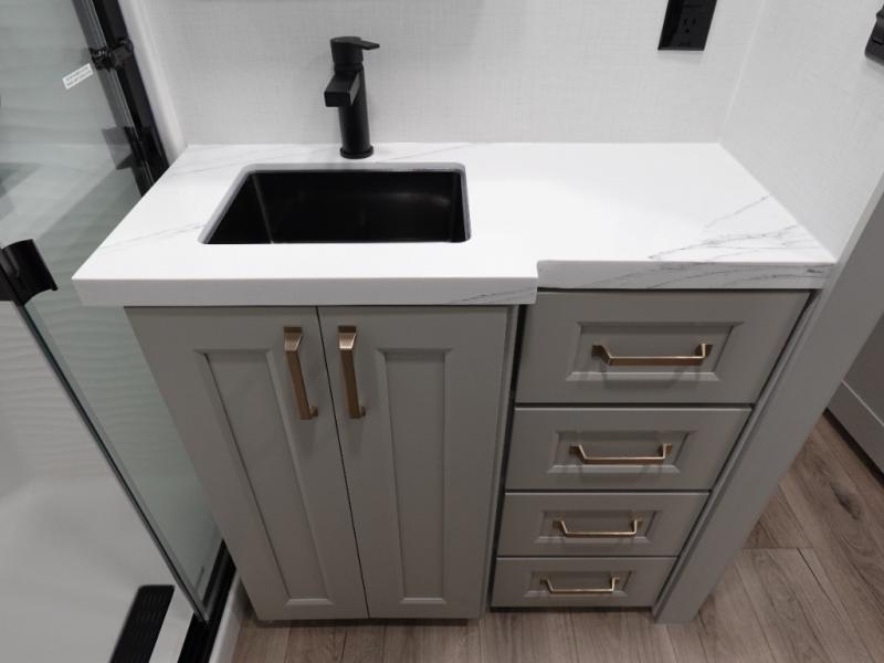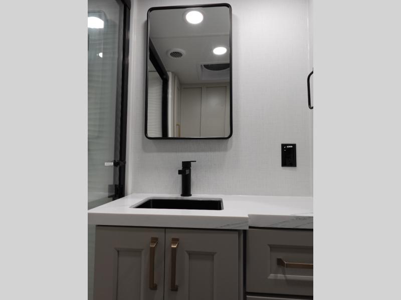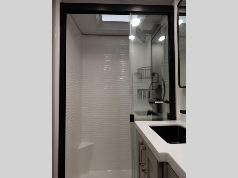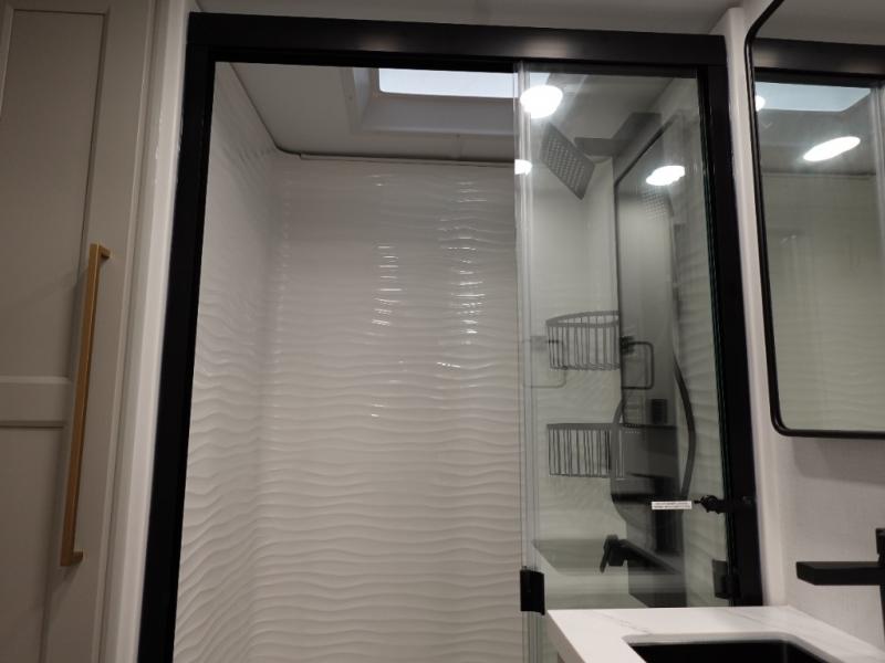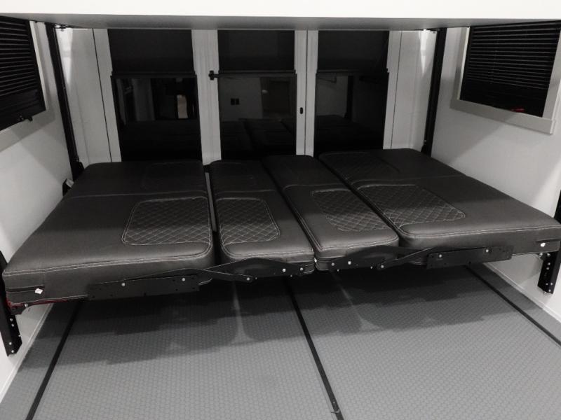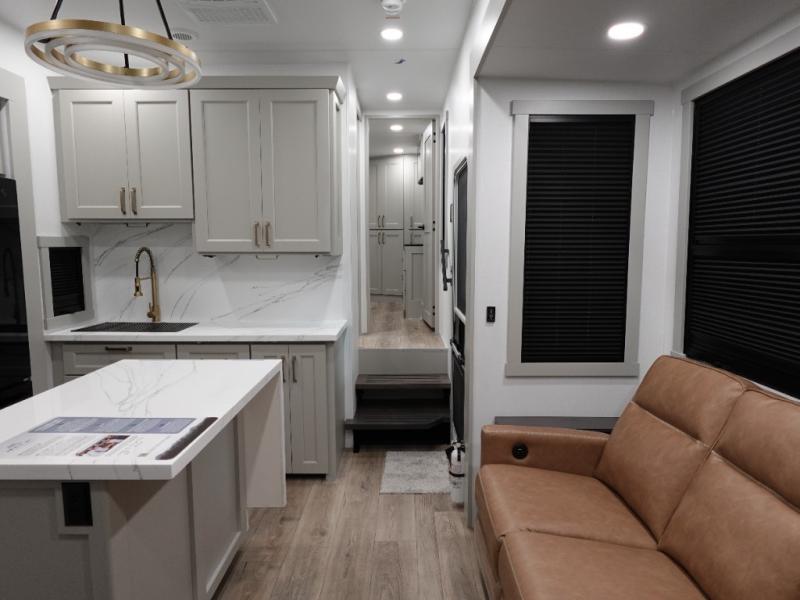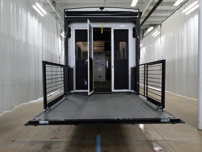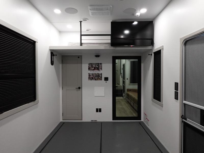 With any Model G toy hauler fifth wheel by Brinkley you will enjoy luxurious amenities, tons of storage space, and innovative features that have been developed and tested in the real world. Durable construction includes an industry leading PDI process, an industry best insulation package, and reinforced and walkable slide roofs. Some of the exterior features you'll find are a 3-way pass-through with a multi-functional flip-up bulkhead wall, under I-beam storage, a MAX-Vision reverse lighting system, and a low-maintenance roof to name a few. A Rockford Fosgate audio system comes standard, along with a OneControl app system that lets you control your fifth wheel's functions right from your mobile device. You will find the solar system with a designated storage area to be ultra convenient, plus there is a FlexPower 5500 with a dual fuel inverter generator for all your power needs. Head inside to find a residential interior with Brinkley's CraftSense wood trim construction, floating entrance steps, integrated window screens and insulated blackout blinds, and residential solid surface countertops plus backsplash. You will also enjoy the neon shower lighting and recessed medicine cabinets in the bath, plus motion activated LED bed lights and dual bedside outlets in the bedroom. Choose a Model G toy hauler fifth wheel to experience all the luxury it has to offer!