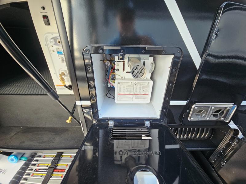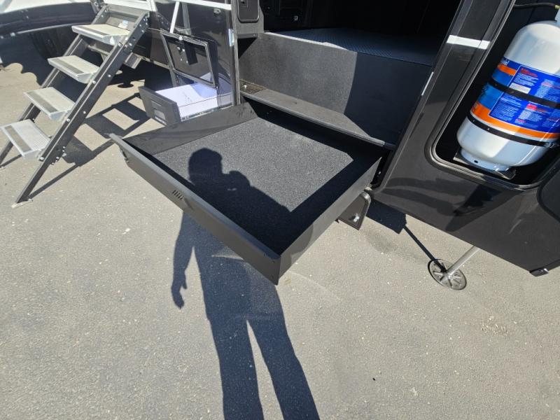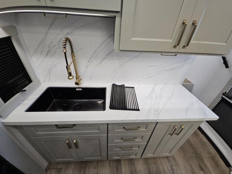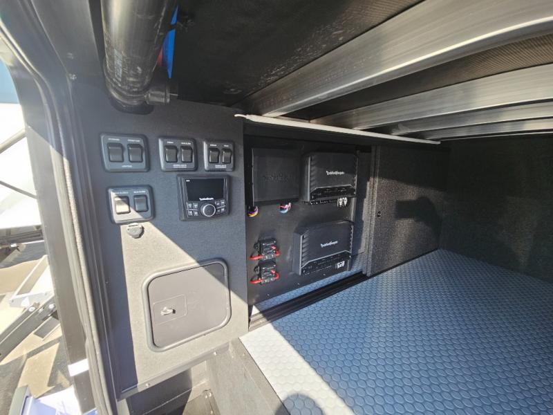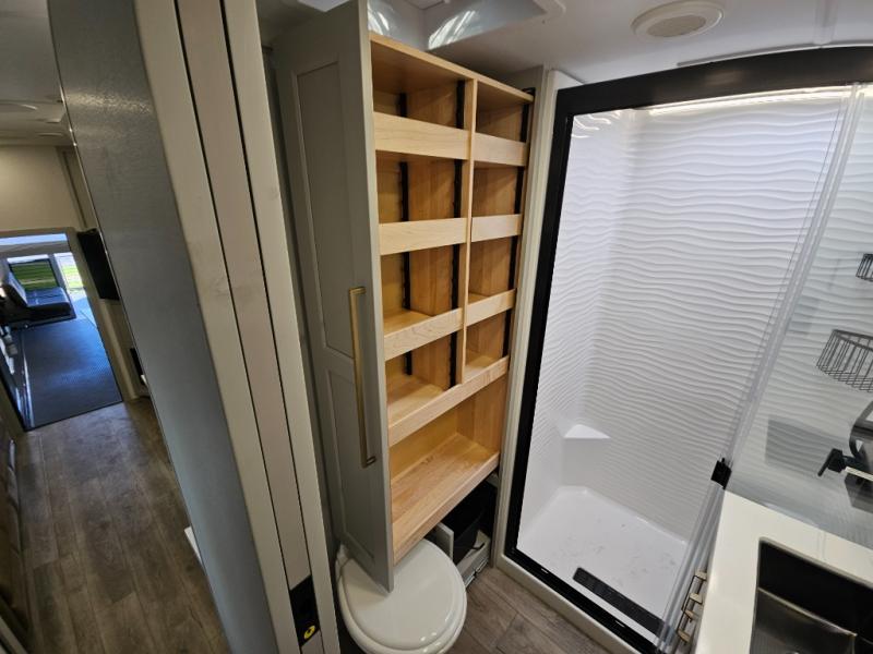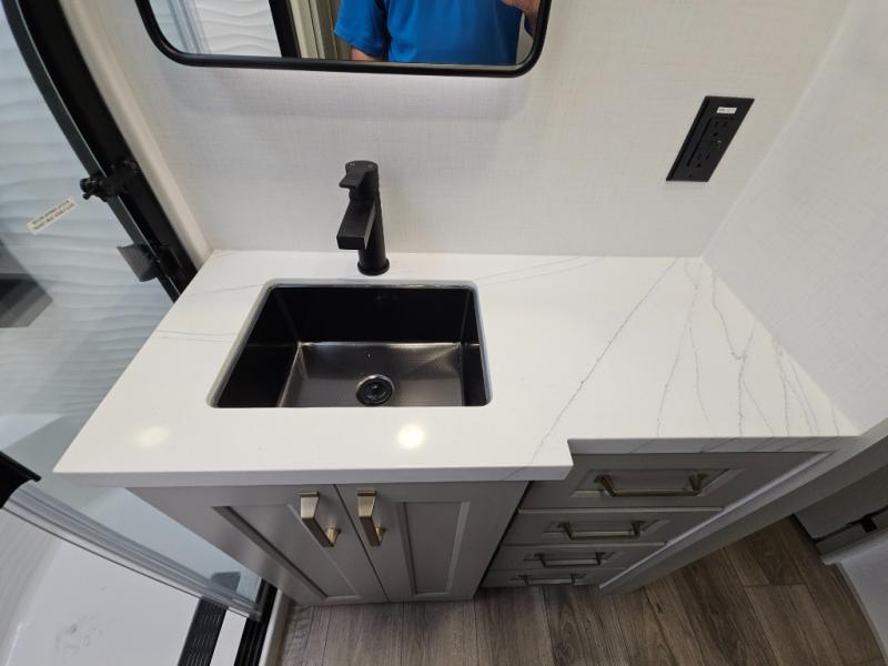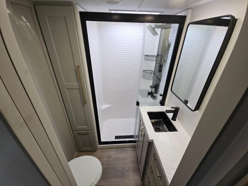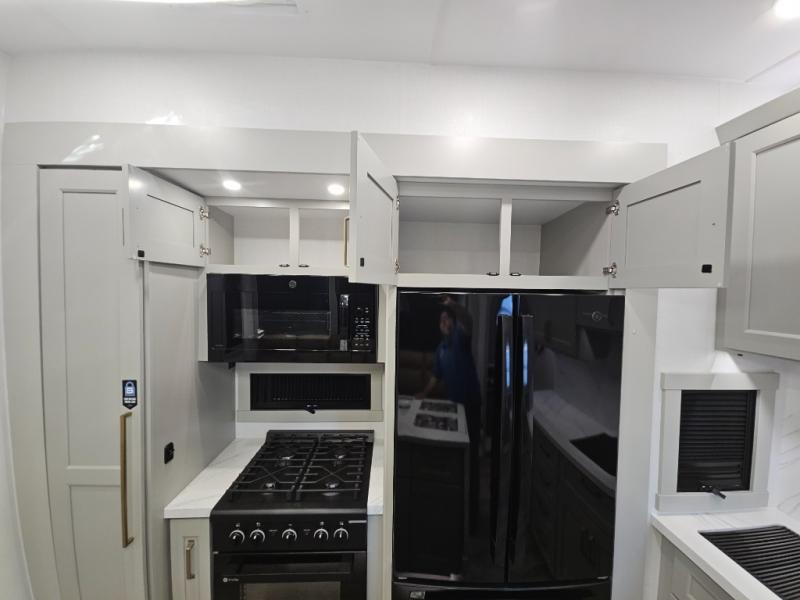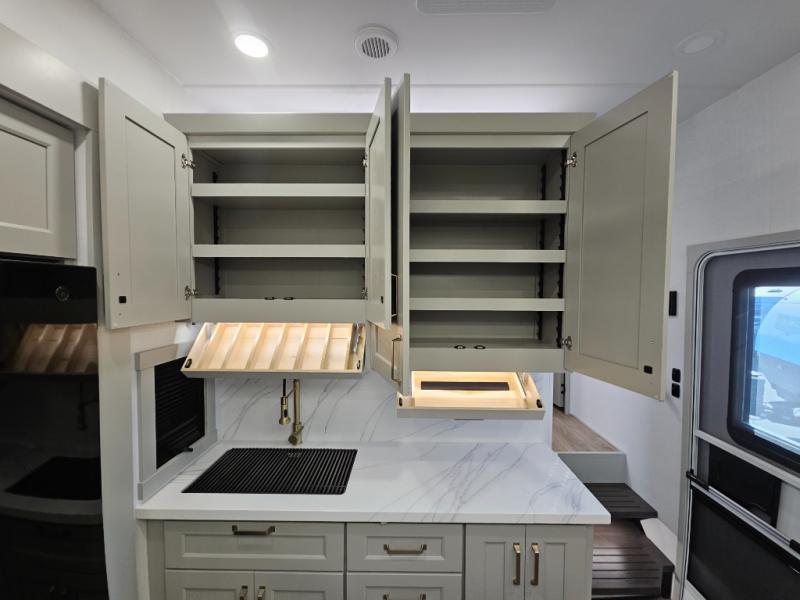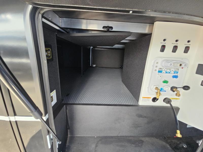 With any Model G toy hauler fifth wheel by Brinkley you will enjoy luxurious amenities, tons of storage space, and innovative features that have been developed and tested in the real world. Durable construction includes an industry leading PDI process, an industry best insulation package, and reinforced and walkable slide roofs. Some of the exterior features you'll find are a 3-way pass-through with a multi-functional flip-up bulkhead wall, under I-beam storage, a MAX-Vision reverse lighting system, and a low-maintenance roof to name a few. A Rockford Fosgate audio system comes standard, along with a OneControl app system that lets you control your fifth wheel's functions right from your mobile device. You will find the solar system with a designated storage area to be ultra convenient, plus there is a FlexPower 5500 with a dual fuel inverter generator for all your power needs. Head inside to find a residential interior with Brinkley's CraftSense wood trim construction, floating entrance steps, integrated window screens and insulated blackout blinds, and residential solid surface countertops plus backsplash. You will also enjoy the neon shower lighting and recessed medicine cabinets in the bath, plus motion activated LED bed lights and dual bedside outlets in the bedroom. Choose a Model G toy hauler fifth wheel to experience all the luxury it has to offer!