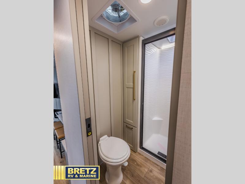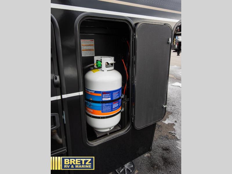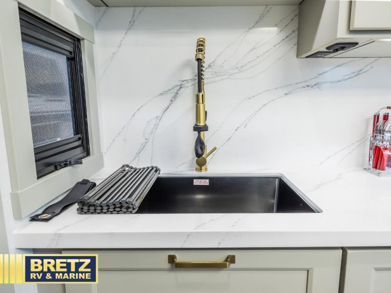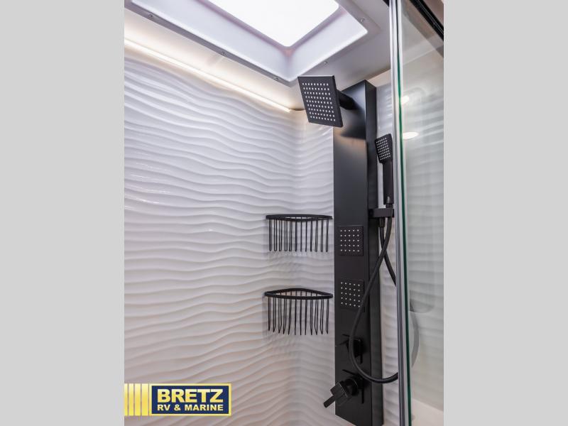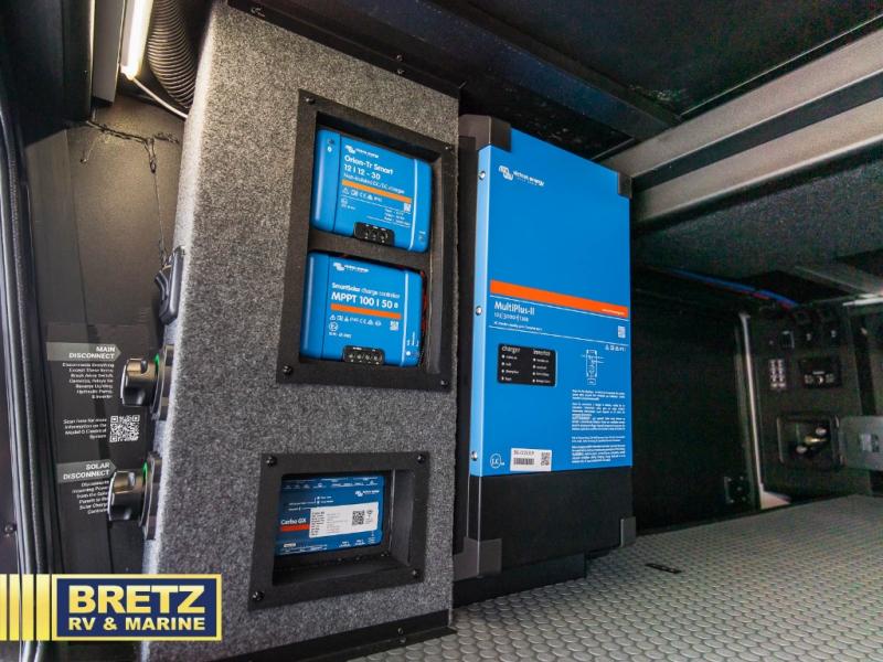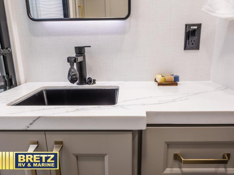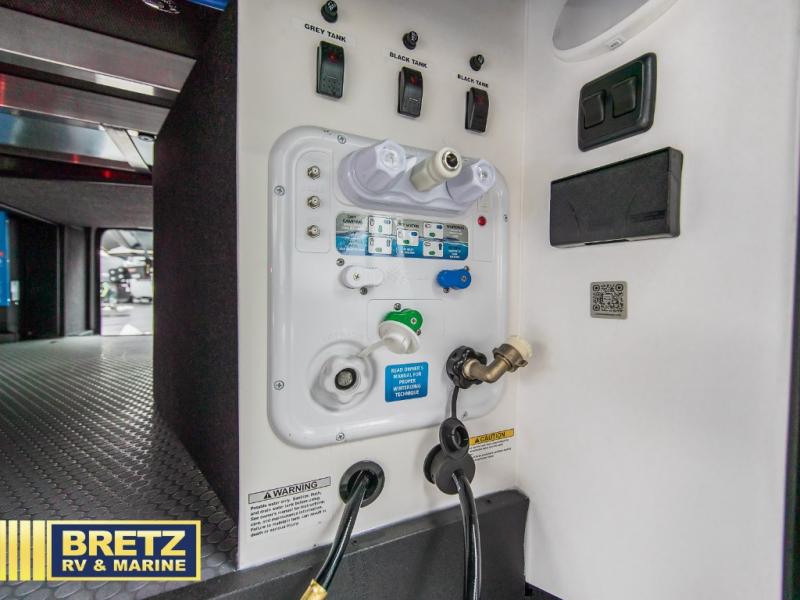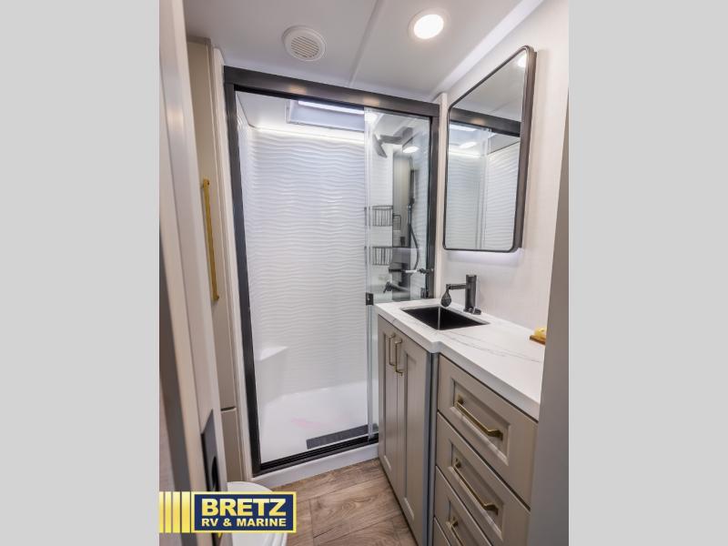 With any Model G toy hauler fifth wheel by Brinkley you will enjoy luxurious amenities, tons of storage space, and innovative features that have been developed and tested in the real world. Durable construction includes an industry leading PDI process, an industry best insulation package, and reinforced and walkable slide roofs. Some of the exterior features you'll find are a 3-way pass-through with a multi-functional flip-up bulkhead wall, under I-beam storage, a MAX-Vision reverse lighting system, and a low-maintenance roof to name a few. A Rockford Fosgate audio system comes standard, along with a OneControl app system that lets you control your fifth wheel's functions right from your mobile device. You will find the solar system with a designated storage area to be ultra convenient, plus there is a FlexPower 5500 with a dual fuel inverter generator for all your power needs. Head inside to find a residential interior with Brinkley's CraftSense wood trim construction, floating entrance steps, integrated window screens and insulated blackout blinds, and residential solid surface countertops plus backsplash. You will also enjoy the neon shower lighting and recessed medicine cabinets in the bath, plus motion activated LED bed lights and dual bedside outlets in the bedroom. Choose a Model G toy hauler fifth wheel to experience all the luxury it has to offer!
