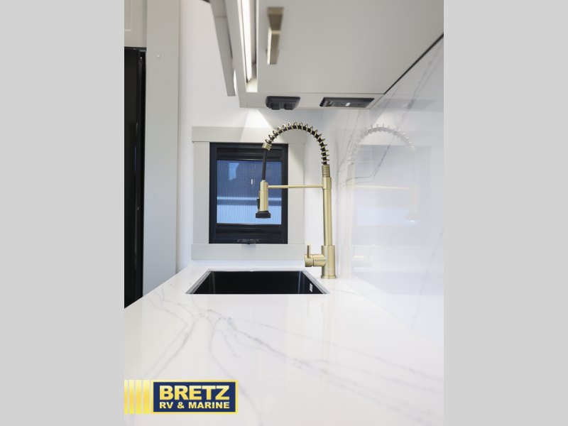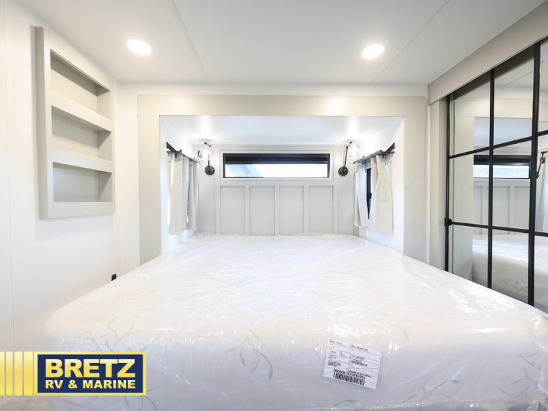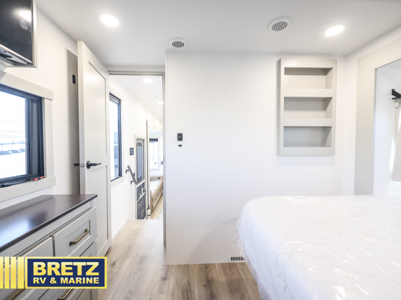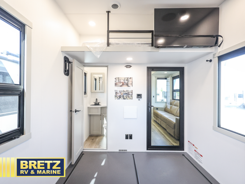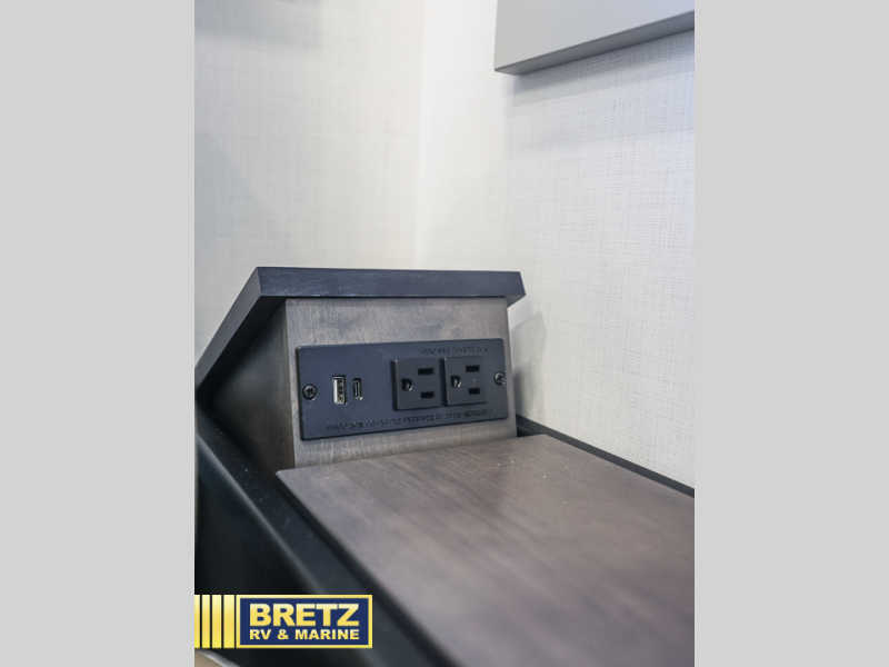 With any Model G toy hauler fifth wheel by Brinkley you will enjoy luxurious amenities, tons of storage space, and innovative features that have been developed and tested in the real world. Durable construction includes an industry leading PDI process, an industry best insulation package, and reinforced and walkable slide roofs. Some of the exterior features you'll find are a 3-way pass-through with a multi-functional flip-up bulkhead wall, under I-beam storage, a MAX-Vision reverse lighting system, and a low-maintenance roof to name a few. A Rockford Fosgate audio system comes standard, along with a OneControl app system that lets you control your fifth wheel's functions right from your mobile device. You will find the solar system with a designated storage area to be ultra convenient, plus there is a FlexPower 5500 with a dual fuel inverter generator for all your power needs. Head inside to find a residential interior with Brinkley's CraftSense wood trim construction, floating entrance steps, integrated window screens and insulated blackout blinds, and residential solid surface countertops plus backsplash. You will also enjoy the neon shower lighting and recessed medicine cabinets in the bath, plus motion activated LED bed lights and dual bedside outlets in the bedroom. Choose a Model G toy hauler fifth wheel to experience all the luxury it has to offer!