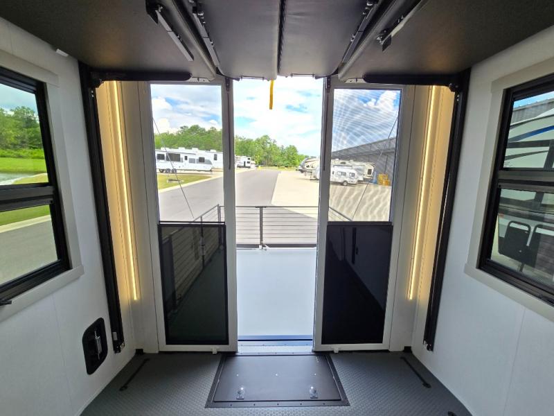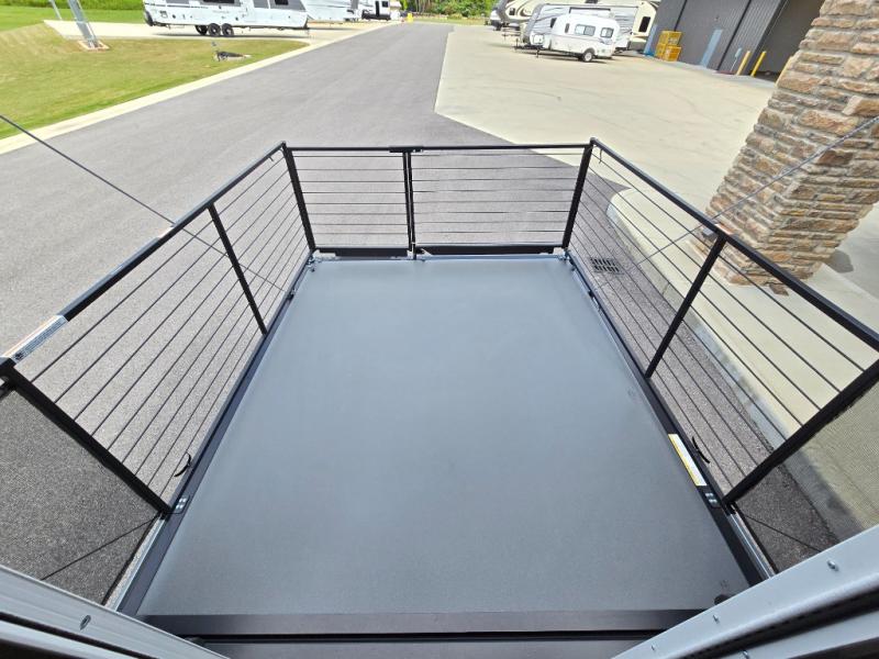 With any Model G toy hauler fifth wheel by Brinkley you will enjoy luxurious amenities, tons of storage space, and innovative features that have been developed and tested in the real world. Durable construction includes an industry leading PDI process, an industry best insulation package, and reinforced and walkable slide roofs. Some of the exterior features you'll find are a 3-way pass-through with a multi-functional flip-up bulkhead wall, under I-beam storage, a MAX-Vision reverse lighting system, and a low-maintenance roof to name a few. A Rockford Fosgate audio system comes standard, along with a OneControl app system that lets you control your fifth wheel's functions right from your mobile device. You will find the solar system with a designated storage area to be ultra convenient, plus there is a FlexPower 5500 with a dual fuel inverter generator for all your power needs. Head inside to find a residential interior with Brinkley's CraftSense wood trim construction, floating entrance steps, integrated window screens and insulated blackout blinds, and residential solid surface countertops plus backsplash. You will also enjoy the neon shower lighting and recessed medicine cabinets in the bath, plus motion activated LED bed lights and dual bedside outlets in the bedroom. Choose a Model G toy hauler fifth wheel to experience all the luxury it has to offer!