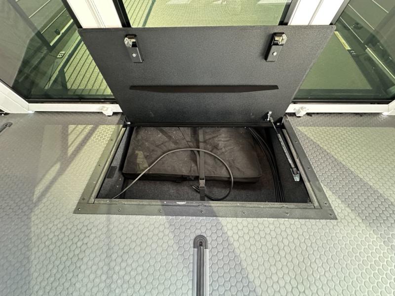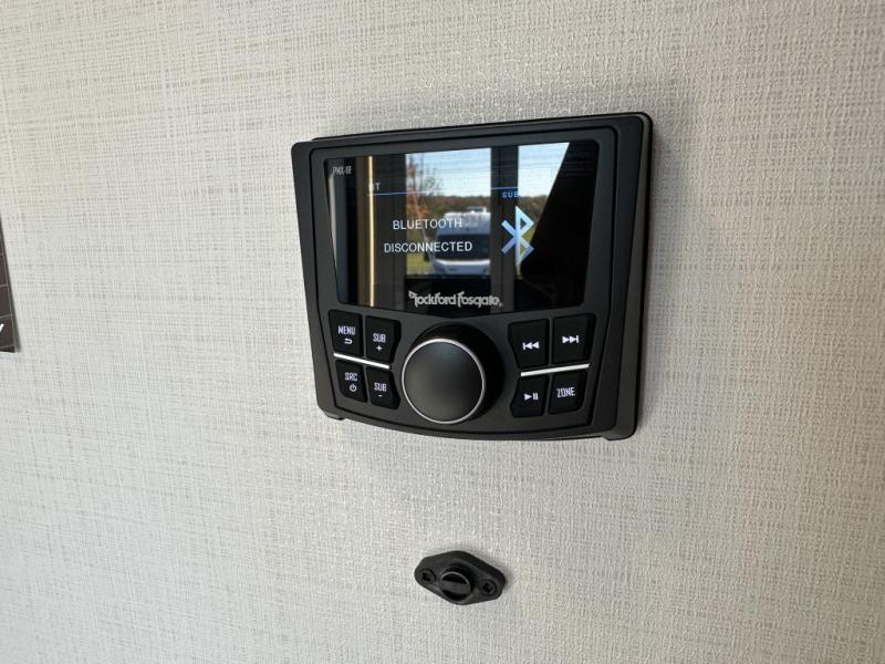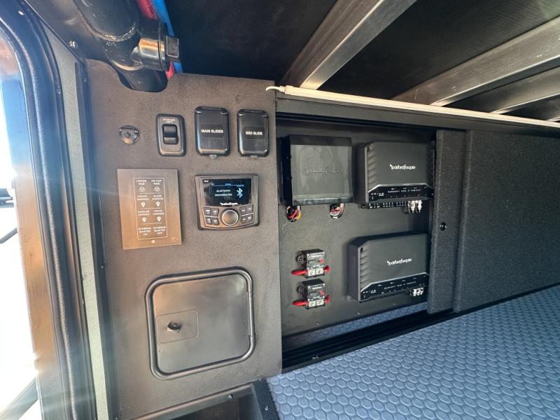 With any Model G toy hauler fifth wheel by Brinkley you will enjoy luxurious amenities, tons of storage space, and innovative features that have been developed and tested in the real world. Durable construction includes an industry leading PDI process, an industry best insulation package, and reinforced and walkable slide roofs. Some of the exterior features you'll find are a 3-way pass-through with a multi-functional flip-up bulkhead wall, under I-beam storage, a MAX-Vision reverse lighting system, and a low-maintenance roof to name a few. A Rockford Fosgate audio system comes standard, along with a OneControl app system that lets you control your fifth wheel's functions right from your mobile device. You will find the solar system with a designated storage area to be ultra convenient, plus there is a FlexPower 5500 with a dual fuel inverter generator for all your power needs. Head inside to find a residential interior with Brinkley's CraftSense wood trim construction, floating entrance steps, integrated window screens and insulated blackout blinds, and residential solid surface countertops plus backsplash. You will also enjoy the neon shower lighting and recessed medicine cabinets in the bath, plus motion activated LED bed lights and dual bedside outlets in the bedroom. Choose a Model G toy hauler fifth wheel to experience all the luxury it has to offer!