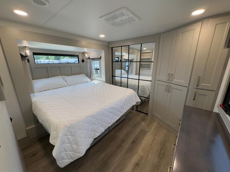 The Brinkley Model G 4100 toy hauler combines high-end luxury with the functionality adventure-seekers demand. With a spacious garage, residential kitchen, and a plush master suite, this fifth wheel is built for both comfort and capability.