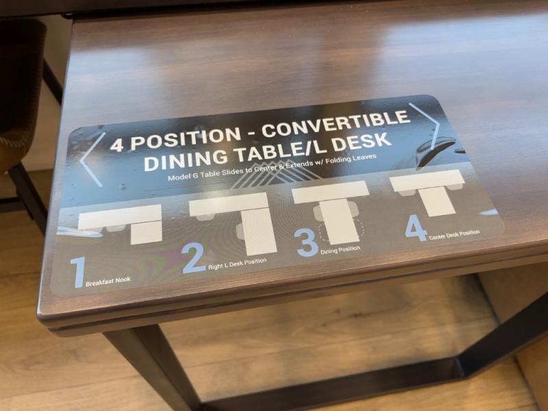 - Convertible dining table/L-desk for meals or work