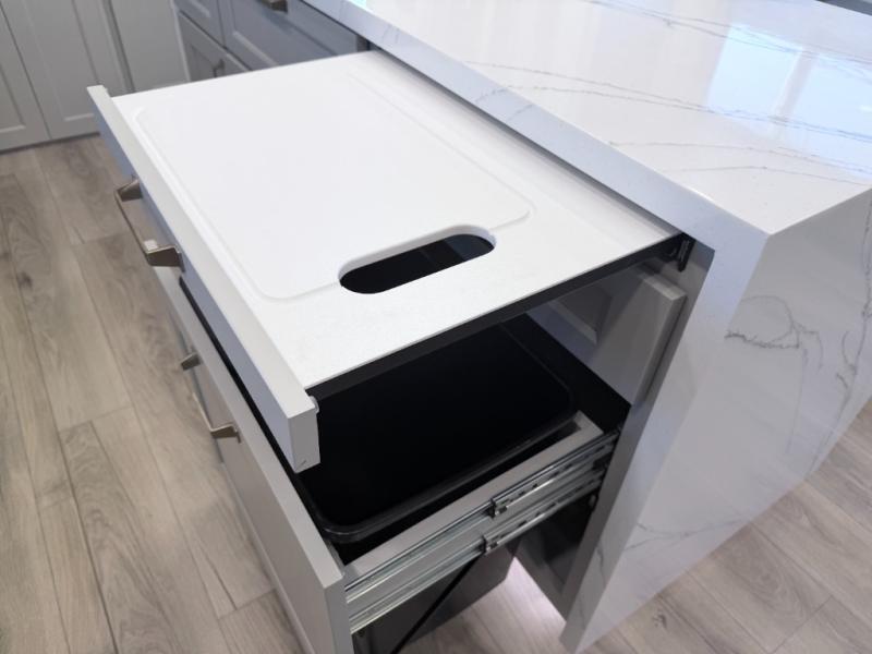 - Full bathroom with 30" x 42" shower, pull-out linen and trash bins