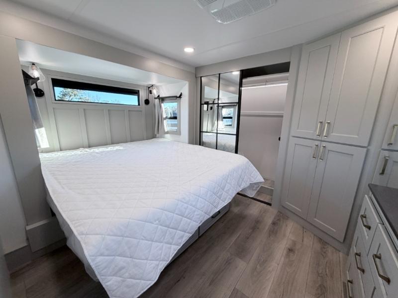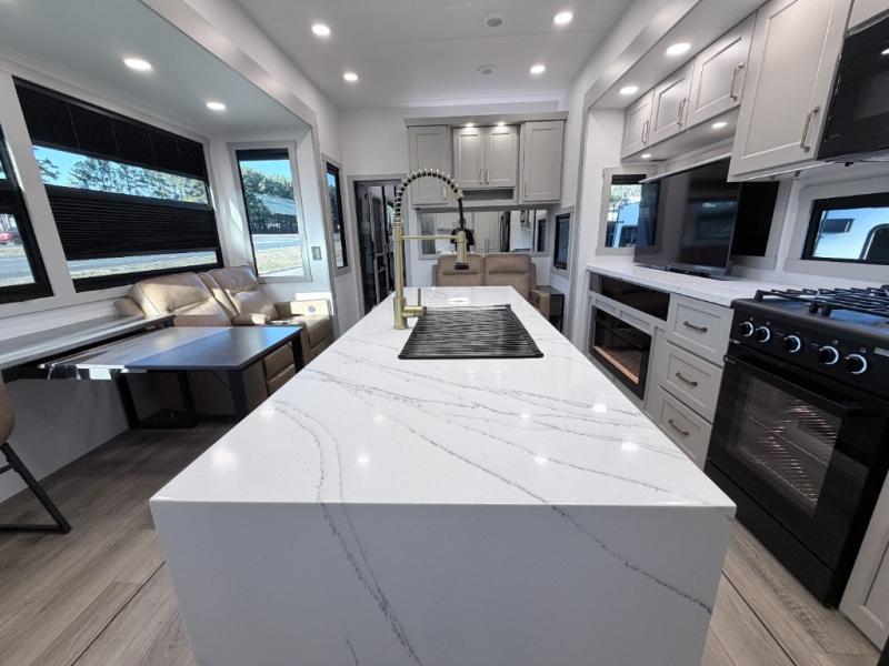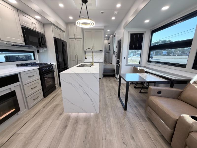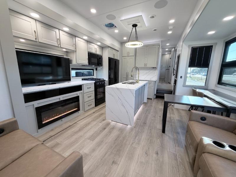 Perfect for families and adventure seekers looking for luxury and versatility, the Brinkley Model G 4100 combines a king bed slide-out, spacious garage, and dual bathrooms with residential-style living features for comfort and convenience. With premium construction, advanced towing capabilities, and thoughtful outdoor-ready amenities, this toy hauler is built to make every trip unforgettable.