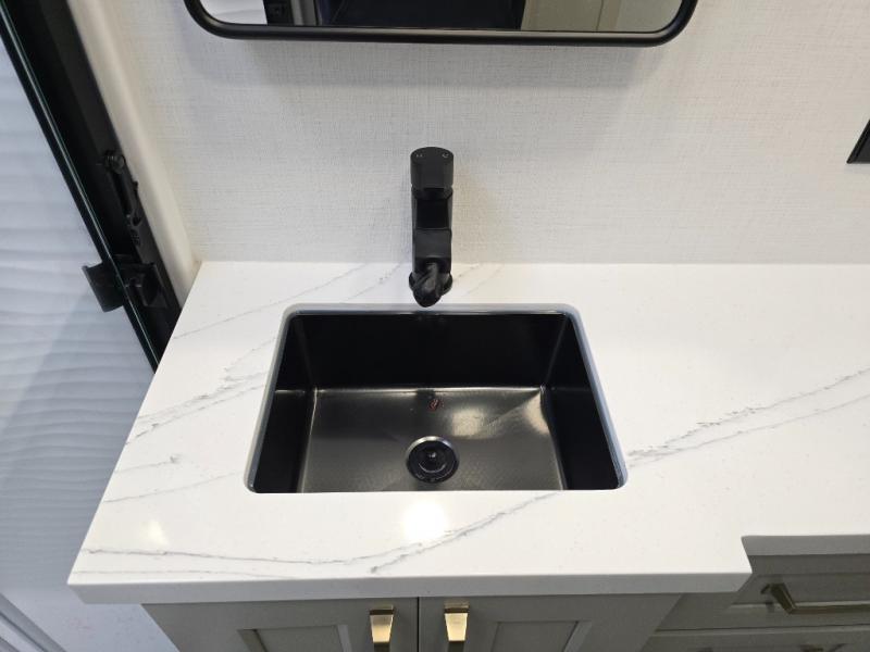 With any Model G toy hauler fifth wheel by Brinkley you will enjoy luxurious amenities, tons of storage space, and innovative features that have been developed and tested in the real world. Durable construction includes an industry leading PDI process, an industry best insulation package, and reinforced and walkable slide roofs. Some of the exterior features you'll find are a 3-way pass-through with a multi-functional flip-up bulkhead wall, under I-beam storage, a MAX-Vision reverse lighting system, and a low-maintenance roof to name a few. A Rockford Fosgate audio system comes standard, along with a OneControl app system that lets you control your fifth wheel's functions right from your mobile device. You will find the solar system with a designated storage area to be ultra convenient, plus there is a FlexPower 5500 with a dual fuel inverter generator for all your power needs. Head inside to find a residential interior with Brinkley's CraftSense wood trim construction, floating entrance steps, integrated window screens and insulated blackout blinds, and residential solid surface countertops plus backsplash. You will also enjoy the neon shower lighting and recessed medicine cabinets in the bath, plus motion activated LED bed lights and dual bedside outlets in the bedroom. Choose a Model G toy hauler fifth wheel to experience all the luxury it has to offer!