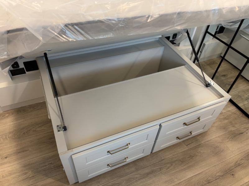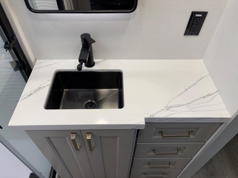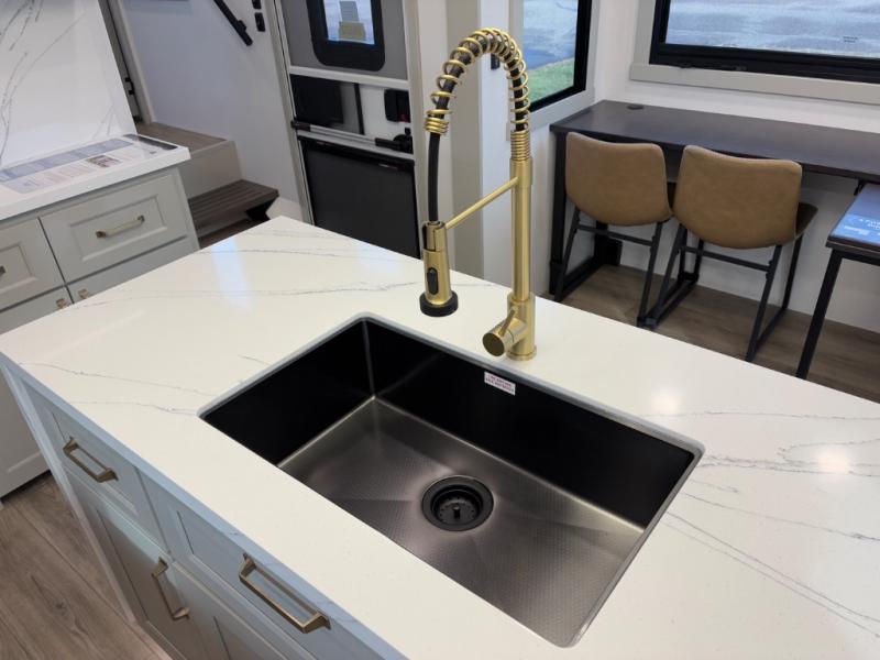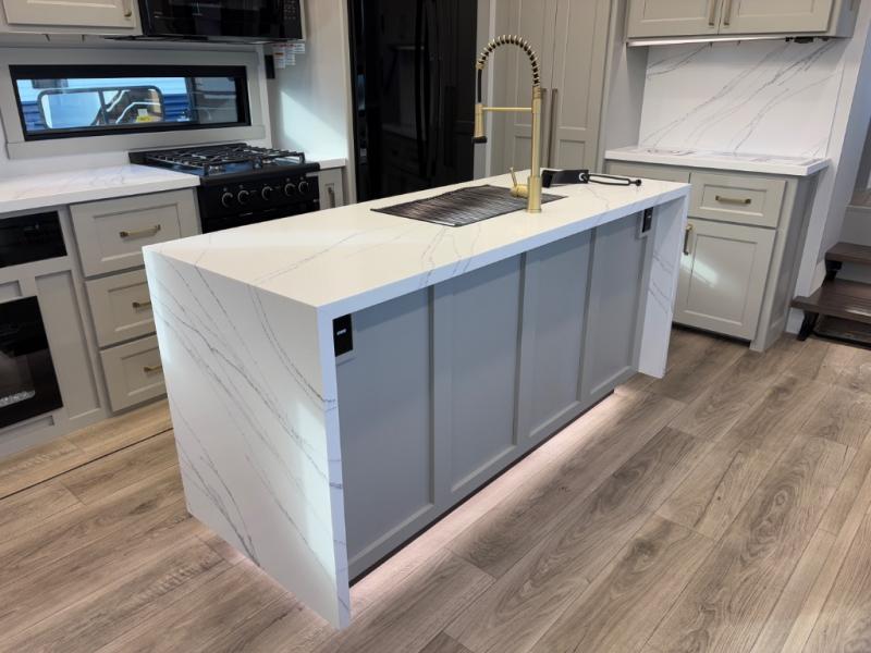 With any Model G toy hauler fifth wheel by Brinkley you will enjoy luxurious amenities, tons of storage space, and innovative features that have been developed and tested in the real world. Durable construction includes an industry leading PDI process, an industry best insulation package, and reinforced and walkable slide roofs. Some of the exterior features you'll find are a 3-way pass-through with a multi-functional flip-up bulkhead wall, under I-beam storage, a MAX-Vision reverse lighting system, and a low-maintenance roof to name a few. A Rockford Fosgate audio system comes standard, along with a OneControl app system that lets you control your fifth wheel's functions right from your mobile device. You will find the solar system with a designated storage area to be ultra convenient, plus there is a FlexPower 5500 with a dual fuel inverter generator for all your power needs. Head inside to find a residential interior with Brinkley's CraftSense wood trim construction, floating entrance steps, integrated window screens and insulated blackout blinds, and residential solid surface countertops plus backsplash. You will also enjoy the neon shower lighting and recessed medicine cabinets in the bath, plus motion activated LED bed lights and dual bedside outlets in the bedroom. Choose a Model G toy hauler fifth wheel to experience all the luxury it has to offer!