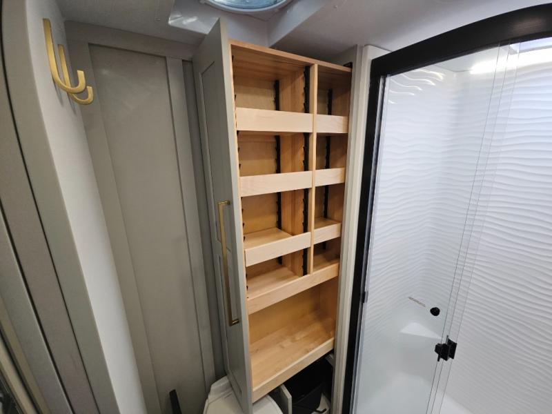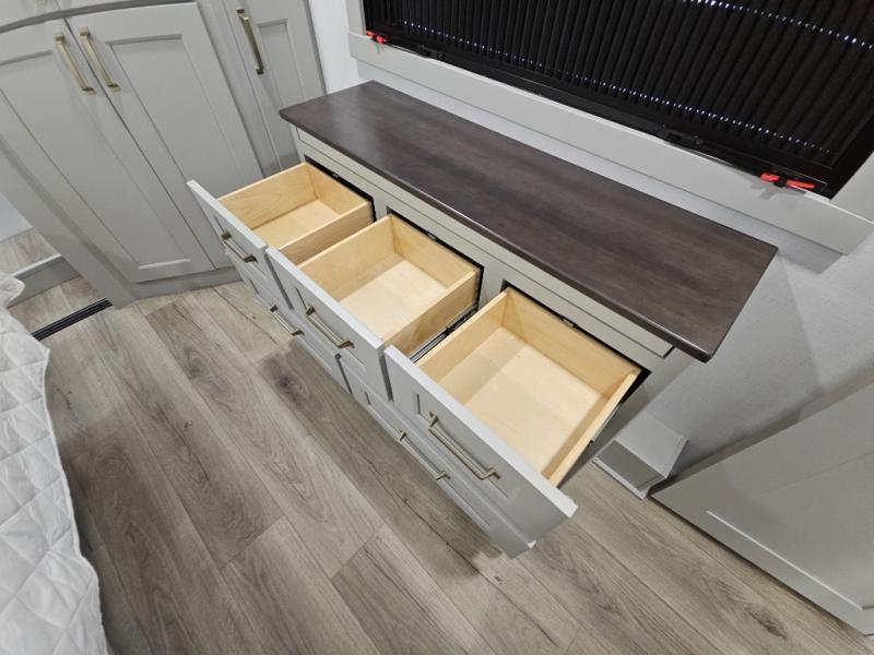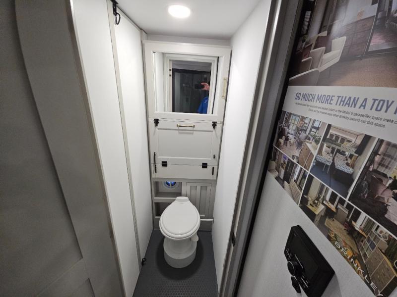 With any Model G toy hauler fifth wheel by Brinkley you will enjoy luxurious amenities, tons of storage space, and innovative features that have been developed and tested in the real world. Durable construction includes an industry leading PDI process, an industry best insulation package, and reinforced and walkable slide roofs. Some of the exterior features you'll find are a 3-way pass-through with a multi-functional flip-up bulkhead wall, under I-beam storage, a MAX-Vision reverse lighting system, and a low-maintenance roof to name a few. A Rockford Fosgate audio system comes standard, along with a Full app-based coach control system (iOS & Android) that lets you control your fifth wheel's functions right from your mobile device. You will find the solar system with a designated storage area to be ultra convenient, plus there is a FlexPower 5500 with a dual fuel inverter generator for all your power needs. Head inside to find a residential interior with Brinkley's CraftSense wood trim construction, floating entrance steps, integrated window screens and insulated blackout blinds, and residential solid surface countertops plus backsplash. You will also enjoy the neon shower lighting and recessed medicine cabinets in the bath, plus motion activated LED bed lights and dual bedside outlets in the bedroom. Choose a Model G toy hauler fifth wheel to experience all the luxury it has to offer!