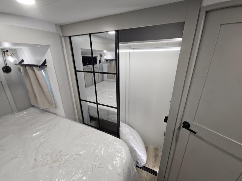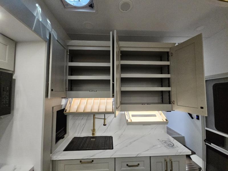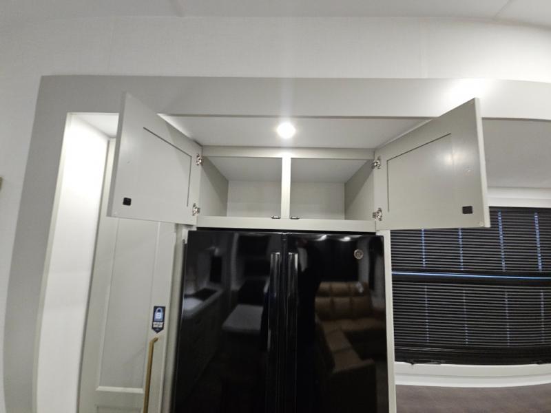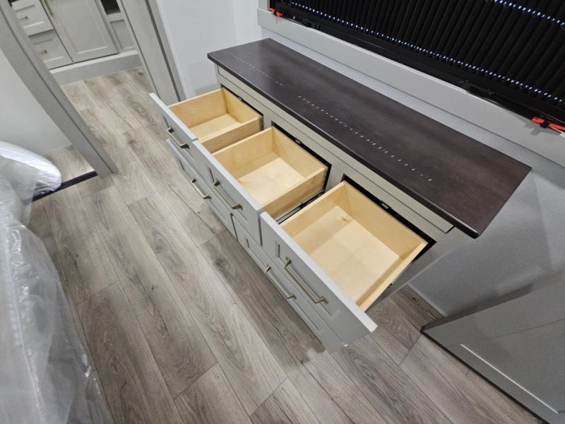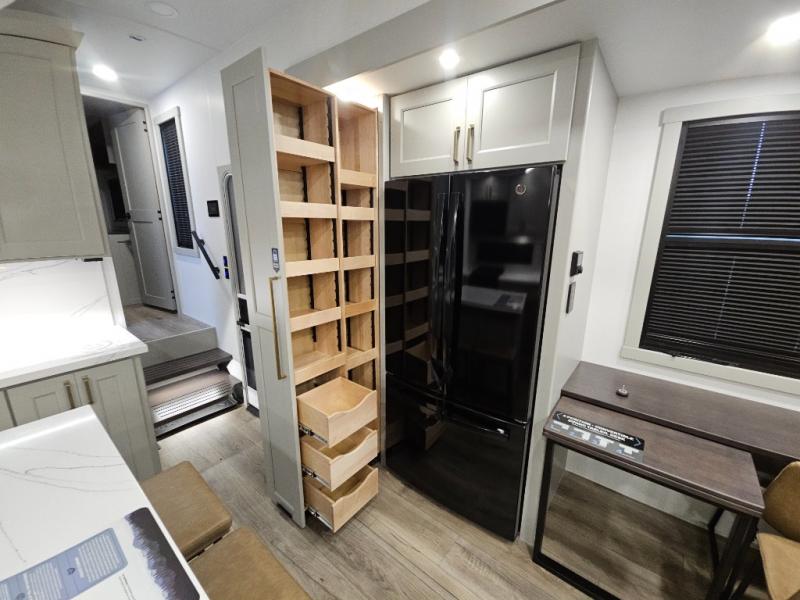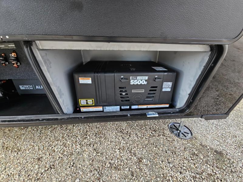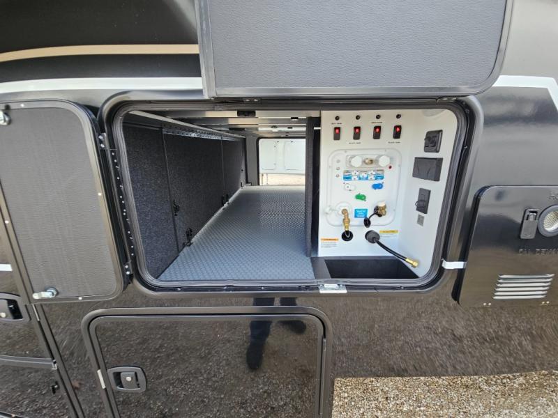 With any Model G toy hauler fifth wheel by Brinkley you will enjoy luxurious amenities, tons of storage space, and innovative features that have been developed and tested in the real world. Durable construction includes an industry leading PDI process, an industry best insulation package, and reinforced and walkable slide roofs. Some of the exterior features you'll find are a 3-way pass-through with a multi-functional flip-up bulkhead wall, under I-beam storage, a MAX-Vision reverse lighting system, and a low-maintenance roof to name a few. A Rockford Fosgate audio system comes standard, along with a Full app-based coach control system (iOS & Android) that lets you control your fifth wheel's functions right from your mobile device. You will find the solar system with a designated storage area to be ultra convenient, plus there is a FlexPower 5500 with a dual fuel inverter generator for all your power needs. Head inside to find a residential interior with Brinkley's CraftSense wood trim construction, floating entrance steps, integrated window screens and insulated blackout blinds, and residential solid surface countertops plus backsplash. You will also enjoy the neon shower lighting and recessed medicine cabinets in the bath, plus motion activated LED bed lights and dual bedside outlets in the bedroom. Choose a Model G toy hauler fifth wheel to experience all the luxury it has to offer!