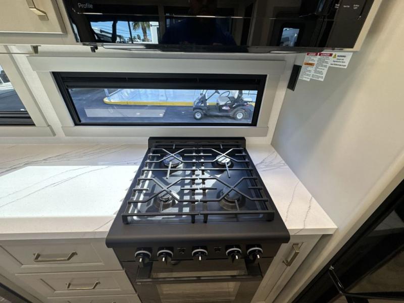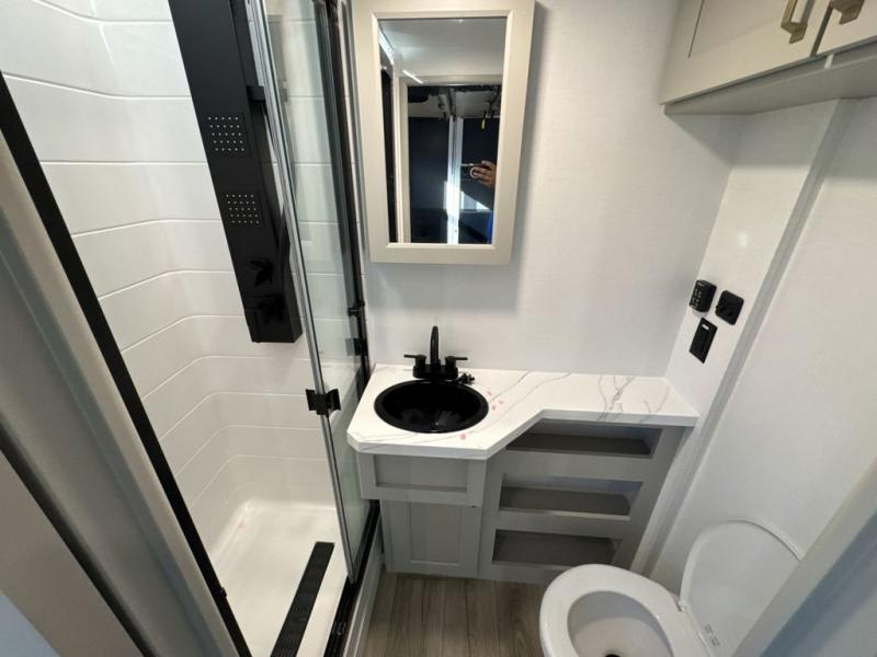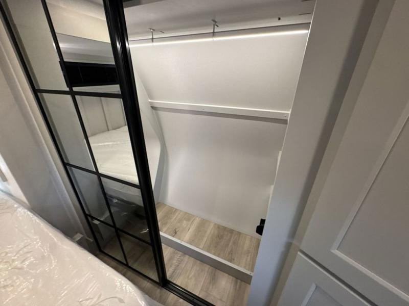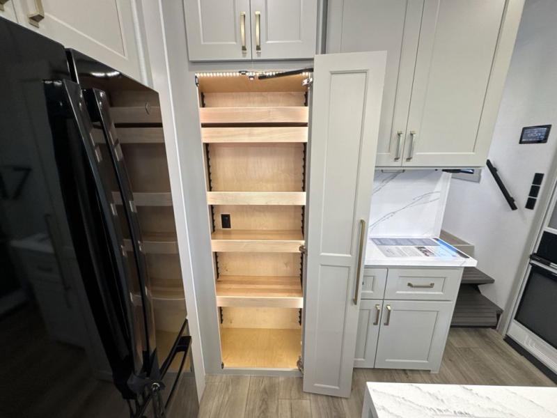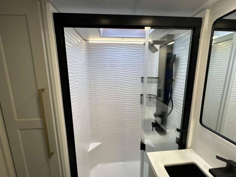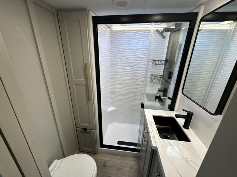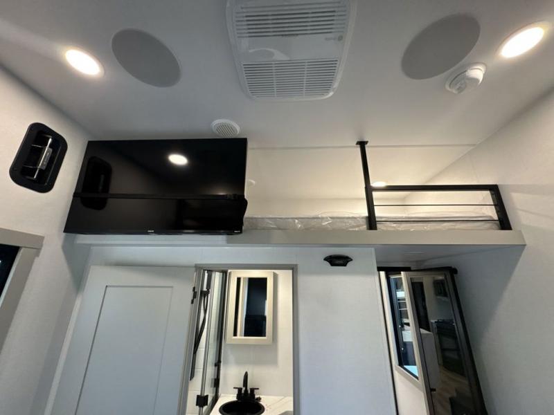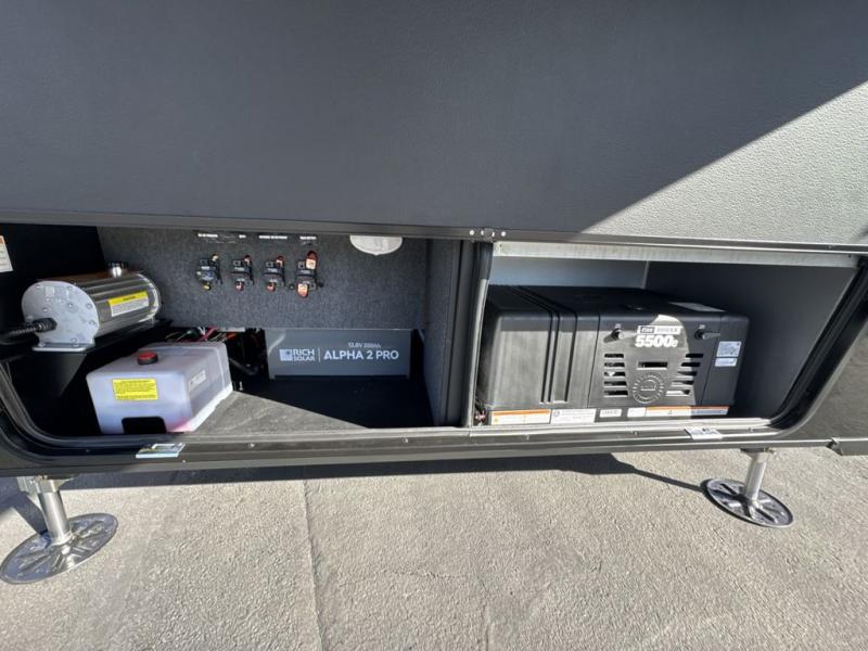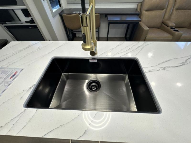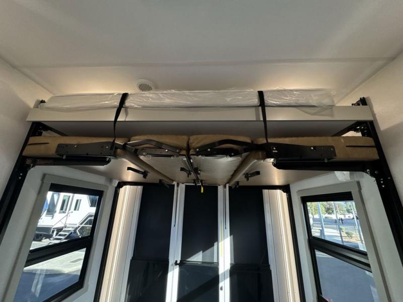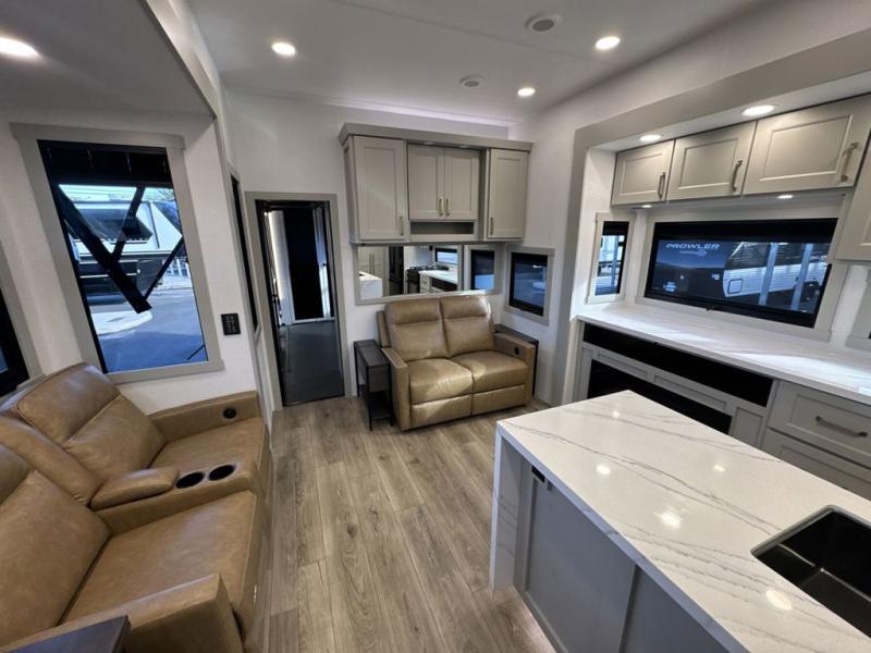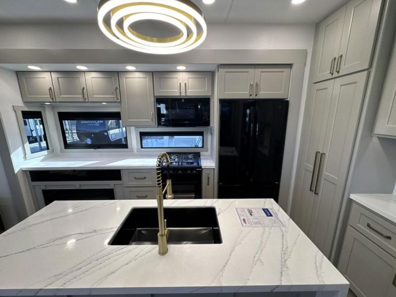 With any Model G toy hauler fifth wheel by Brinkley you will enjoy luxurious amenities, tons of storage space, and innovative features that have been developed and tested in the real world. Durable construction includes an industry leading PDI process, an industry best insulation package, and reinforced and walkable slide roofs. Some of the exterior features you'll find are a 3-way pass-through with a multi-functional flip-up bulkhead wall, under I-beam storage, a MAX-Vision reverse lighting system, and a low-maintenance roof to name a few. A Rockford Fosgate audio system comes standard, along with a Full app-based coach control system (iOS & Android) that lets you control your fifth wheel's functions right from your mobile device. You will find the solar system with a designated storage area to be ultra convenient, plus there is a FlexPower 5500 with a dual fuel inverter generator for all your power needs. Head inside to find a residential interior with Brinkley's CraftSense wood trim construction, floating entrance steps, integrated window screens and insulated blackout blinds, and residential solid surface countertops plus backsplash. You will also enjoy the neon shower lighting and recessed medicine cabinets in the bath, plus motion activated LED bed lights and dual bedside outlets in the bedroom. Choose a Model G toy hauler fifth wheel to experience all the luxury it has to offer!