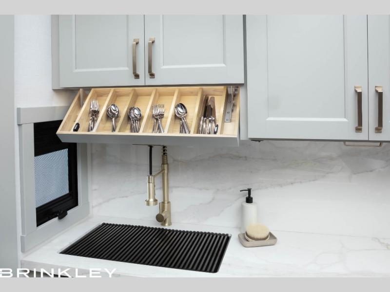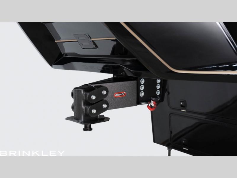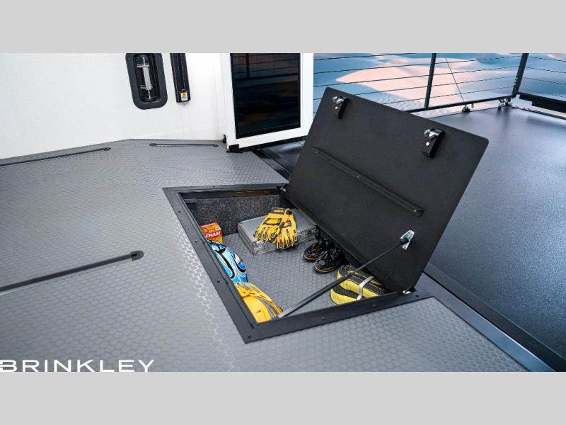 With any Model G toy hauler fifth wheel by Brinkley you will enjoy luxurious amenities, tons of storage space, and innovative features that have been developed and tested in the real world. Durable construction includes an industry leading PDI process, an industry best insulation package, and reinforced and walkable slide roofs. Some of the exterior features you'll find are a 3-way pass-through with a multi-functional flip-up bulkhead wall, under I-beam storage, a MAX-Vision reverse lighting system, and a low-maintenance roof to name a few. A Rockford Fosgate audio system comes standard, along with a OneControl app system that lets you control your fifth wheel's functions right from your mobile device. You will find the solar system with a designated storage area to be ultra convenient, plus there is a FlexPower 5500 with a dual fuel inverter generator for all your power needs. Head inside to find a residential interior with Brinkley's CraftSense wood trim construction, floating entrance steps, integrated window screens and insulated blackout blinds, and residential solid surface countertops plus backsplash. You will also enjoy the neon shower lighting and recessed medicine cabinets in the bath, plus motion activated LED bed lights and dual bedside outlets in the bedroom. Choose a Model G toy hauler fifth wheel to experience all the luxury it has to offer!