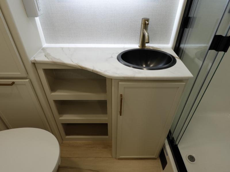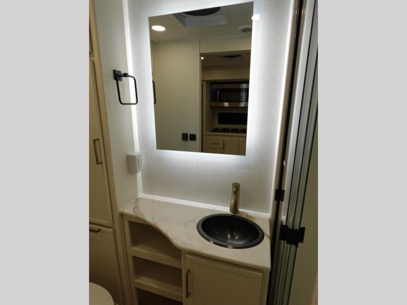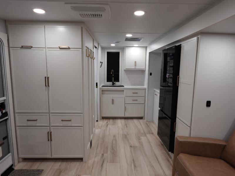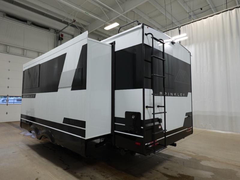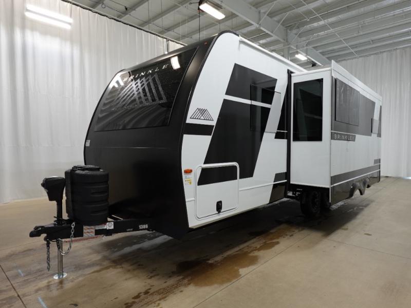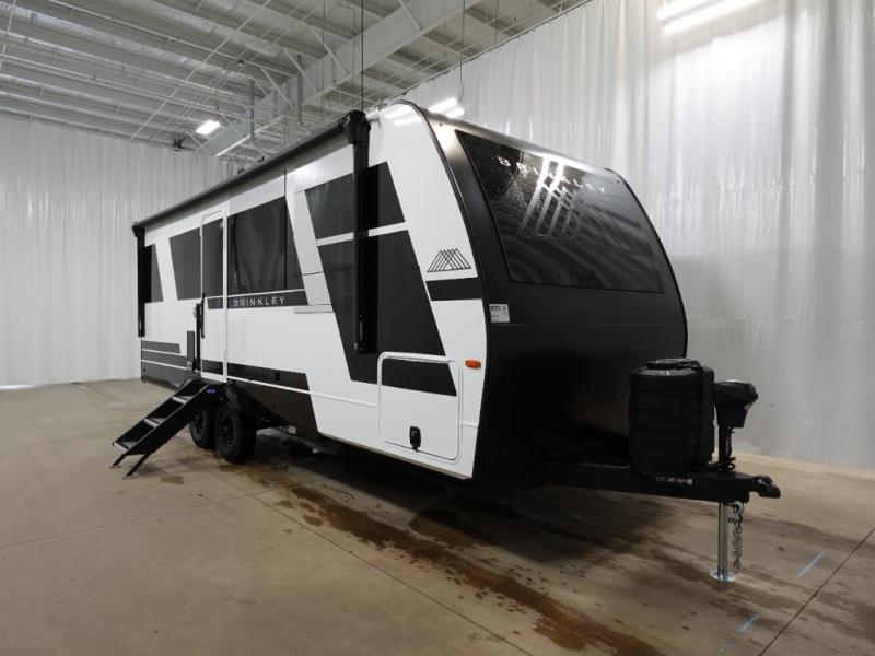 The lightweight Model I travel trailer by Brinkley is the perfect choice for those looking for an easy tow and at-home comforts! There is a drop-frame chassis, high-performance Road Armor suspension equalizer system, and Demco EZ Latch trailer coupler that automatically latches when dropped onto a hitch ball without the need of a safety pin. Additional exterior features include square Euro frameless windows, automotive-grade paint, full-width LED strip lighting in the pass-thru, and a pet & property security campside tie-down to keep your gear and furry friends safe. Inside, you'll be wowed by Brinkley's CraftSense wood trim construction, residential solid surface kitchen countertops, dimmable bedroom lights, and marine-grade neon LED shower lighting to name a few stand-out features!