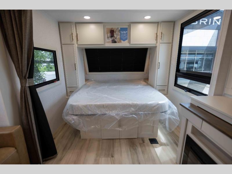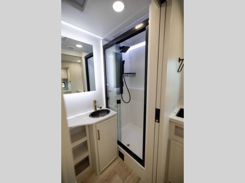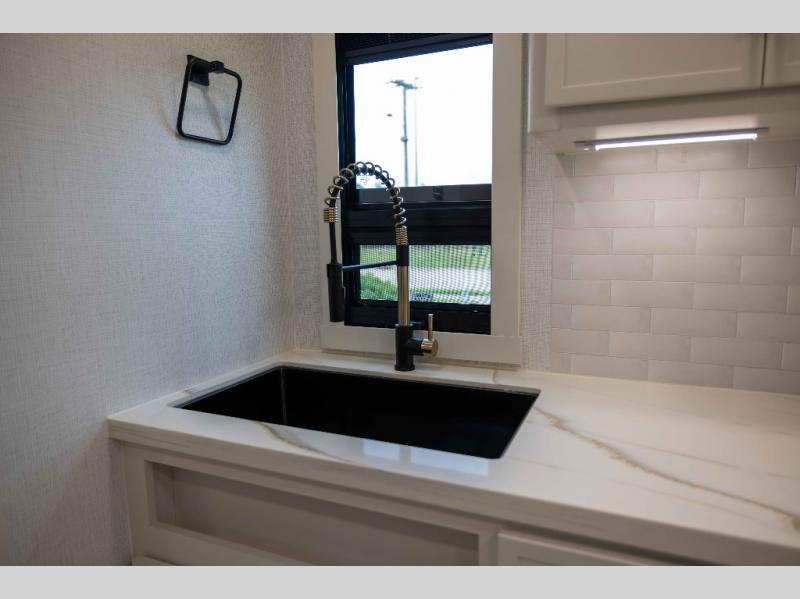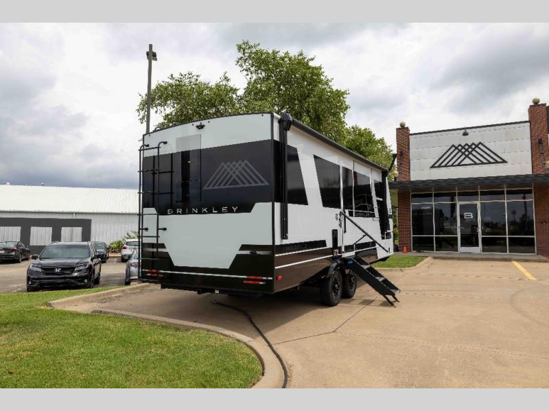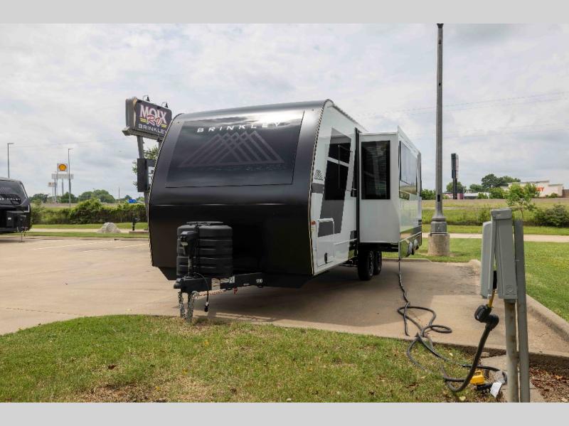 The lightweight Model I travel trailer by Brinkley is the perfect choice for those looking for an easy tow and at-home comforts! There is a drop-frame chassis, high-performance Road Armor suspension equalizer system, and Demco EZ Latch trailer coupler that automatically latches when dropped onto a hitch ball without the need of a safety pin. Additional exterior features include square Euro frameless windows, automotive-grade paint, full-width LED strip lighting in the pass-thru, and a pet & property security campside tie-down to keep your gear and furry friends safe. Inside, you'll be wowed by Brinkley's CraftSense wood trim construction, residential solid surface kitchen countertops, dimmable bedroom lights, and marine-grade neon LED shower lighting to name a few stand-out features!