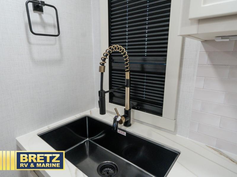 The lightweight Model I travel trailer by Brinkley is the perfect choice for those looking for an easy tow and at-home comforts! There is a drop-frame chassis, high-performance Road Armor suspension equalizer system, and Demco EZ Latch trailer coupler that automatically latches when dropped onto a hitch ball without the need of a safety pin. Additional exterior features include square Euro frameless windows, automotive-grade paint, full-width LED strip lighting in the pass-thru, and a pet & property security campside tie-down to keep your gear and furry friends safe. Inside, you'll be wowed by Brinkley's CraftSense wood trim construction, residential solid surface kitchen countertops, dimmable bedroom lights, and marine-grade neon LED shower lighting to name a few stand-out features!