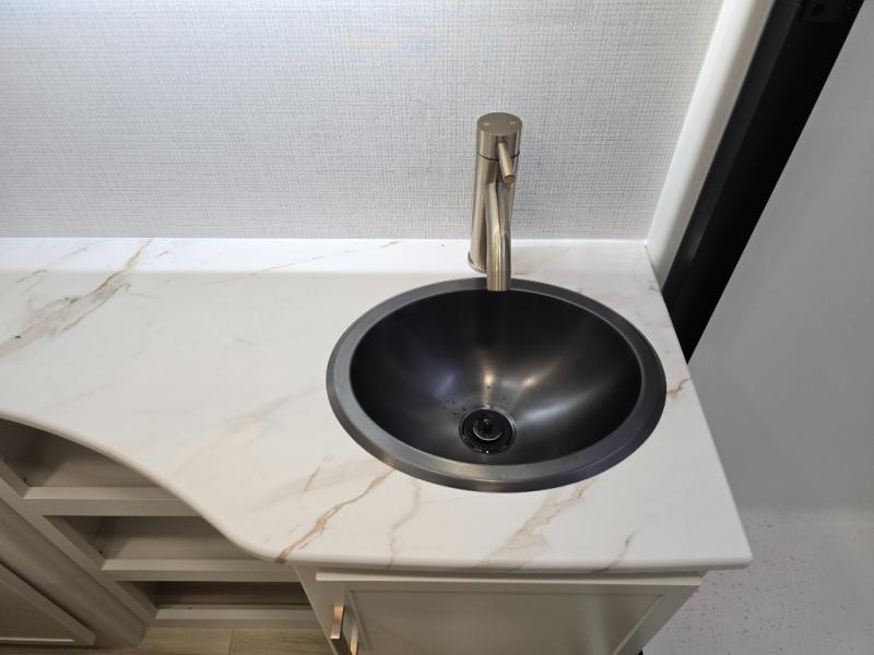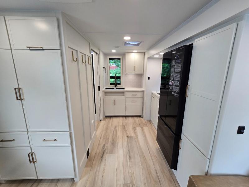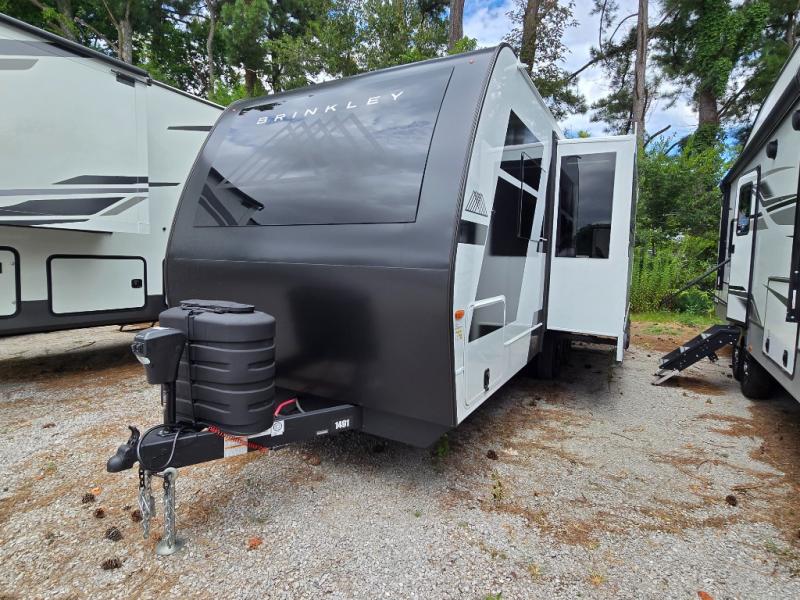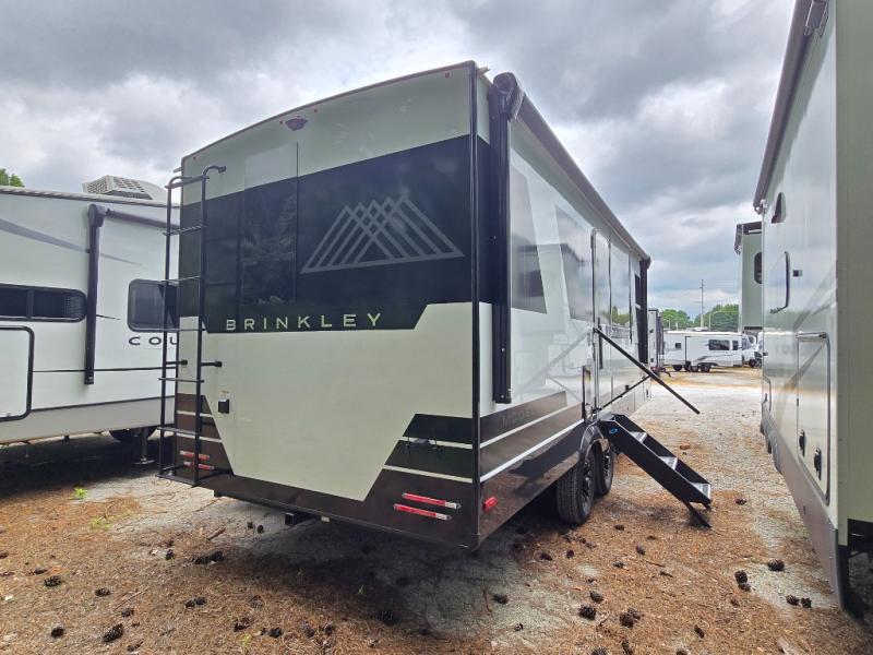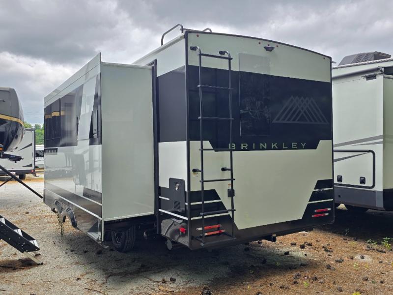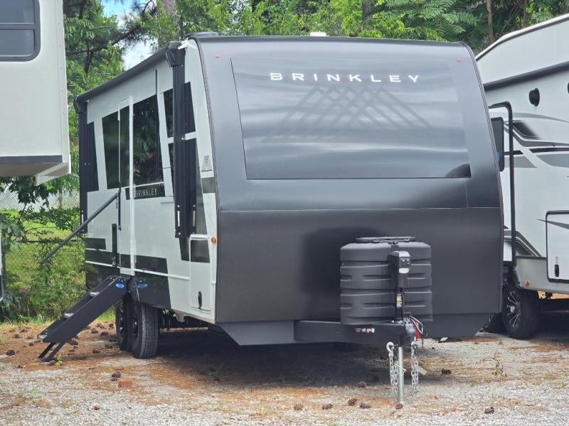 The lightweight Model I travel trailer by Brinkley is the perfect choice for those looking for an easy tow and at-home comforts! There is a drop-frame chassis, high-performance Road Armor suspension equalizer system, and Demco EZ Latch trailer coupler that automatically latches when dropped onto a hitch ball without the need of a safety pin. Additional exterior features include square Euro frameless windows, automotive-grade paint, full-width LED strip lighting in the pass-thru, and a pet & property security campside tie-down to keep your gear and furry friends safe. Inside, you'll be wowed by Brinkley's CraftSense wood trim construction, residential solid surface kitchen countertops, dimmable bedroom lights, and marine-grade neon LED shower lighting to name a few stand-out features!
