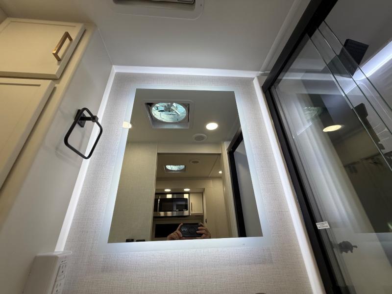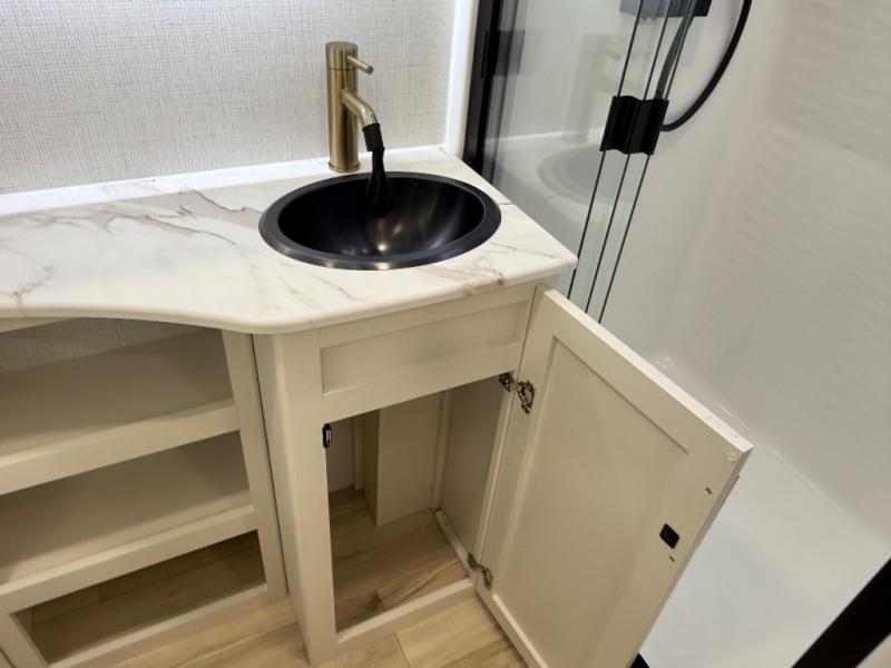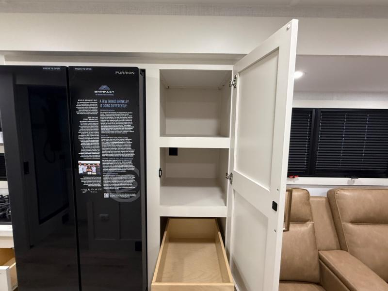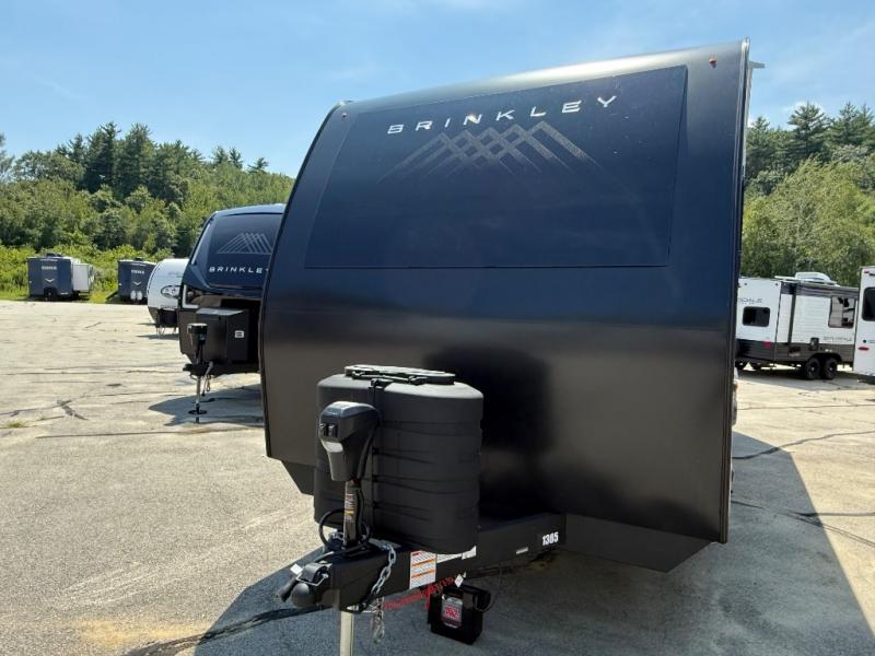 The lightweight Model I travel trailer by Brinkley is the perfect choice for those looking for an easy tow and at-home comforts! There is a drop-frame chassis, high-performance Road Armor suspension equalizer system, and Demco EZ Latch trailer coupler that automatically latches when dropped onto a hitch ball without the need of a safety pin. Additional exterior features include square Euro frameless windows, automotive-grade paint, full-width LED strip lighting in the pass-thru, and a pet & property security campside tie-down to keep your gear and furry friends safe. Inside, you'll be wowed by Brinkley's CraftSense wood trim construction, residential solid surface kitchen countertops, dimmable bedroom lights, and marine-grade neon LED shower lighting to name a few stand-out features!