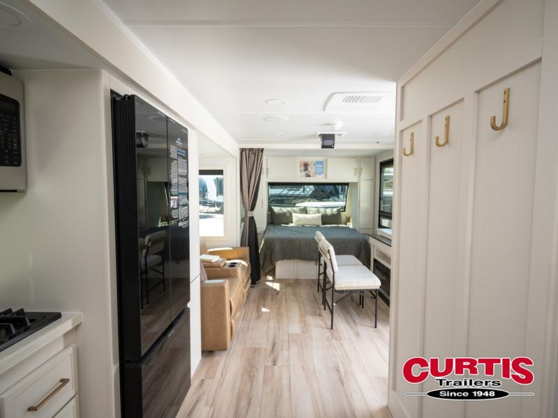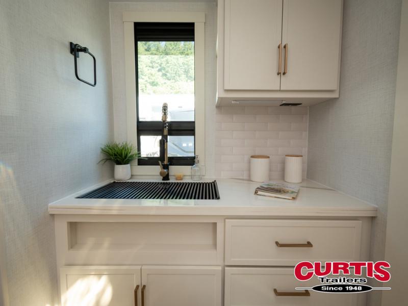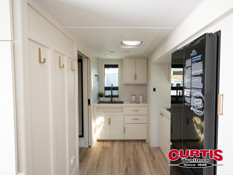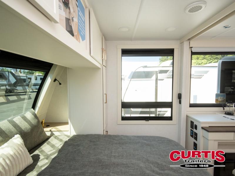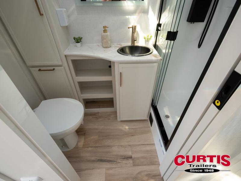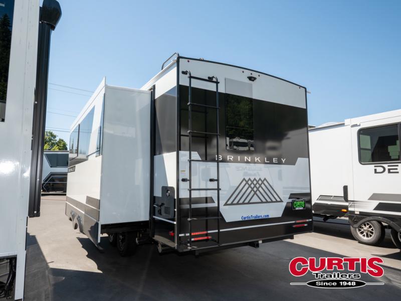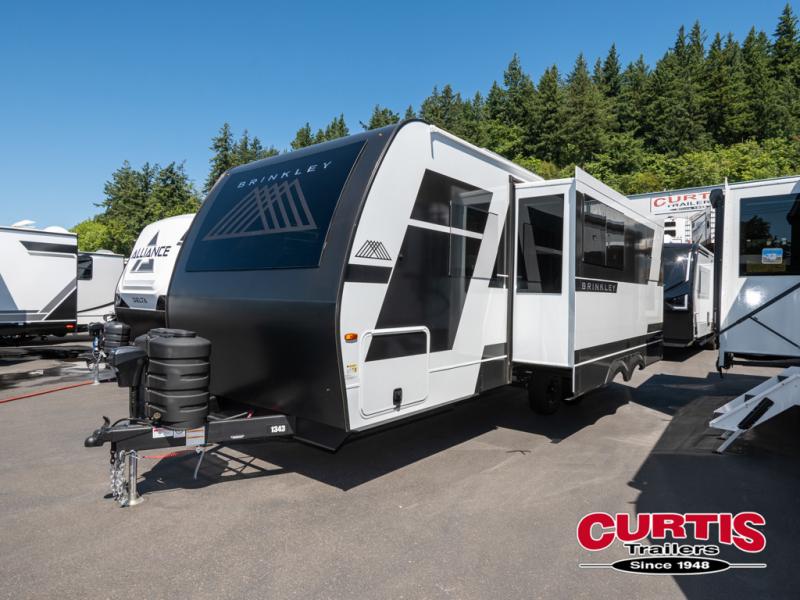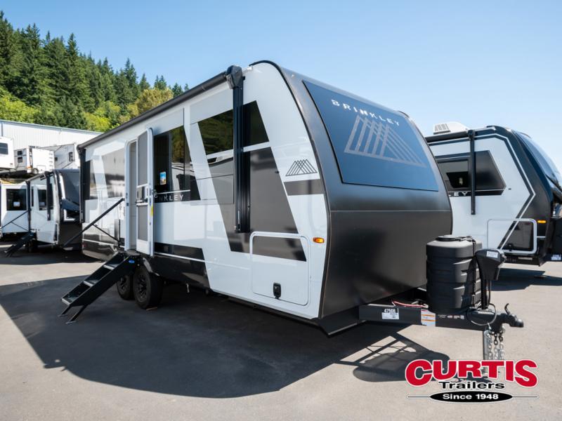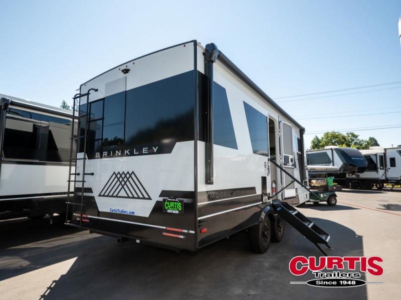 The lightweight Model I travel trailer by Brinkley is the perfect choice for those looking for an easy tow and at-home comforts! There is a drop-frame chassis, high-performance Road Armor suspension equalizer system, and Demco EZ Latch trailer coupler that automatically latches when dropped onto a hitch ball without the need of a safety pin. Additional exterior features include square Euro frameless windows, automotive-grade paint, full-width LED strip lighting in the pass-thru, and a pet & property security campside tie-down to keep your gear and furry friends safe. Inside, you'll be wowed by Brinkley's CraftSense wood trim construction, residential solid surface kitchen countertops, dimmable bedroom lights, and marine-grade neon LED shower lighting to name a few stand-out features!