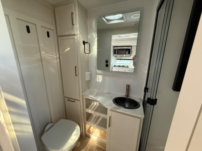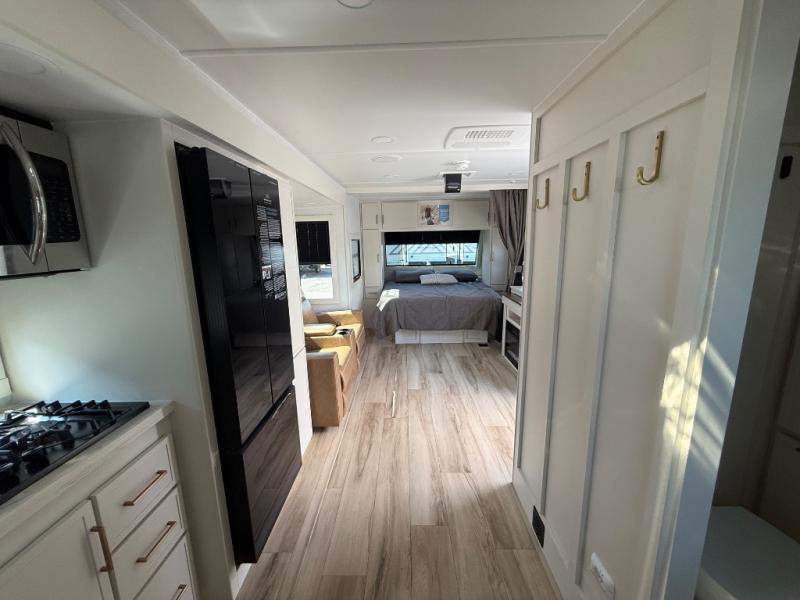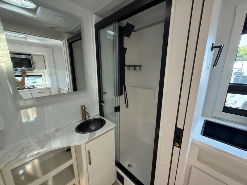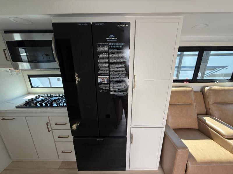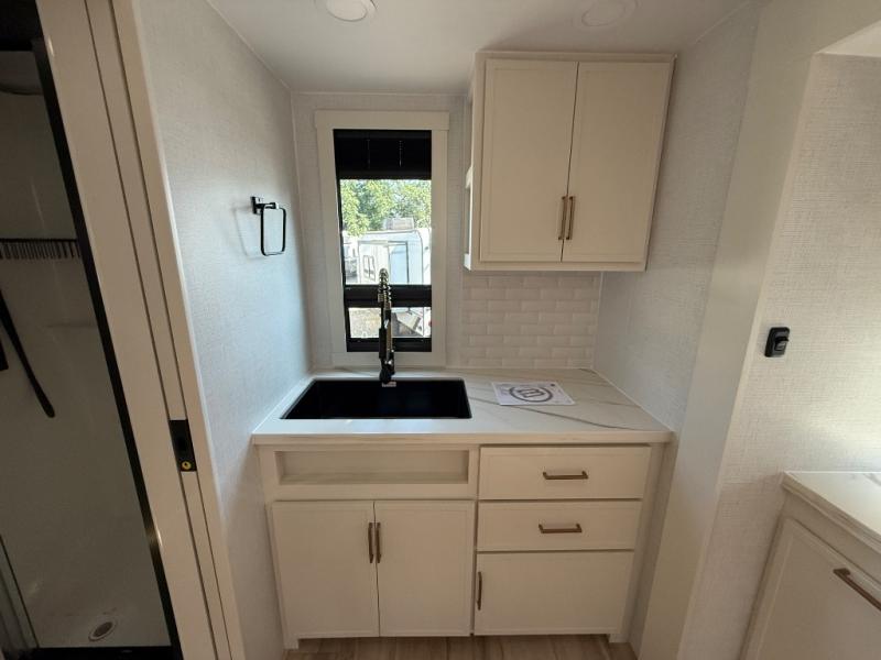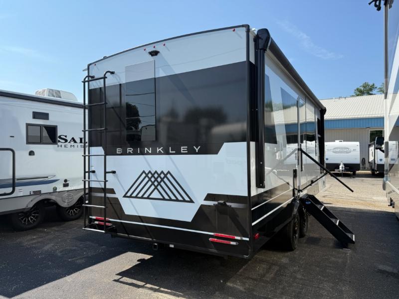 The lightweight Model I travel trailer by Brinkley is the perfect choice for those looking for an easy tow and at-home comforts! There is a drop-frame chassis, high-performance Road Armor suspension equalizer system, and Demco EZ Latch trailer coupler that automatically latches when dropped onto a hitch ball without the need of a safety pin. Additional exterior features include square Euro frameless windows, automotive-grade paint, full-width LED strip lighting in the pass-thru, and a pet & property security campside tie-down to keep your gear and furry friends safe. Inside, you'll be wowed by Brinkley's CraftSense wood trim construction, residential solid surface kitchen countertops, dimmable bedroom lights, and marine-grade neon LED shower lighting to name a few stand-out features!