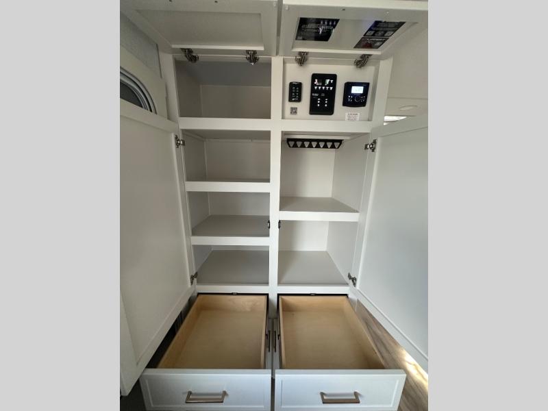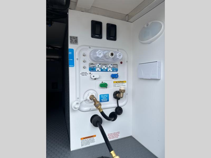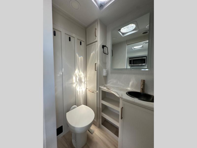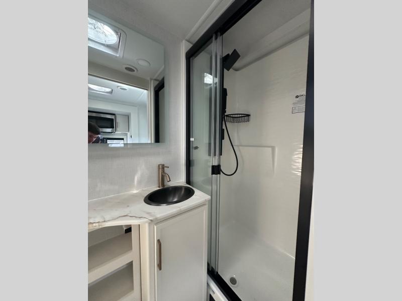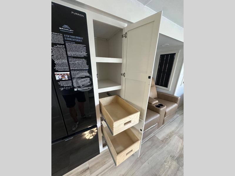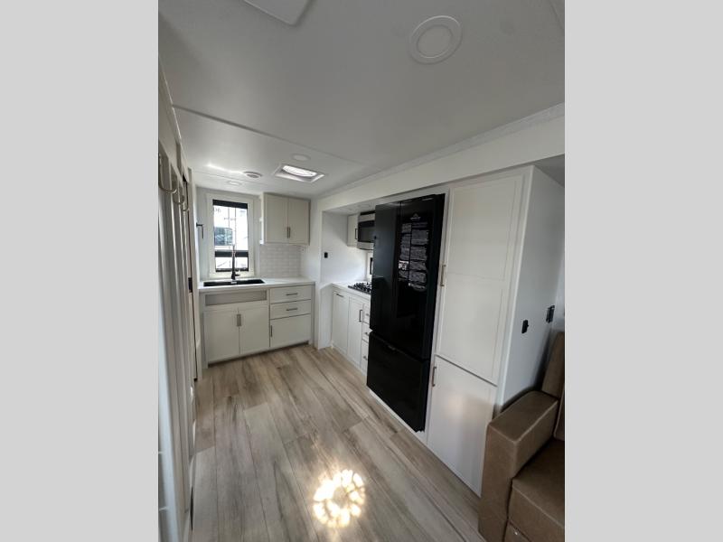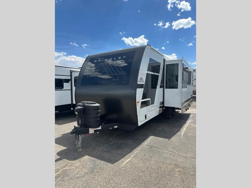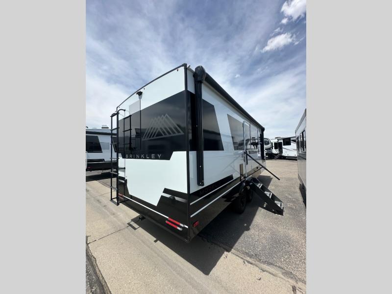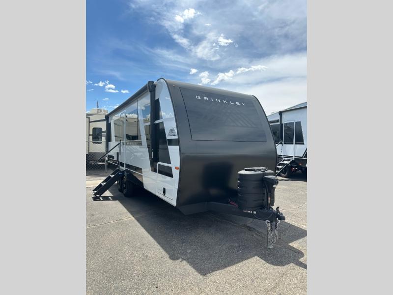 The lightweight Model I travel trailer by Brinkley is the perfect choice for those looking for an easy tow and at-home comforts! There is a drop-frame chassis, high-performance Road Armor suspension equalizer system, and Demco EZ Latch trailer coupler that automatically latches when dropped onto a hitch ball without the need of a safety pin. Additional exterior features include square Euro frameless windows, automotive-grade paint, full-width LED strip lighting in the pass-thru, and a pet & property security campside tie-down to keep your gear and furry friends safe. Inside, you'll be wowed by Brinkley's CraftSense wood trim construction, residential solid surface kitchen countertops, dimmable bedroom lights, and marine-grade neon LED shower lighting to name a few stand-out features!