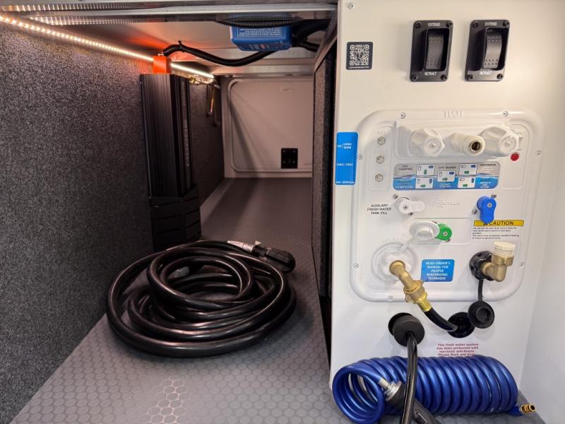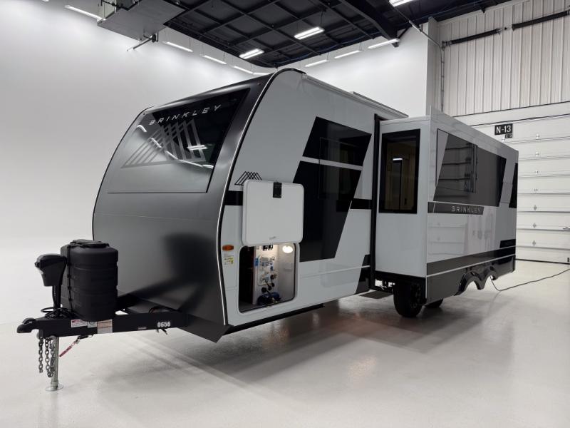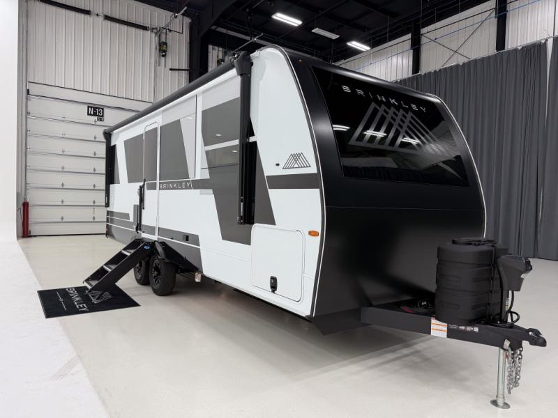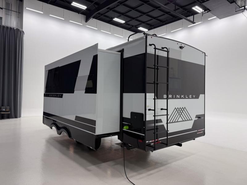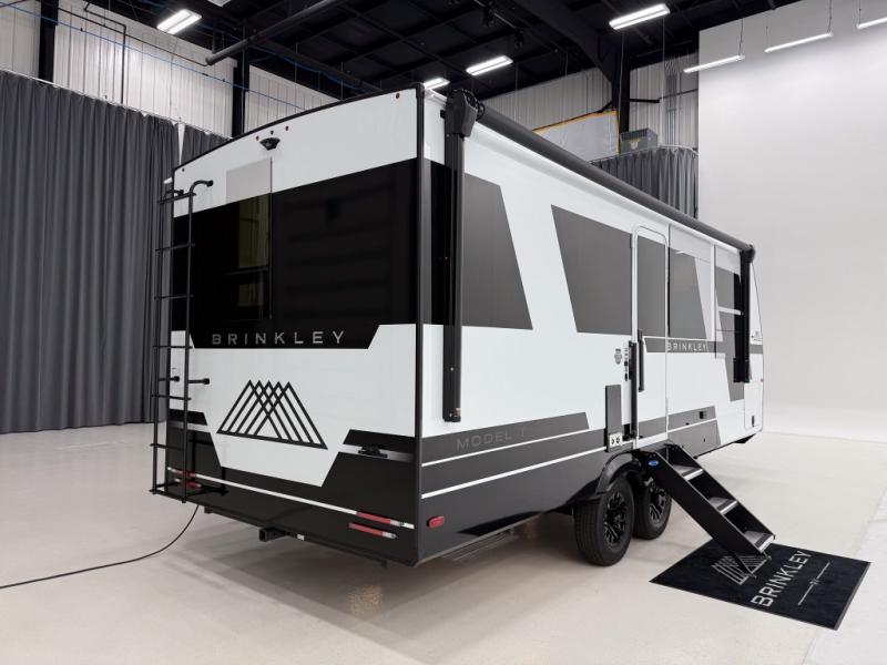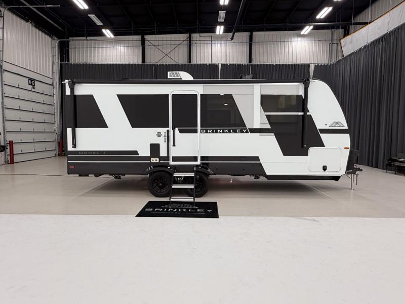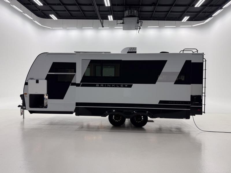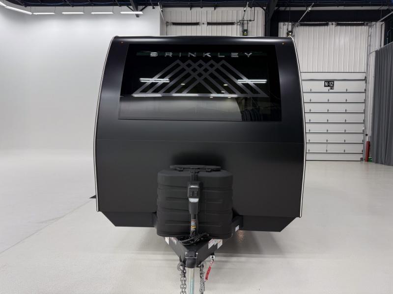 The lightweight Model I travel trailer by Brinkley is the perfect choice for those looking for an easy tow and at-home comforts! There is a drop-frame chassis, high-performance Road Armor suspension equalizer system, and Demco EZ Latch trailer coupler that automatically latches when dropped onto a hitch ball without the need of a safety pin. Additional exterior features include square Euro frameless windows, automotive-grade paint, full-width LED strip lighting in the pass-thru, and a pet & property security campside tie-down to keep your gear and furry friends safe. Inside, you'll be wowed by Brinkley's CraftSense wood trim construction, residential solid surface kitchen countertops, dimmable bedroom lights, and marine-grade neon LED shower lighting to name a few stand-out features!