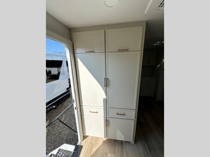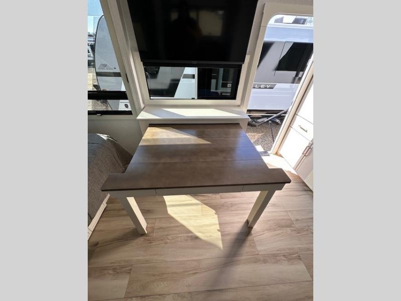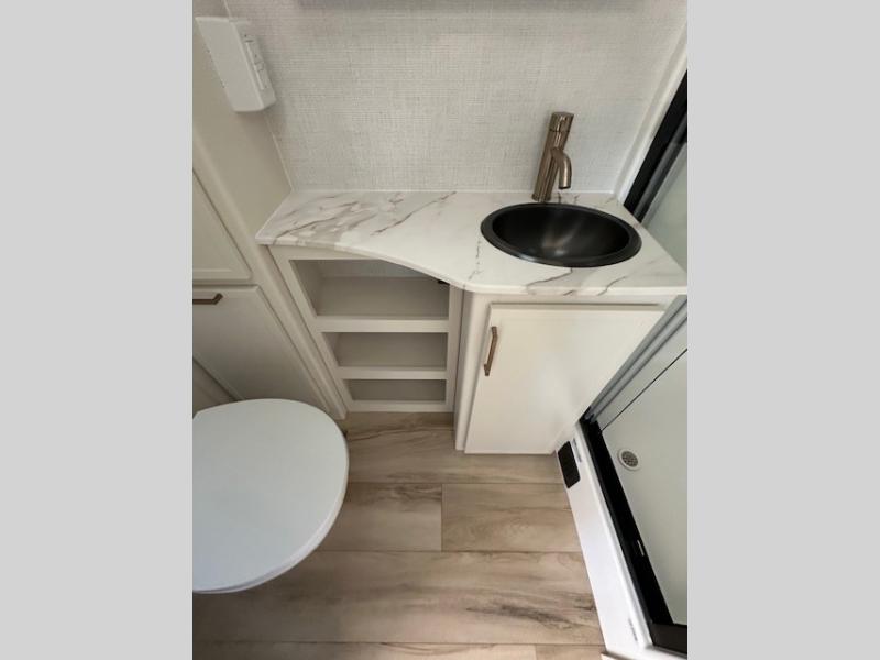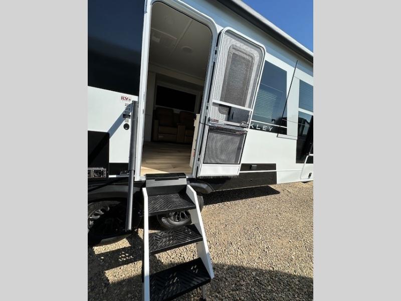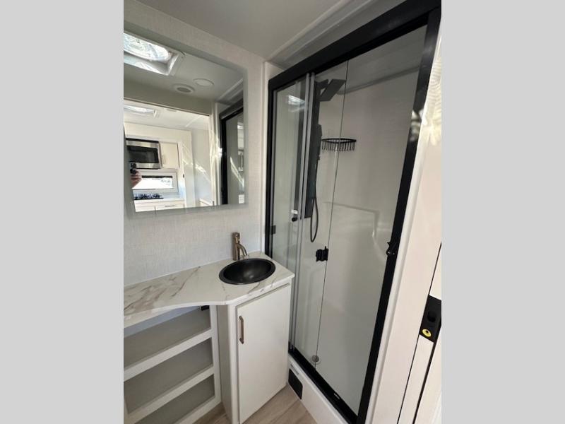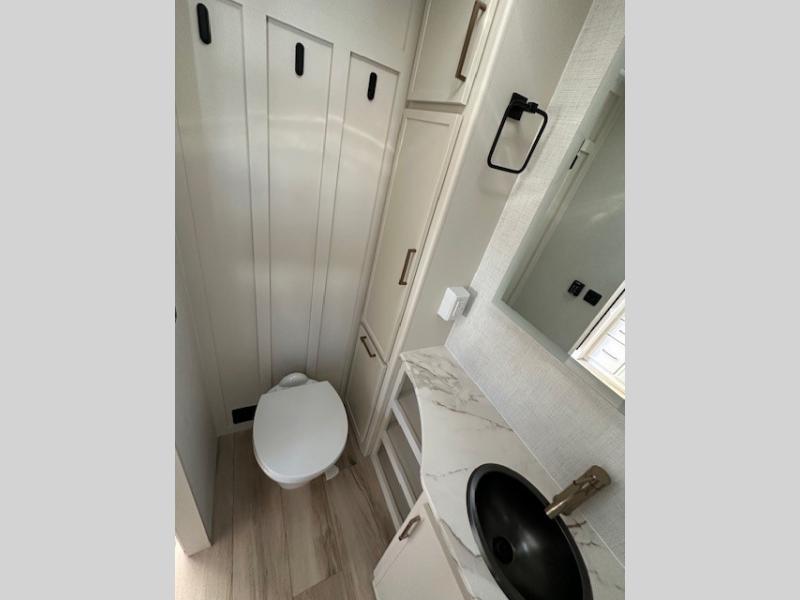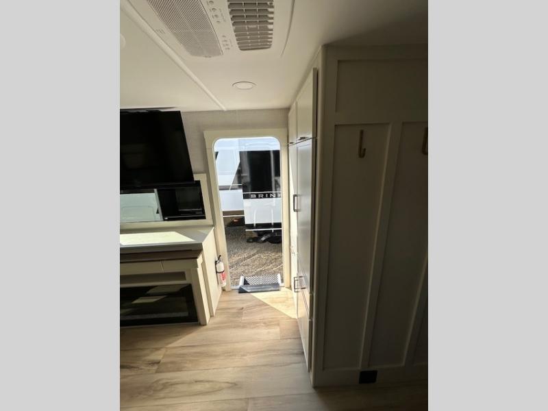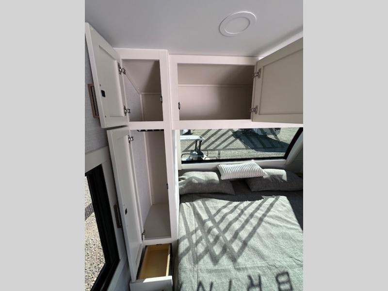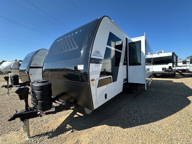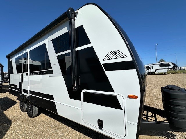 The lightweight Model I travel trailer by Brinkley is the perfect choice for those looking for an easy tow and at-home comforts! There is a drop-frame chassis, high-performance Road Armor suspension equalizer system, and Demco EZ Latch trailer coupler that automatically latches when dropped onto a hitch ball without the need of a safety pin. Additional exterior features include square Euro frameless windows, automotive-grade paint, full-width LED strip lighting in the pass-thru, and a pet & property security campside tie-down to keep your gear and furry friends safe. Inside, you'll be wowed by Brinkley's CraftSense wood trim construction, residential solid surface kitchen countertops, dimmable bedroom lights, and marine-grade neon LED shower lighting to name a few stand-out features!