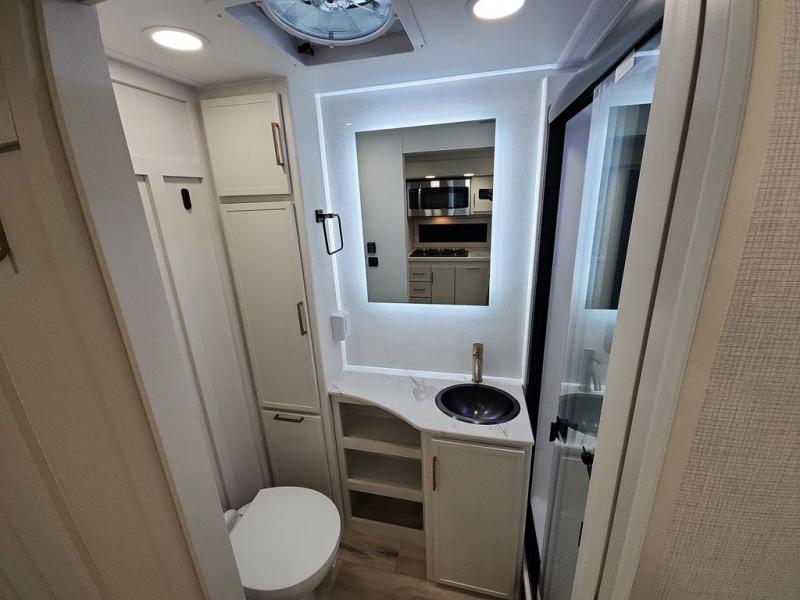 The lightweight Model I travel trailer by Brinkley is the perfect choice for those looking for an easy tow and at-home comforts! There is a drop-frame chassis, high-performance Road Armor suspension equalizer system, and Demco EZ Latch trailer coupler that automatically latches when dropped onto a hitch ball without the need of a safety pin. Additional exterior features include square Euro frameless windows, automotive-grade paint, full-width LED strip lighting in the pass-thru, and a pet & property security campside tie-down to keep your gear and furry friends safe. Inside, you'll be wowed by Brinkley's CraftSense wood trim construction, residential solid surface kitchen countertops, dimmable bedroom lights, and marine-grade neon LED shower lighting to name a few stand-out features!