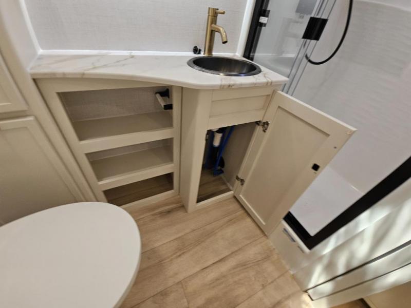 The lightweight Model I travel trailer by Brinkley is the perfect choice for those looking for an easy tow and at-home comforts! There is a drop-frame chassis, high-performance Road Armor suspension equalizer system, and Demco EZ Latch trailer coupler that automatically latches when dropped onto a hitch ball without the need of a safety pin. Additional exterior features include square Euro frameless windows, automotive-grade paint, full-width LED strip lighting in the pass-thru, and a pet & property security campside tie-down to keep your gear and furry friends safe. Inside, you'll be wowed by Brinkley's CraftSense wood trim construction, residential solid surface kitchen countertops, dimmable bedroom lights, and marine-grade neon LED shower lighting to name a few stand-out features!
